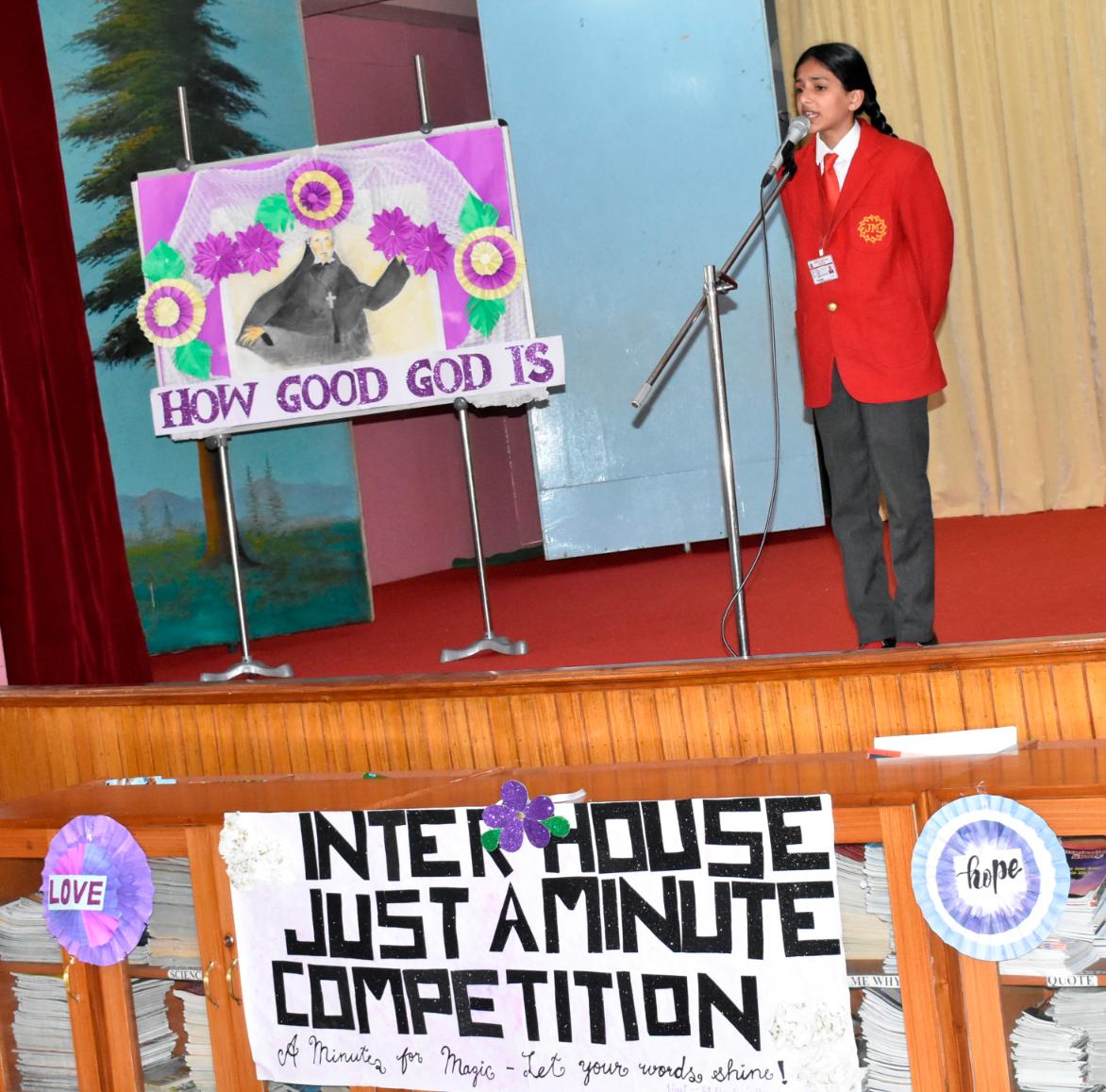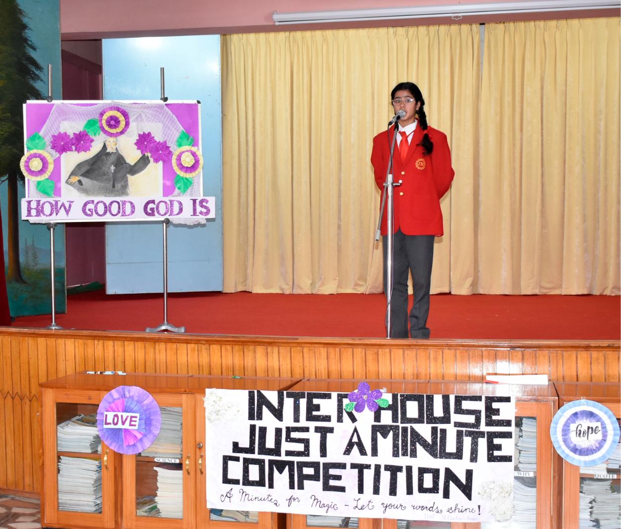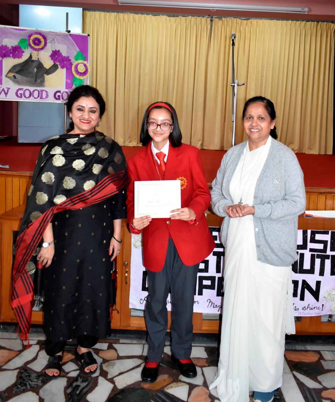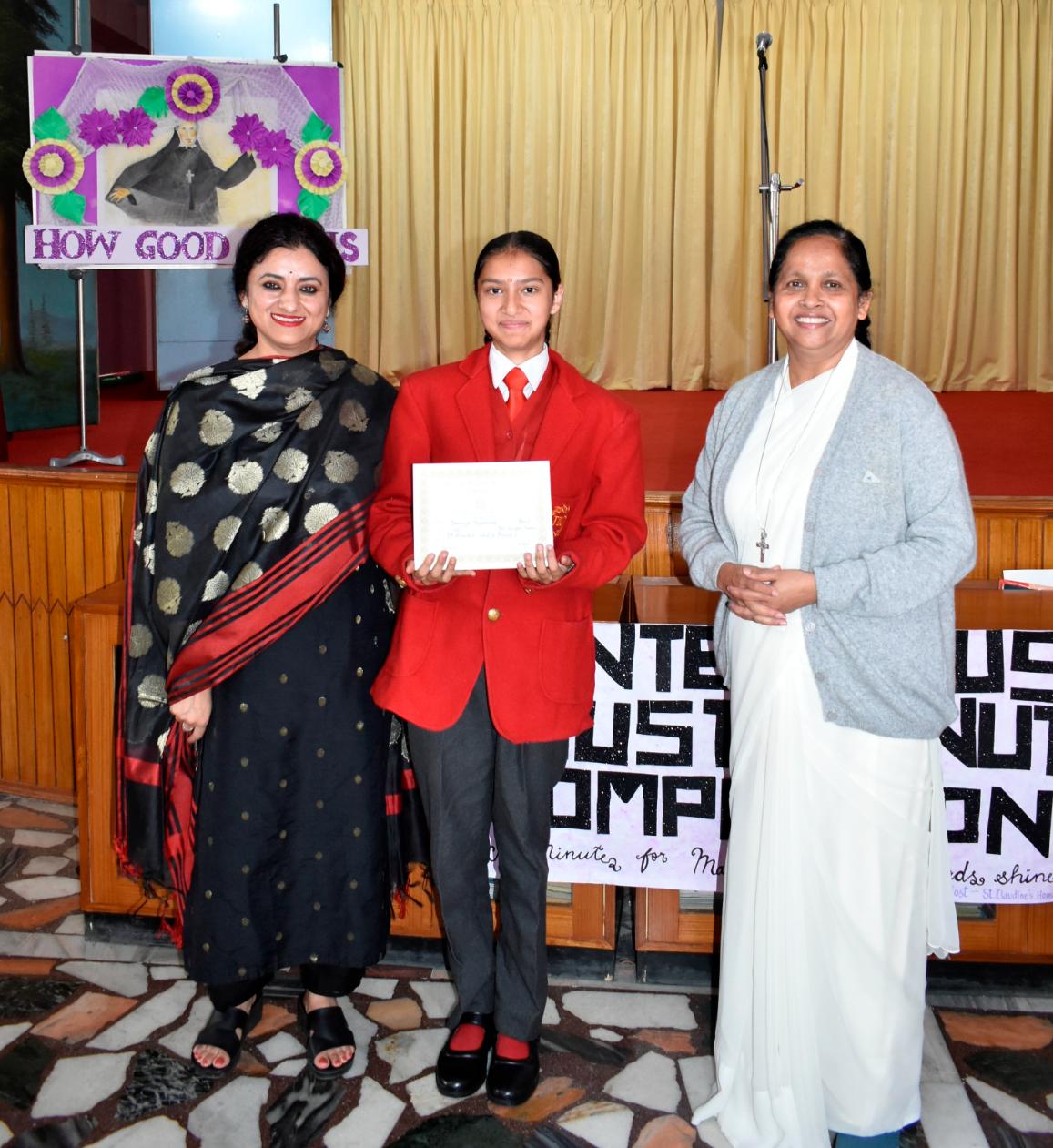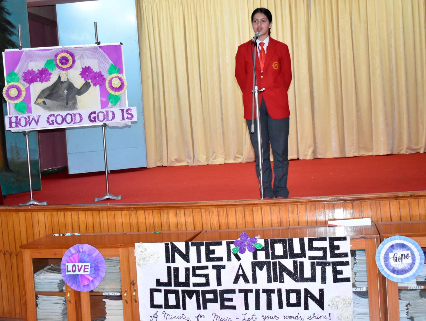 Description: An Inter-House Just-a-Minute competition was held on 26th July on the theme “Living the Values of St. Claudine Thévenet” to inspire students with her legacy of compassion, forgiveness, and faith. Participants from Grades VI, VII, and VIII spoke passionately about values such as love for the poor, resilience in suffering, and the power of forgiveness. Each student reflected on how these values can be practiced in daily life. The competition encouraged confident expression and a deeper understanding of St. Claudine’s mission. St. Joseph House emerged as the winner in all three categories. The event was a meaningful blend of spirituality, expression, and moral learning, resonating with St. Claudine's values.