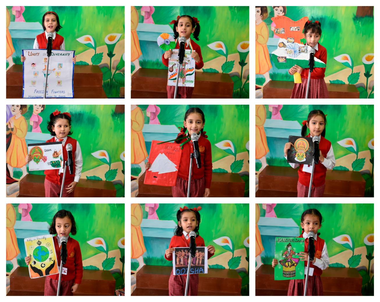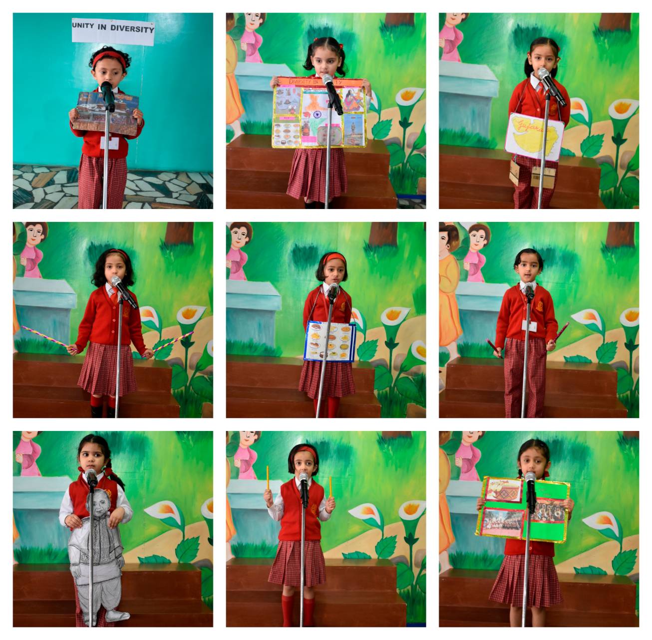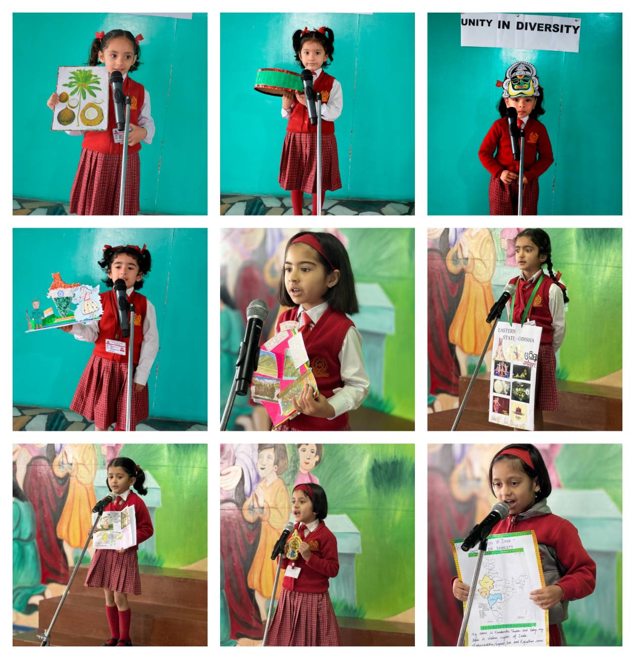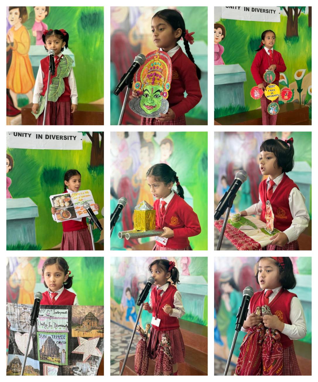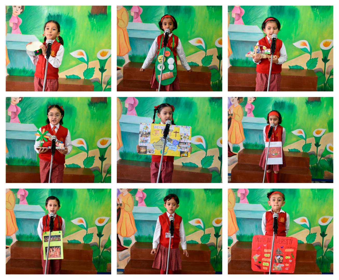 Description: Our Kindergarten celebrated Independence Day with great enthusiasm and patriotic spirit on 7th August, 2025.The theme of this year’s celebration was “Unity in Diversity.” The highlight of the celebration was special presentation by the children. Each child carried a prop that represented culture of different states such as dandia sticks from Gujarat,tabla from Punjab,coconut from Kerela,bamboo fan from Assam etc. These props made the performance lively and colourful. Through this activity, children learnt that we may have different traditions but we all are united as one nation-India. It was a joyful day that helped our young learners understand the true spirit of “Unity in Diversity,”