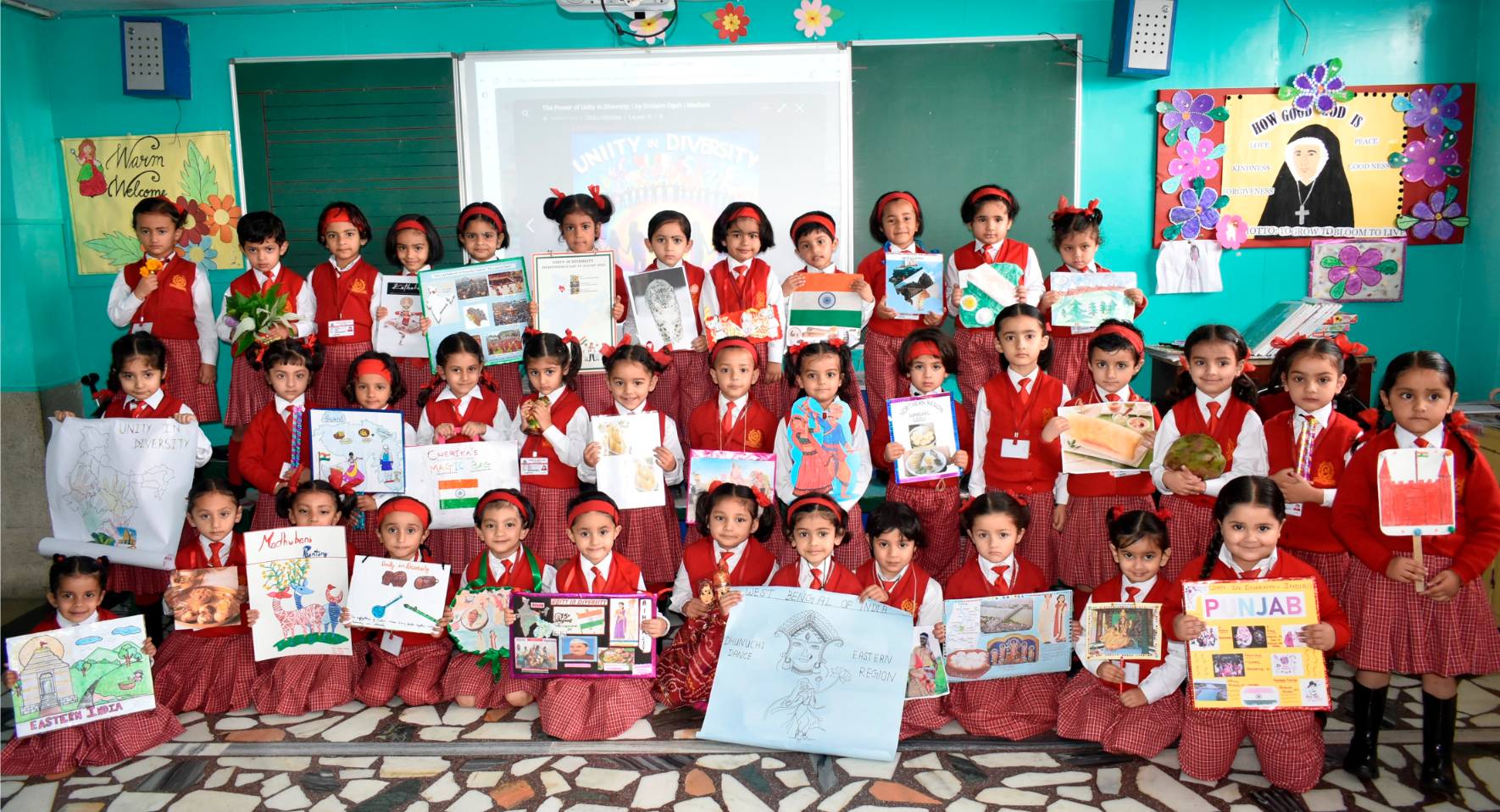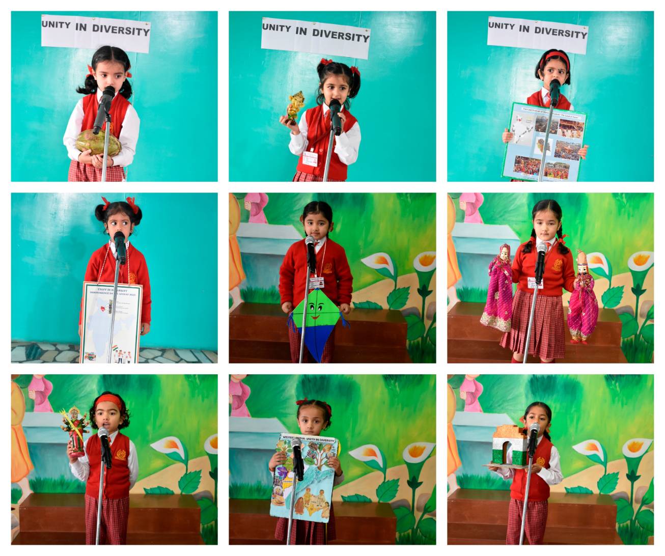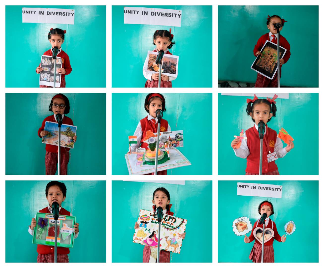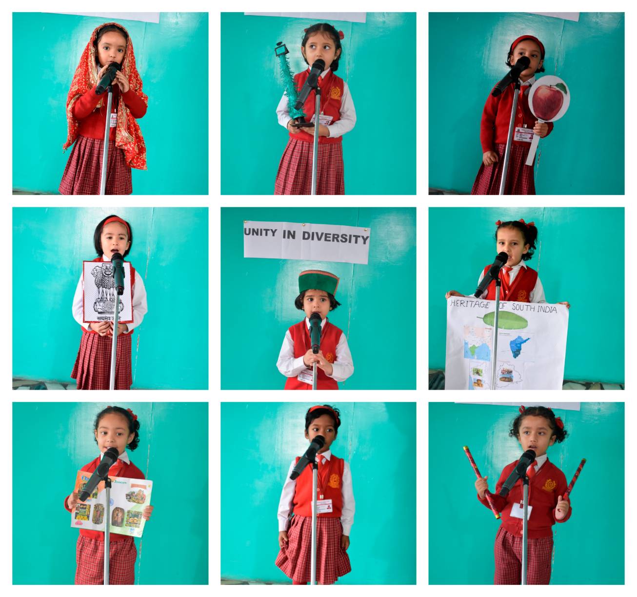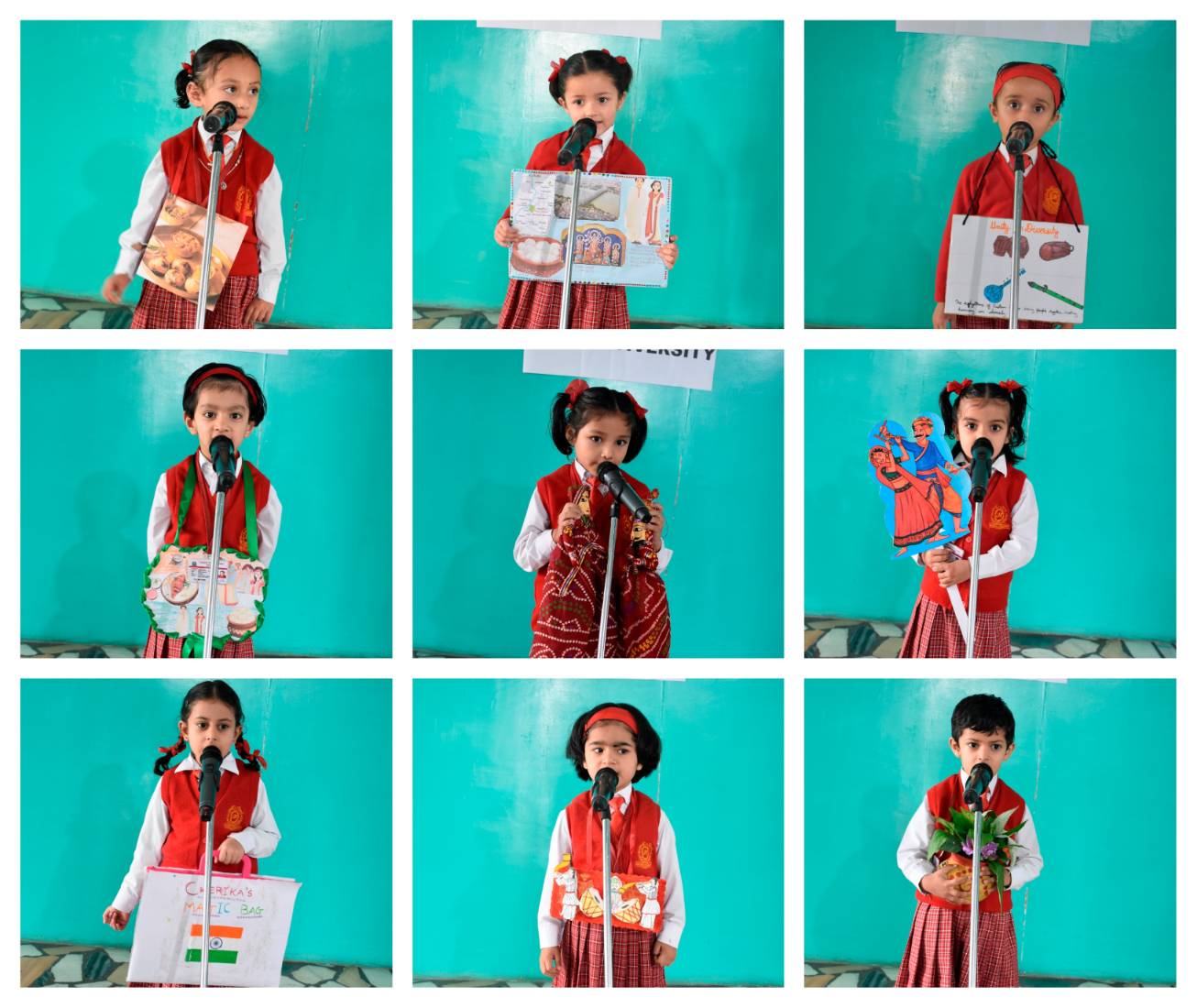 Description: Our Kindergarten celebrated Independence Day with great enthusiasm and patriotic spirit on 7th August, 2025.The theme of this year’s celebration was “Unity in Diversity.” The highlight of the celebration was special presentation by the children. Each child carried a prop that represented culture of different states such as dandia sticks from Gujarat,tabla from Punjab,coconut from Kerela,bamboo fan from Assam etc. These props made the performance lively and colourful. Through this activity, children learnt that we may have different traditions but we all are united as one nation-India. It was a joyful day that helped our young learners understand the true spirit of “Unity in Diversity,”