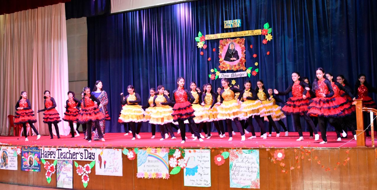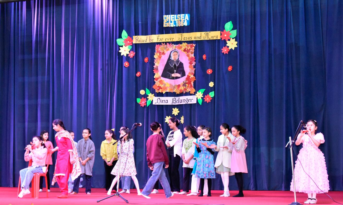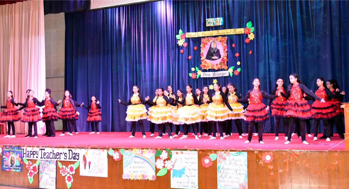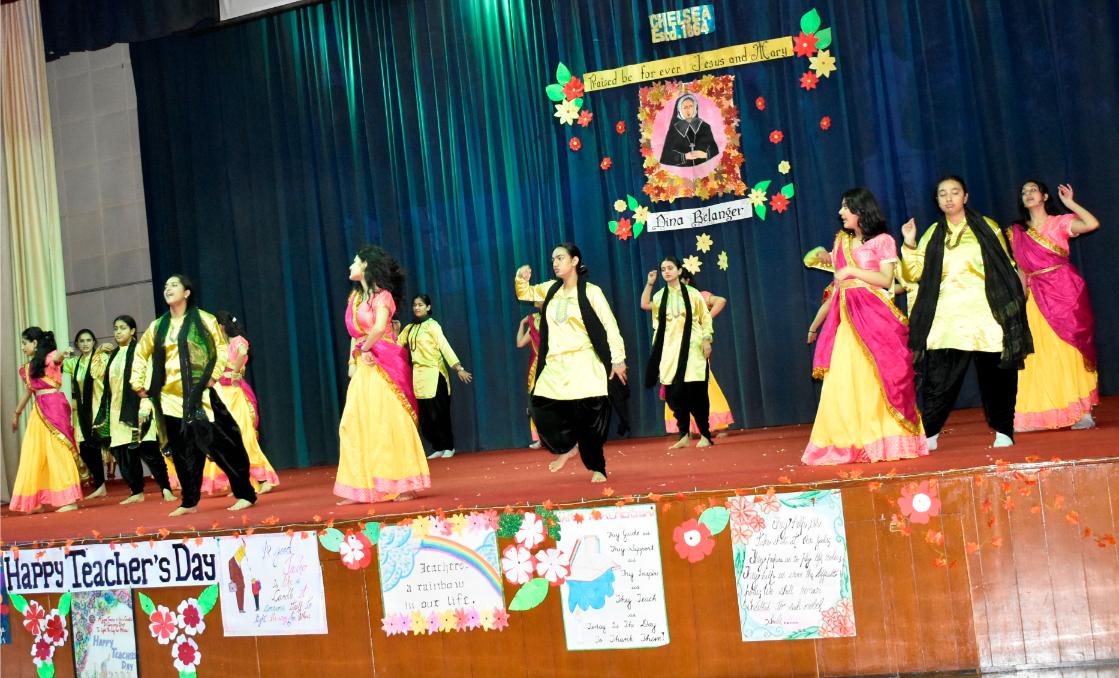 Description: Convent of Jesus and Mary, Chelsea Shimla celebrated Teacher’s Day with great joy and reverence on September 9, 2025, combining it with the feast celebration of Dina Belanger, a shining model of faith, love and sacrifice. The girls of Blessed Dina’s house hosted the event with great enthusiasm. The programme commenced with a melodious choir performance that set the tone of gratitude and devotion. A play on Dina Belanger was then staged portraying key moments of her life – her childhood, her passion for helping others, her unwavering devotion to Christ. The Teacher’s Day segment was filled with love and gratitude. Students offered cards as token of appreciation, and dedicated the play to their teachers’ tireless efforts in shaping students’ minds. To add vibrancy to the celebrations, students presented energetic classical and Bollywood dance that filled the auditorium with enthusiasm and appreciation. The event concluded with a heartfelt speech by Sister and a collective vote of thanks, where students acknowledged their teachers’ pivotal role in shaping their character.