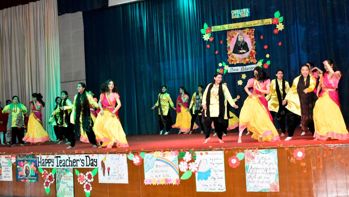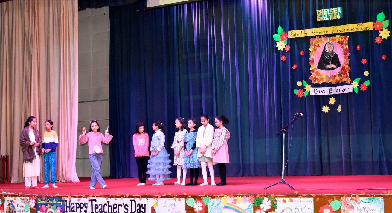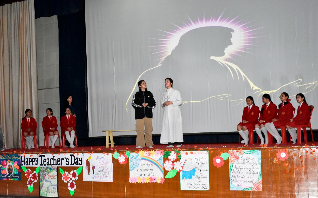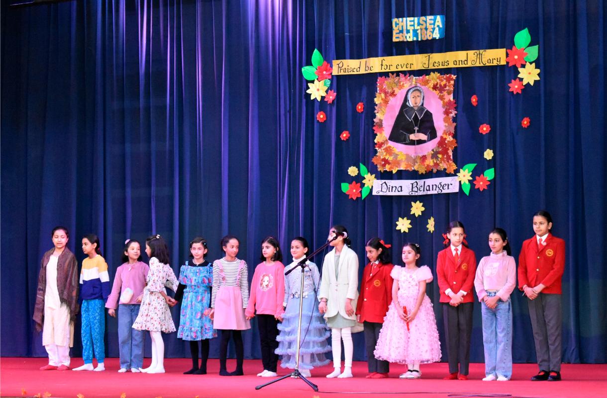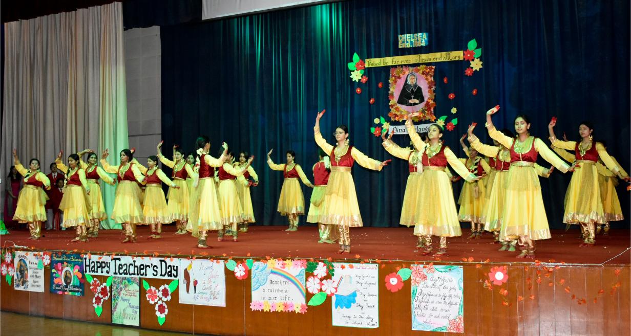 Description: Convent of Jesus and Mary, Chelsea Shimla celebrated Teacher’s Day with great joy and reverence on September 9, 2025, combining it with the feast celebration of Dina Belanger, a shining model of faith, love and sacrifice. The girls of Blessed Dina’s house hosted the event with great enthusiasm. The programme commenced with a melodious choir performance that set the tone of gratitude and devotion. A play on Dina Belanger was then staged portraying key moments of her life – her childhood, her passion for helping others, her unwavering devotion to Christ. The Teacher’s Day segment was filled with love and gratitude. Students offered cards as token of appreciation, and dedicated the play to their teachers’ tireless efforts in shaping students’ minds. To add vibrancy to the celebrations, students presented energetic classical and Bollywood dance that filled the auditorium with enthusiasm and appreciation. The event concluded with a heartfelt speech by Sister and a collective vote of thanks, where students acknowledged their teachers’ pivotal role in shaping their character.