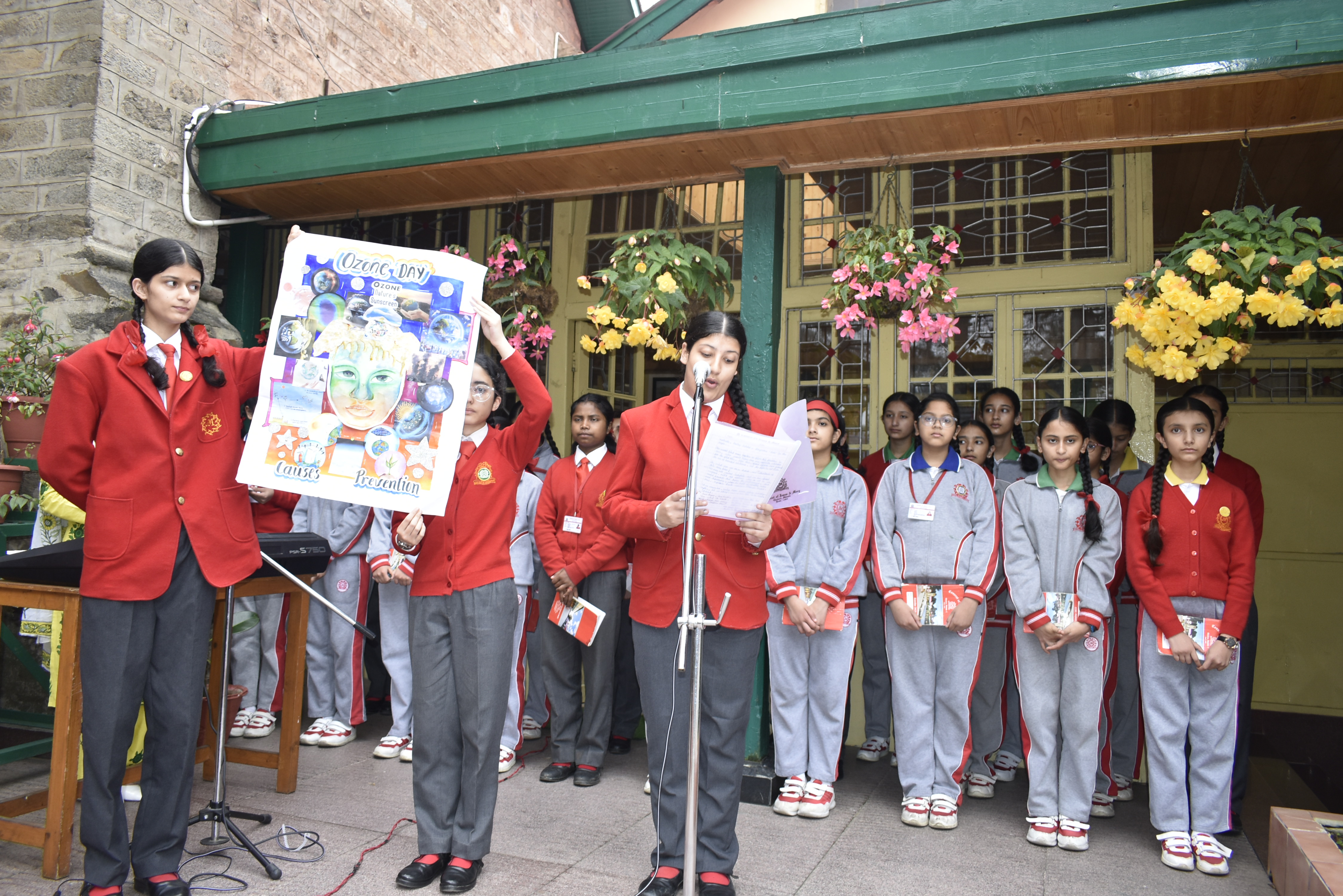 Description: World ozone day- a shield we must save. We borrowed the blue skies from the future but left behind seas of smoke. If we don't heal the ozone today, tomorrow may not forgive us World Ozone Day, observed on 16th September, spreads awareness about the depletion of the ozone layer and the urgent need to protect it. Through creative posters, slogans, and awareness charts, students promoted the message "Save Ozone, Save Earth. The event inspired everyone to take small yet meaningful steps towards preserving the blue sky that shelters us all.