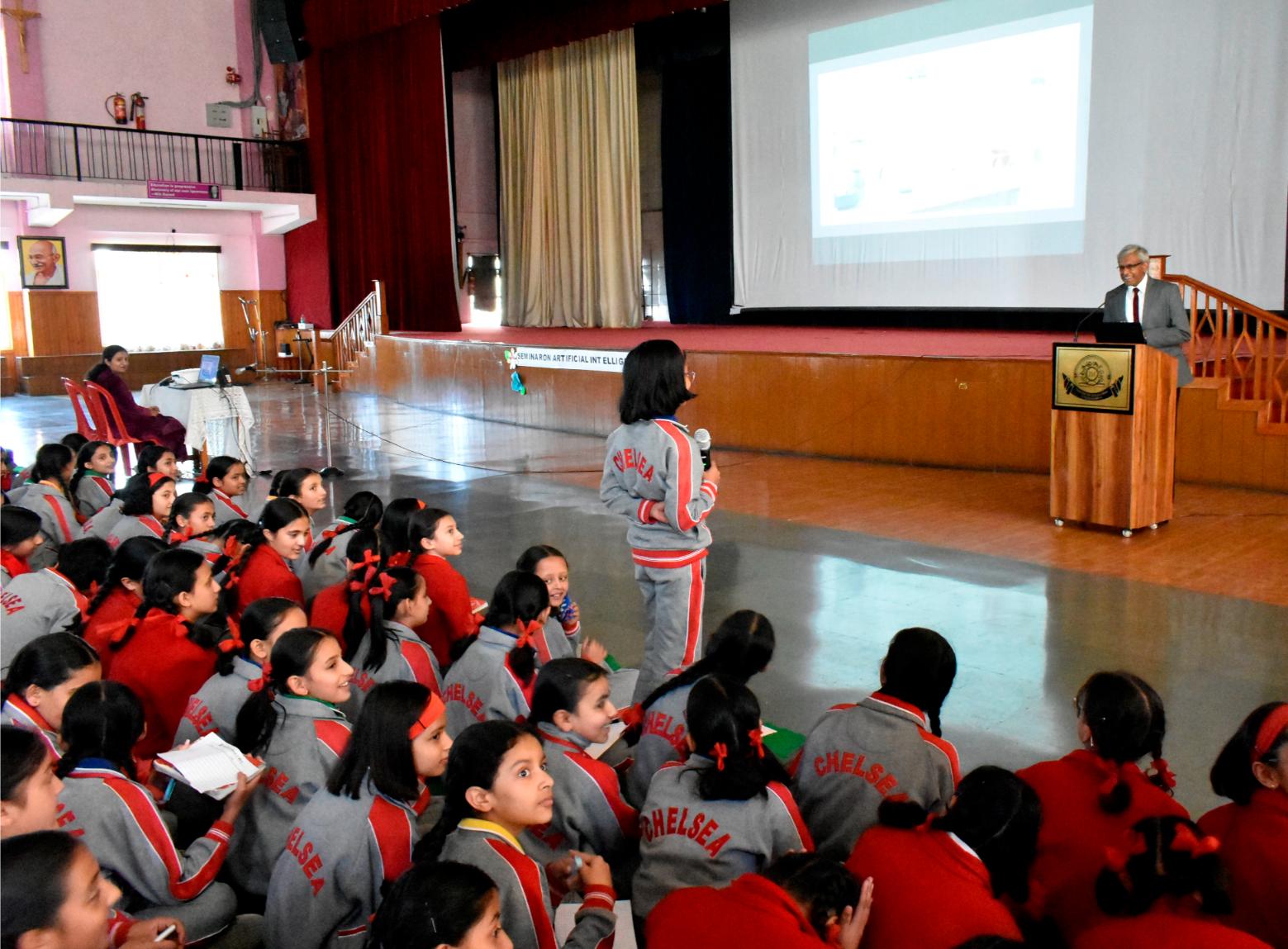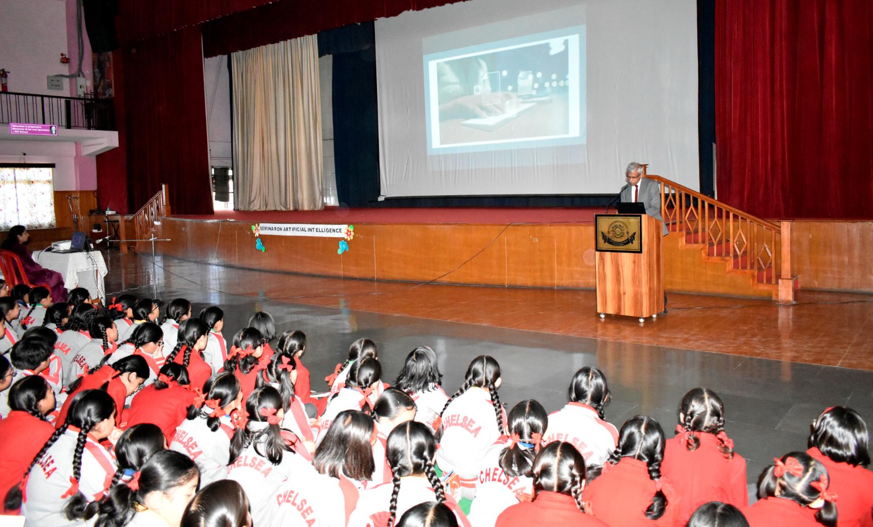 Description: A seminar on Artificial Intelligence was successfully conducted on 6th November, 2025, at the school auditorium in Convent of Jesus and Mary, Chelsea, aiming to enhance students’ understanding of AI and its growing influence in today’ s world. The keynote speaker for the session was Mr. Sanjiv Dosajh, Director of Strategic Initiatives at Chitkara University, accompanied by Mr. Kamal Rama and Mr. Shubham Sood. Mr. Dosajh explained the fundamentals of Artificial Intelligence, how AI systems learn and function, and how they are transforming industries through automation and innovation. Students were also made aware of the ethical aspects of AI, including responsible usage, data privacy, and human oversight in technology. An interactive question- and-answer session made the seminar engaging and informative. The guests were felicitated with tokens of appreciation, and the session concluded on an inspiring note, reminding students that while AI can enhance human creativity, it can never replace the intelligence and emotions of the human mind.