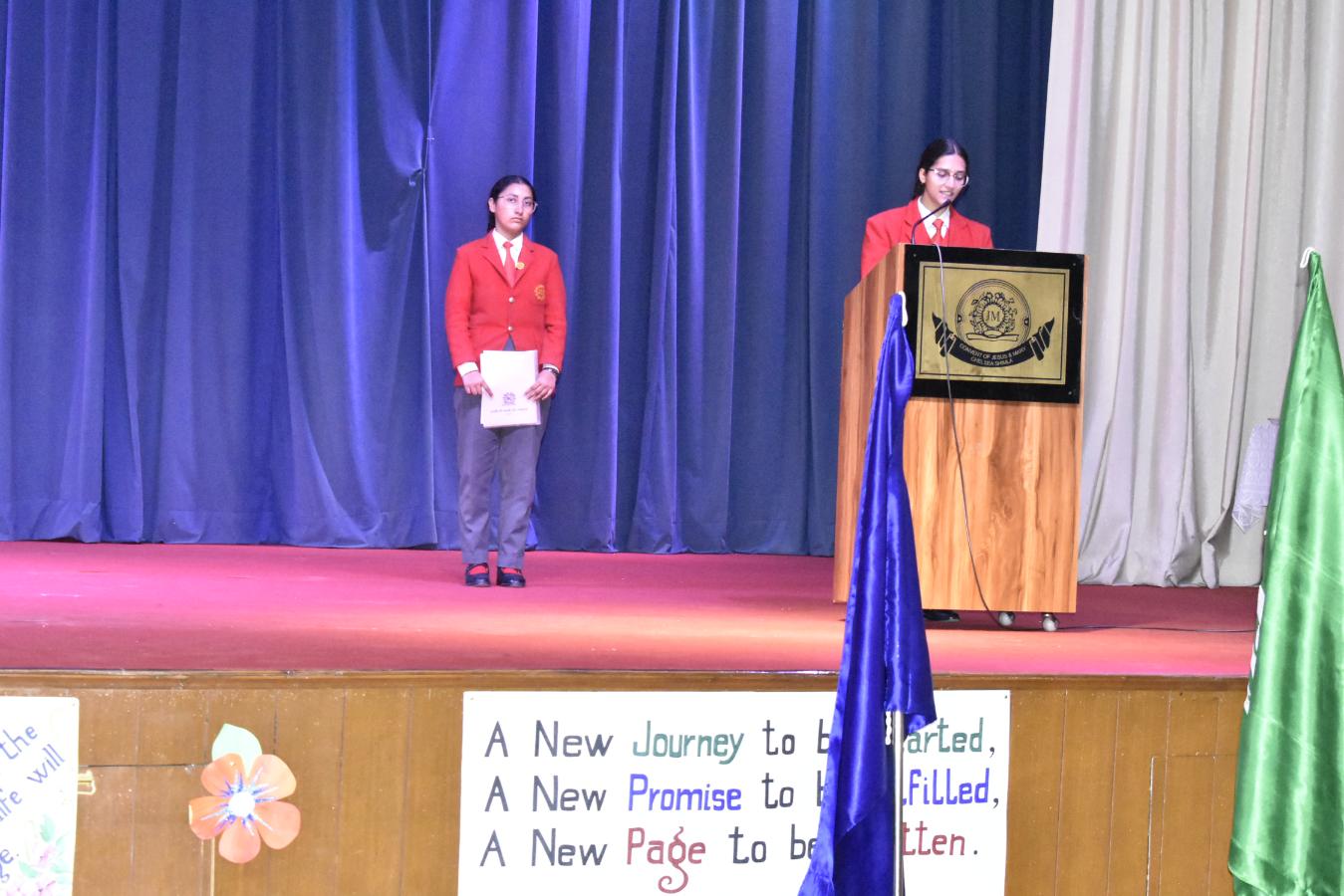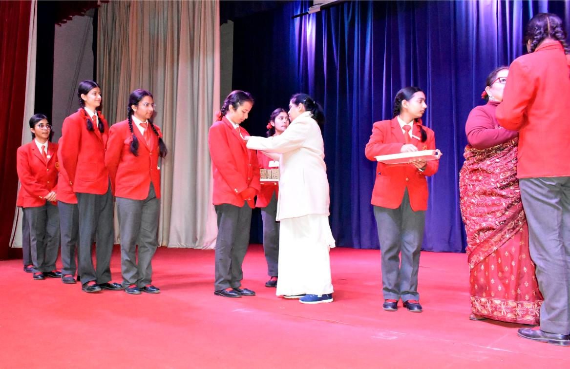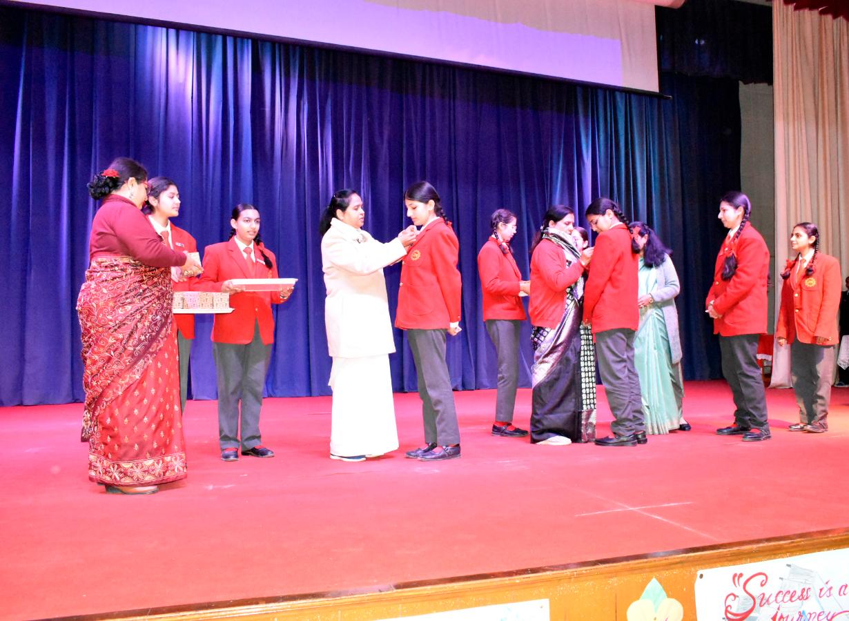 Description: The Laying down Ceremony was held on 21 November. The outgoing Class XII Cabinet handed over their badges and responsibilities to the Principal.