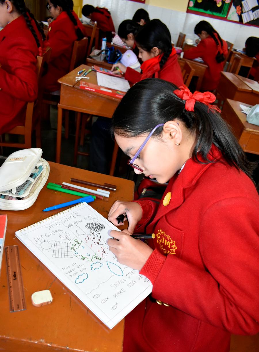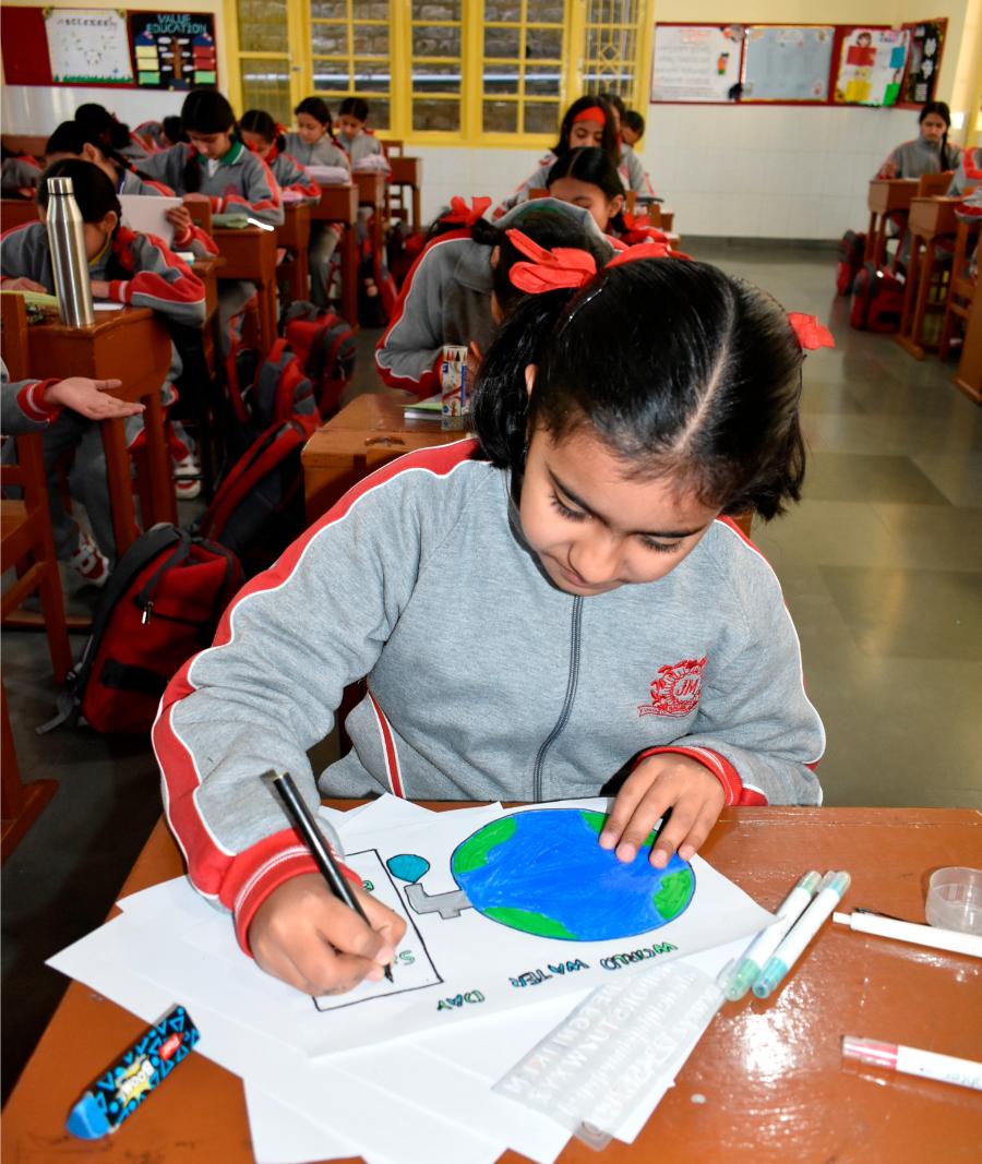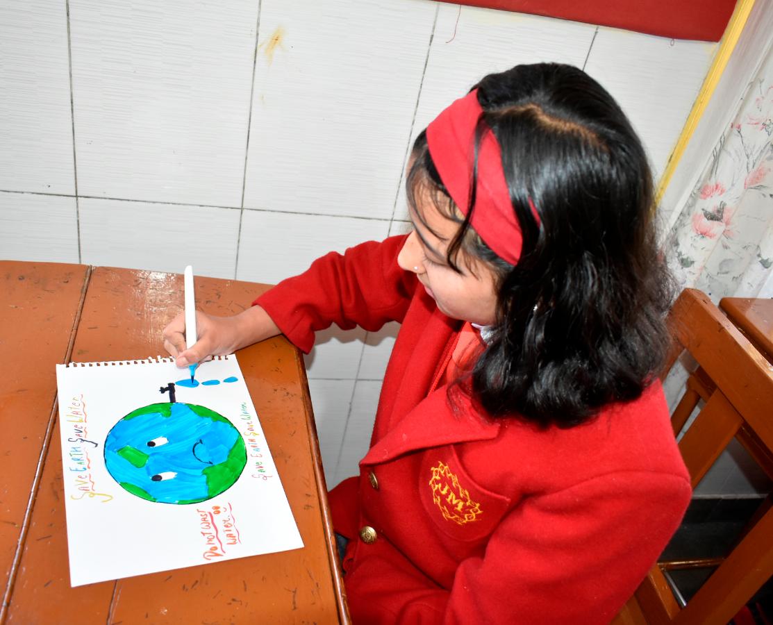 Description: In honour of World Water Day, which is celebrated on 23 March, a segment of the assembly was dedicated to water conservation and its importance. Various points were shared with students, informing them about the importance of water and how it is essential for agriculture, sanitation, and sustaining all forms of life. A poster was also displayed, which visually represented the message of water conservation and its impact on our lives. It helped in making the message more impactful and engaging for the audience. In addition to this, a poster-making activity was also conducted, out of which two were selected from each class, and the rest were displayed in the class itself. This activity helped the students understand the importance of water better.