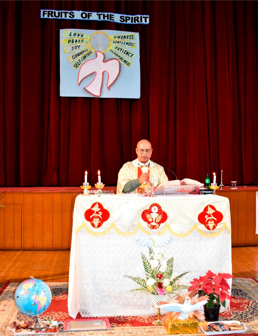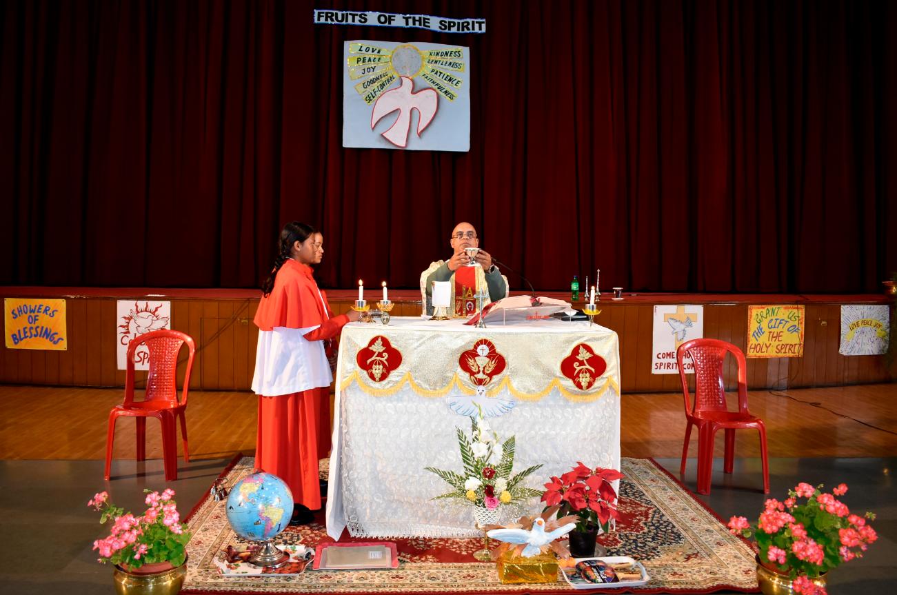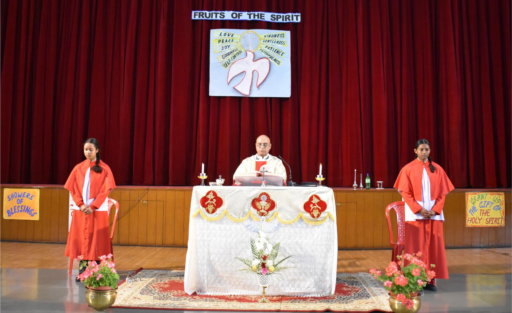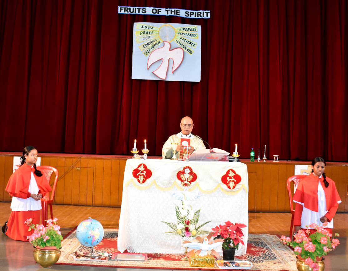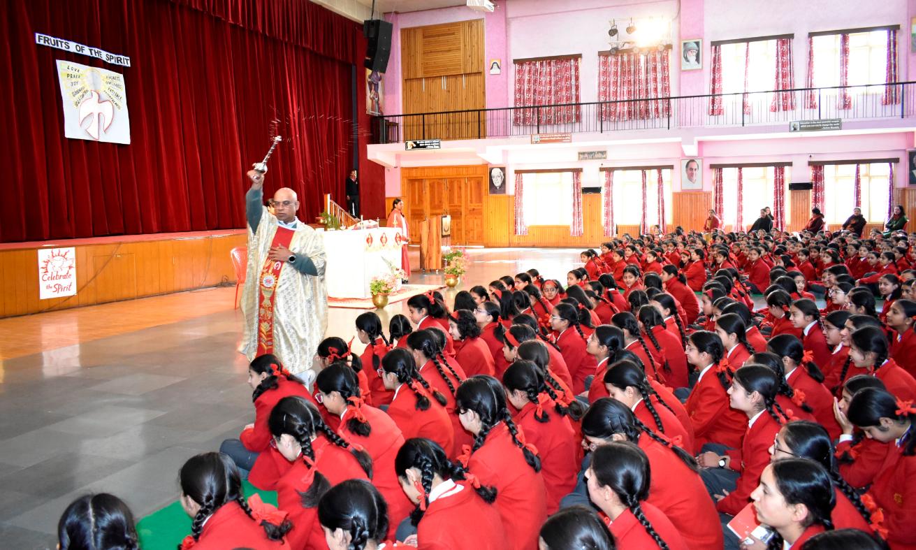 Description: A Grace-Filled Beginning to the New Academic Year On Saturday, 11 April 2026, our school community gathered with joy and reverence to celebrate the Mass of the Holy Spirit, invoking God’s blessings on the new academic year. The solemn Eucharistic celebration was led by Reverend Father Lancy Paul, priest-in-charge at St. Padre Pio Church, Naya Gaon. In his homily, Father Lancy Paul urged students to remember that whenever they are in need, they should turn to God for help and trust in His providence. He reminded each one that they are uniquely created by God, with individual gifts and a special purpose. He encouraged all to let the Holy Spirit be their guide, so they may learn with enthusiasm, act with kindness, and live with integrity. The Offertory procession beautifully reflected our prayers. Symbols of light, growth, knowledge, endurance, unity, peace, and nourishment were offered — a candle, a potted plant, books, sports emblems, a globe, a dove, and bread and wine. Each offering was accompanied by heartfelt prayers, calling us to root ourselves in truth, strive with discipline, and be witnesses of love and service. The Mass was made deeply prayerful through the devotion of our students who led the readings and intercessions, and the choir whose hymns lifted every heart. Behind the scenes, our teachers, non-teaching staff, and helpers worked tirelessly to ensure the celebration flowed with grace and dignity. The event was held under the able guidance of our respected Principal, Sister Greta, whose vision and care continue to shape the moral and academic fabric of our school. A heartfelt Vote of Thanks was delivered on behalf of the entire school community, expressing gratitude to Father Lancy Paul, Sister Greta, the staff, students, and all who contributed to the day. As we step into this academic year, we carry the message of the Mass in our hearts: to seek God’s help in every need, to value the uniqueness God has given each of us, and to let the Holy Spirit enlighten our minds, strengthen our hearts, and guide every endeavour. “Pray as though everything depended on God. Work as though everything depended on you.” – St. Augustine