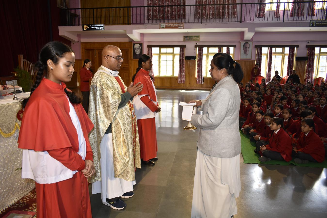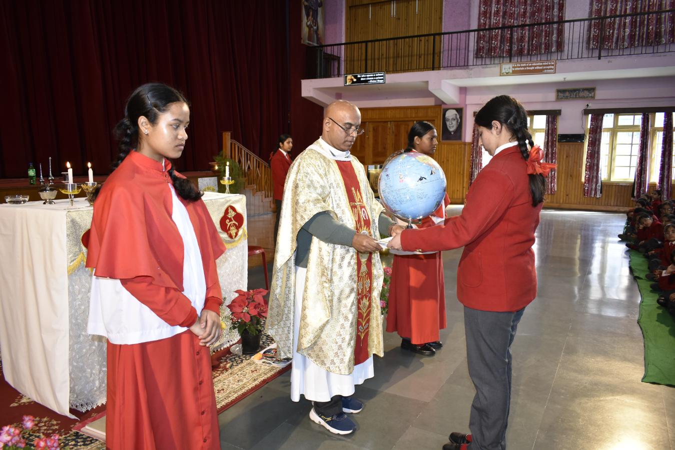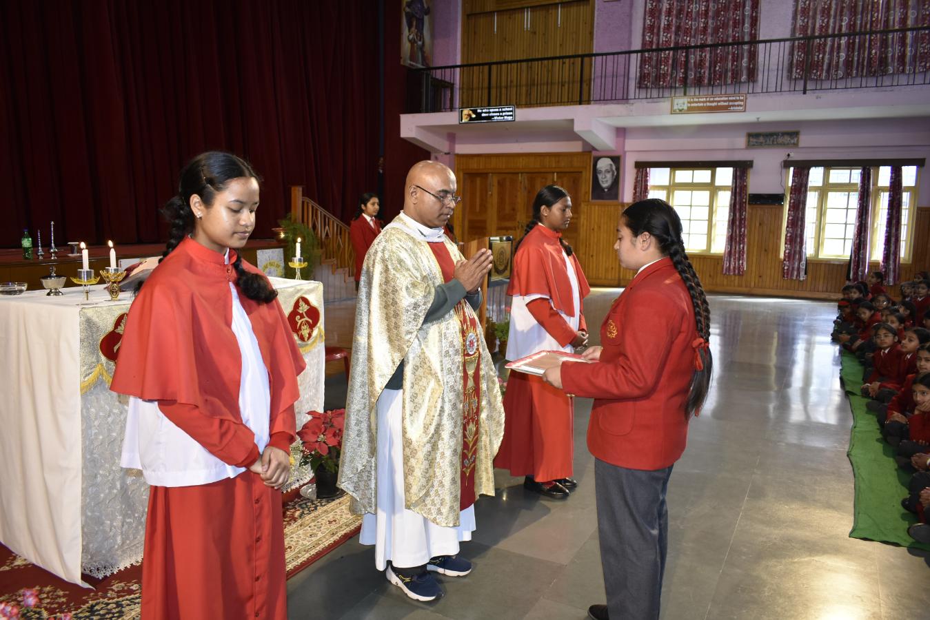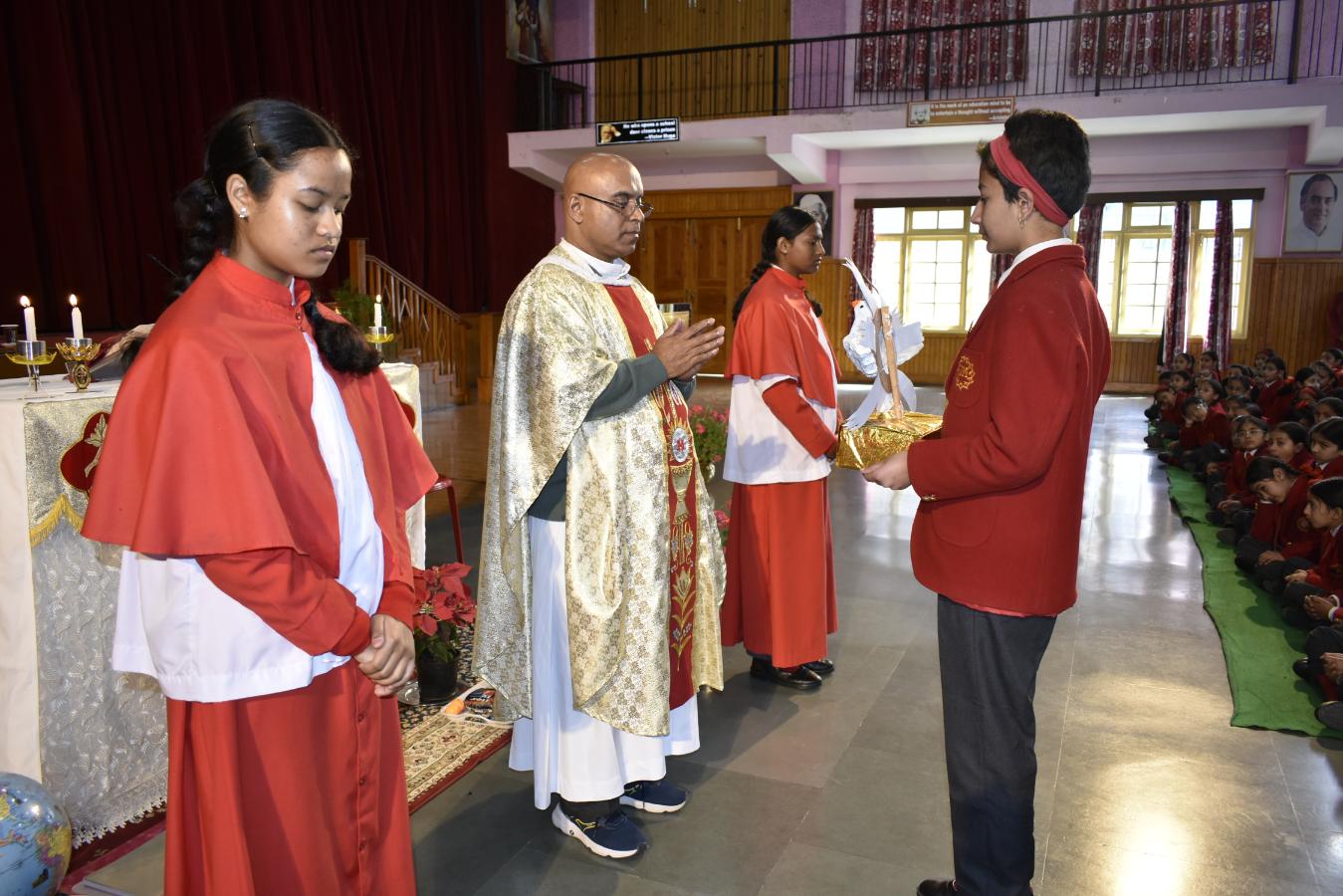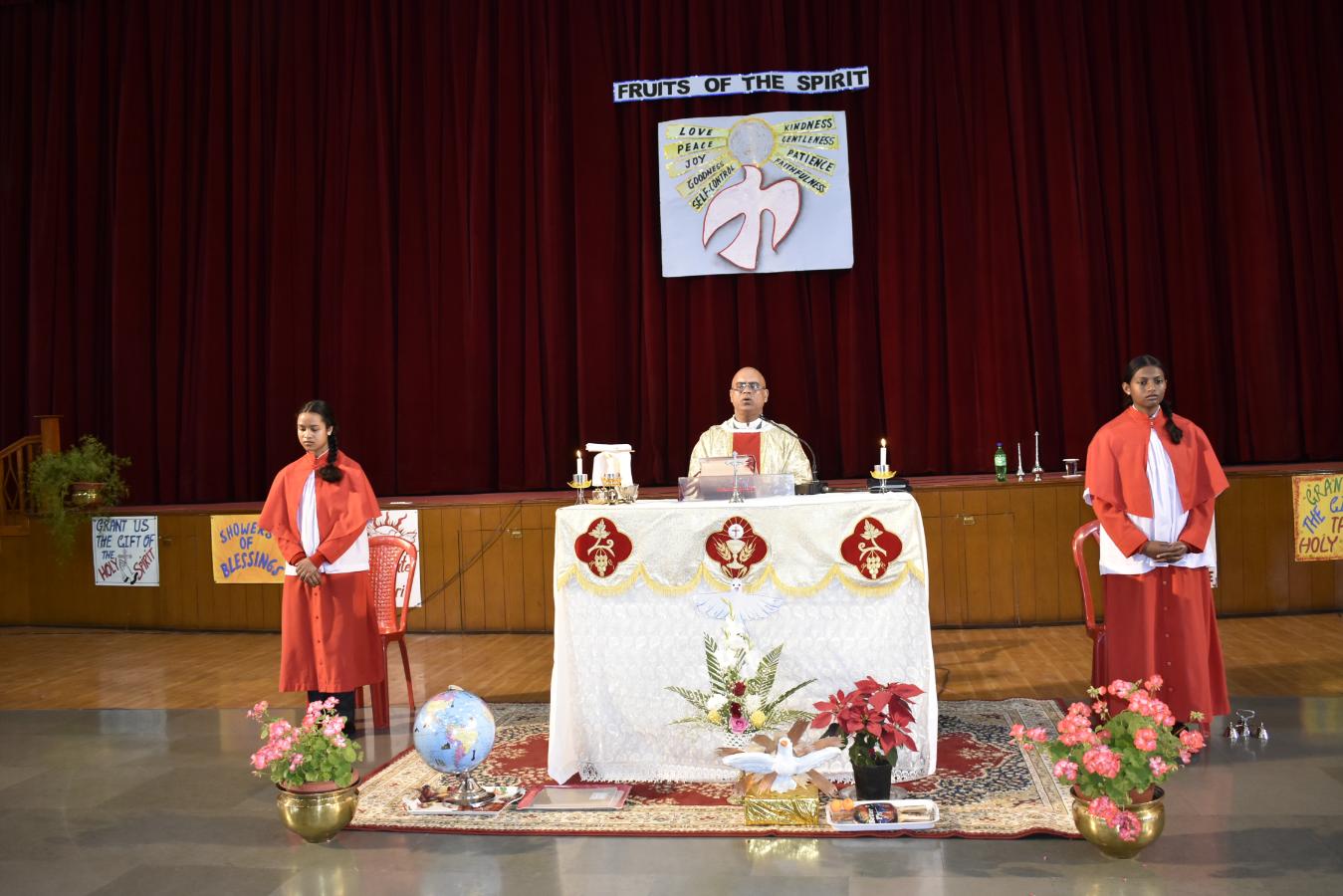 Description: A Grace-Filled Beginning to the New Academic Year On Saturday, 11 April 2026, our school community gathered with joy and reverence to celebrate the Mass of the Holy Spirit, invoking God’s blessings on the new academic year. The solemn Eucharistic celebration was led by Reverend Father Lancy Paul, priest-in-charge at St. Padre Pio Church, Naya Gaon. In his homily, Father Lancy Paul urged students to remember that whenever they are in need, they should turn to God for help and trust in His providence. He reminded each one that they are uniquely created by God, with individual gifts and a special purpose. He encouraged all to let the Holy Spirit be their guide, so they may learn with enthusiasm, act with kindness, and live with integrity. The Offertory procession beautifully reflected our prayers. Symbols of light, growth, knowledge, endurance, unity, peace, and nourishment were offered — a candle, a potted plant, books, sports emblems, a globe, a dove, and bread and wine. Each offering was accompanied by heartfelt prayers, calling us to root ourselves in truth, strive with discipline, and be witnesses of love and service. The Mass was made deeply prayerful through the devotion of our students who led the readings and intercessions, and the choir whose hymns lifted every heart. Behind the scenes, our teachers, non-teaching staff, and helpers worked tirelessly to ensure the celebration flowed with grace and dignity. The event was held under the able guidance of our respected Principal, Sister Greta, whose vision and care continue to shape the moral and academic fabric of our school. A heartfelt Vote of Thanks was delivered on behalf of the entire school community, expressing gratitude to Father Lancy Paul, Sister Greta, the staff, students, and all who contributed to the day. As we step into this academic year, we carry the message of the Mass in our hearts: to seek God’s help in every need, to value the uniqueness God has given each of us, and to let the Holy Spirit enlighten our minds, strengthen our hearts, and guide every endeavour. “Pray as though everything depended on God. Work as though everything depended on you.” – St. Augustine