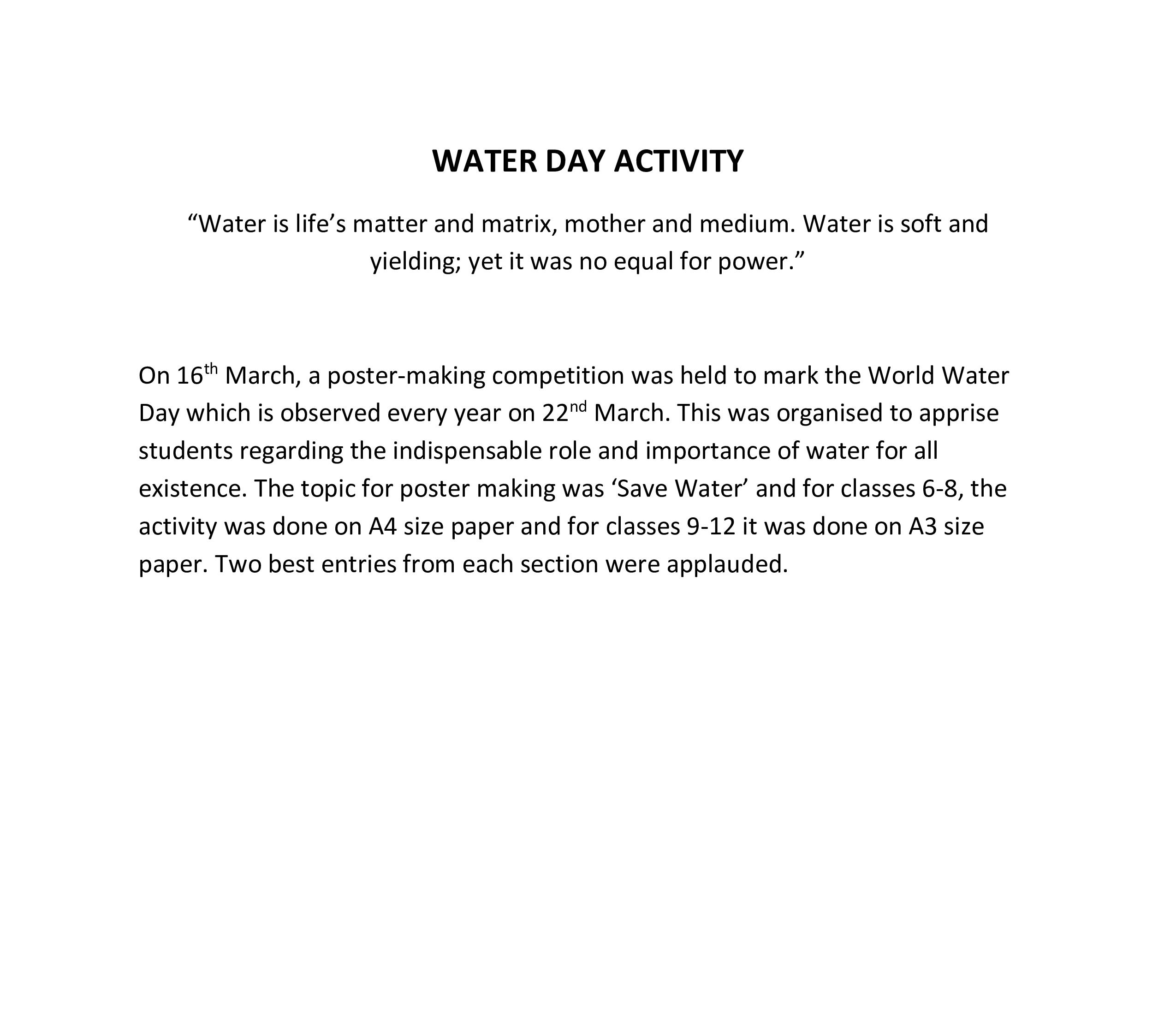 Description: On 16th March,2024 Water Day activity was conducted for classes VI-XII.