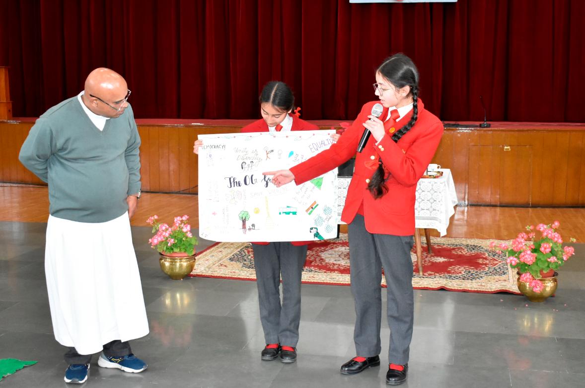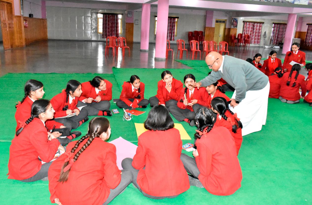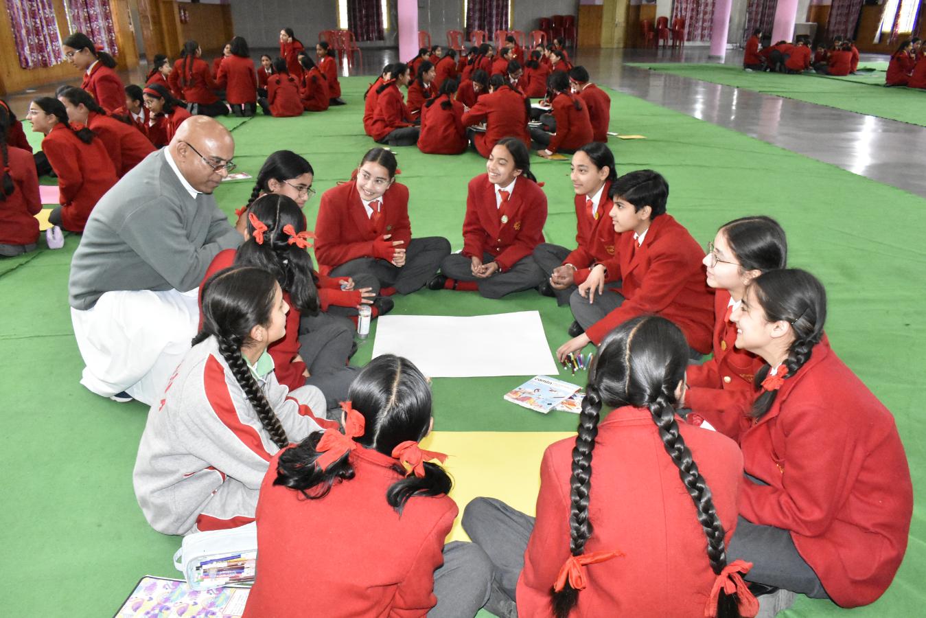 Description: In a beautiful dance of mind and movement, the seminar conducted by Father Lancy Paul on 11th April. The students of class VIII participated actively to bridge the gap between their inner worlds and the heavens. By charting their private soul-longings against the grand expectations of society, participants unraveled the tapestry of their own hearts. A playful balloon activity added a spark of joy, awakening the senses and harmonizing the spirit for a truly transformative experience.