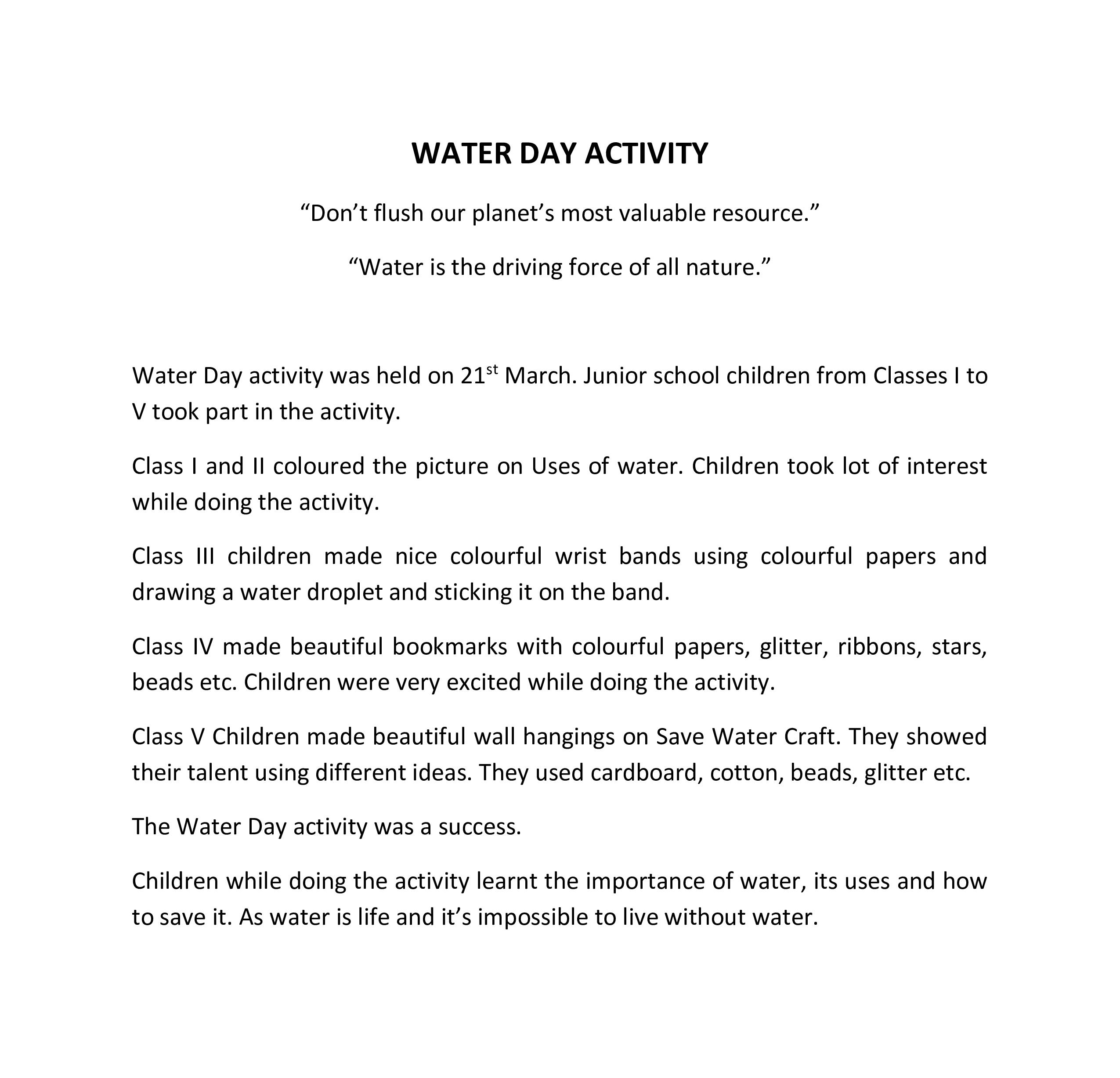 list_alt Title: JUNIOR SCHOOL WATER DAY ACTIVI...