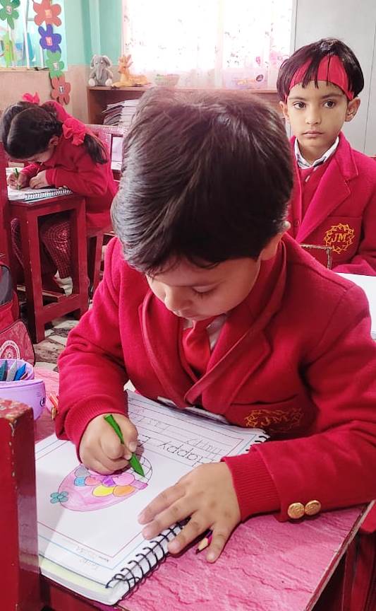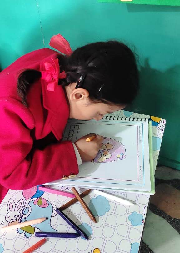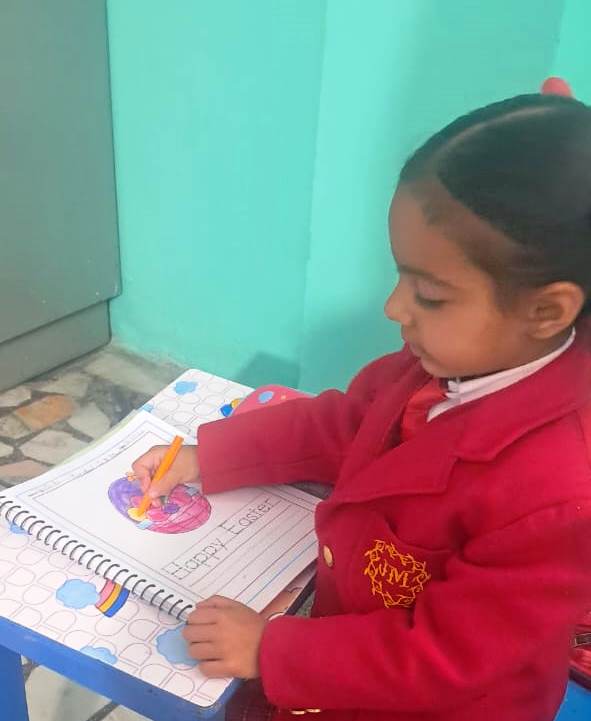 Description: On 31st March, an Easter activity was conducted in the K.G. class. The children enjoyed colouring Easter-themed pictures with great excitement. They also learned about the importance and values of Easter, such as love, kindness, sharing, and new beginnings.