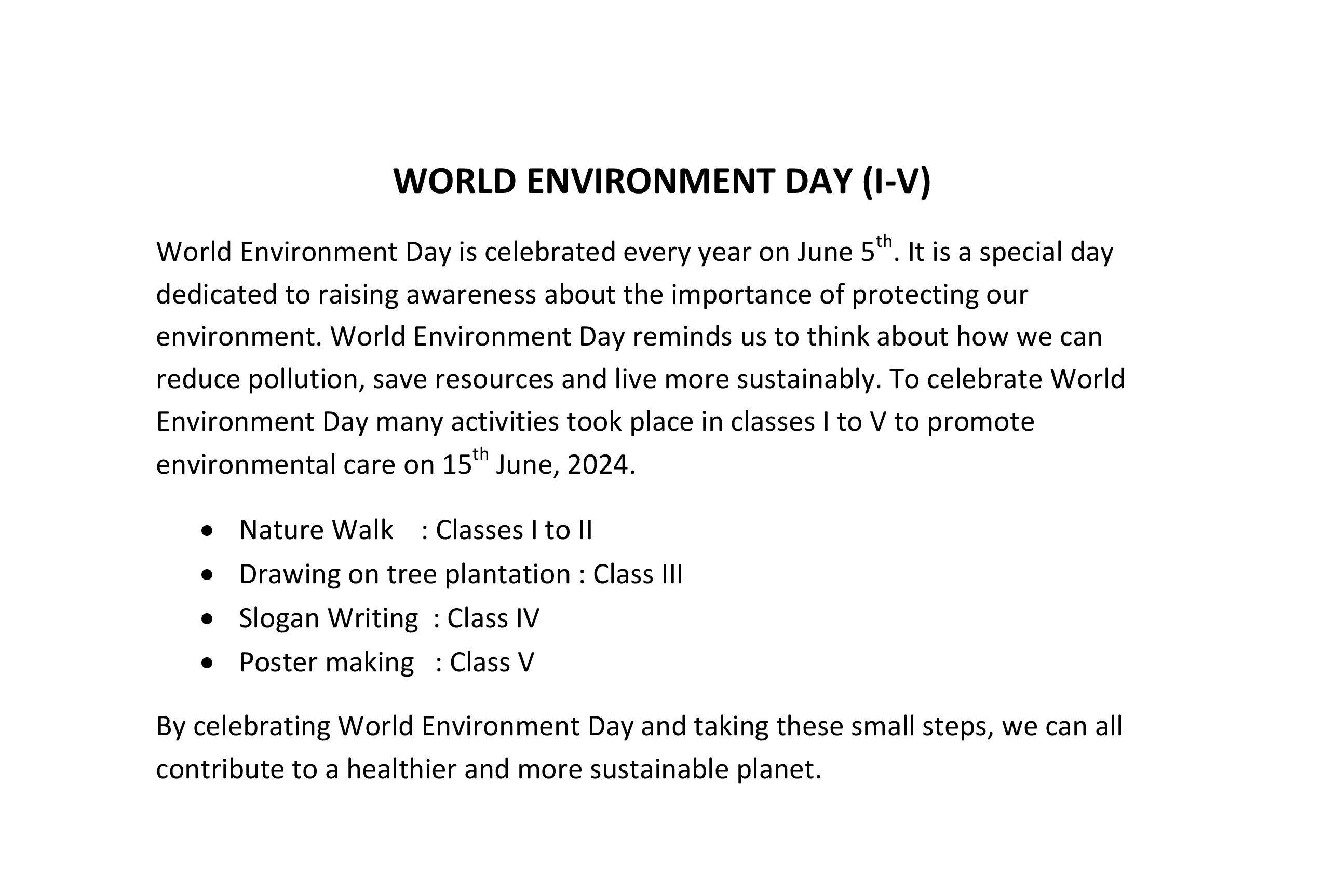 Description: World Environment Day Activity was conducted for classes I to V on 15th June, 2024.