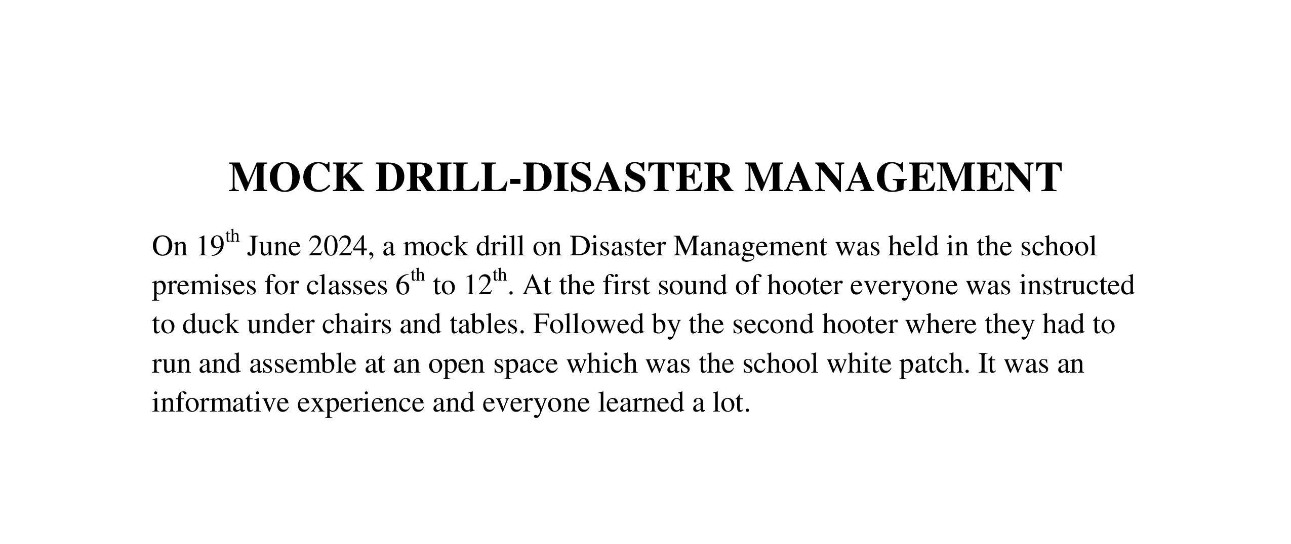 Description: Mock Drill on Disaster Management.