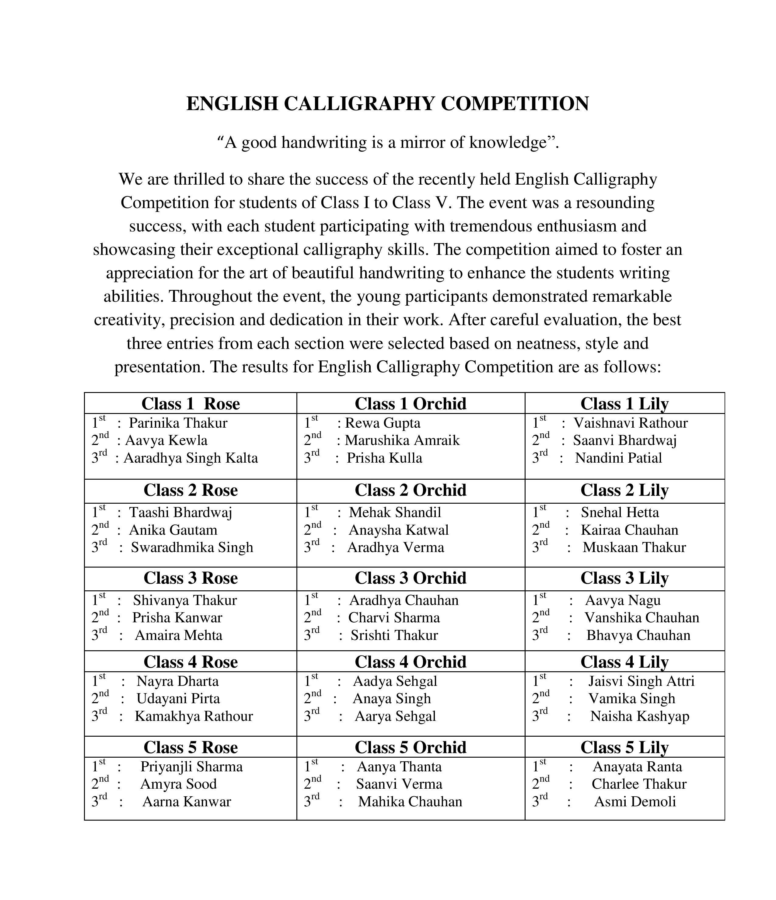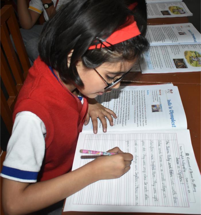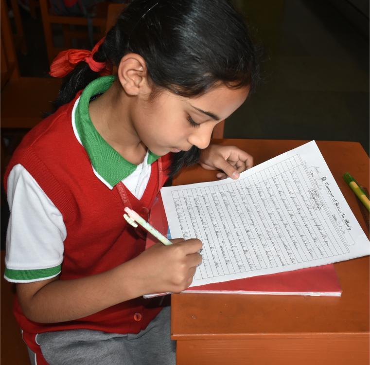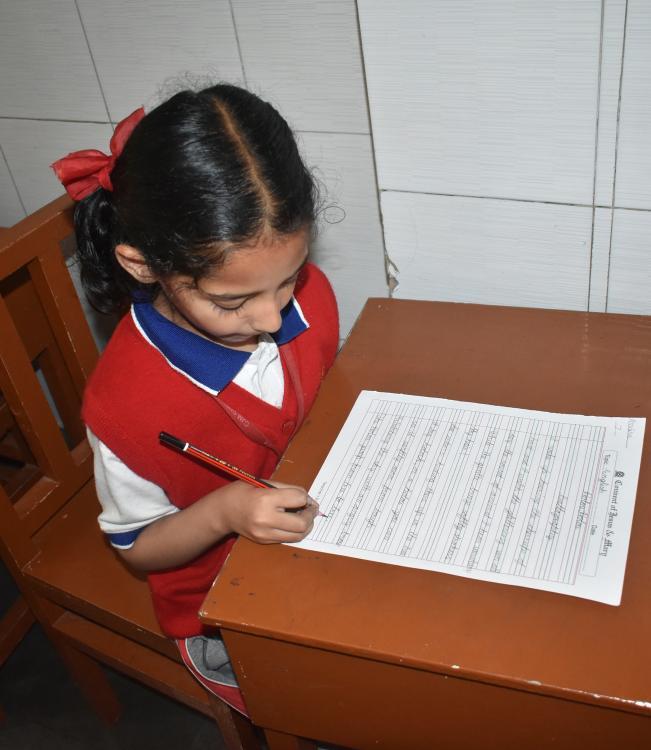 Description: On 21st June, 2024 English Calligraphy Activity was conducted for classes I to V.