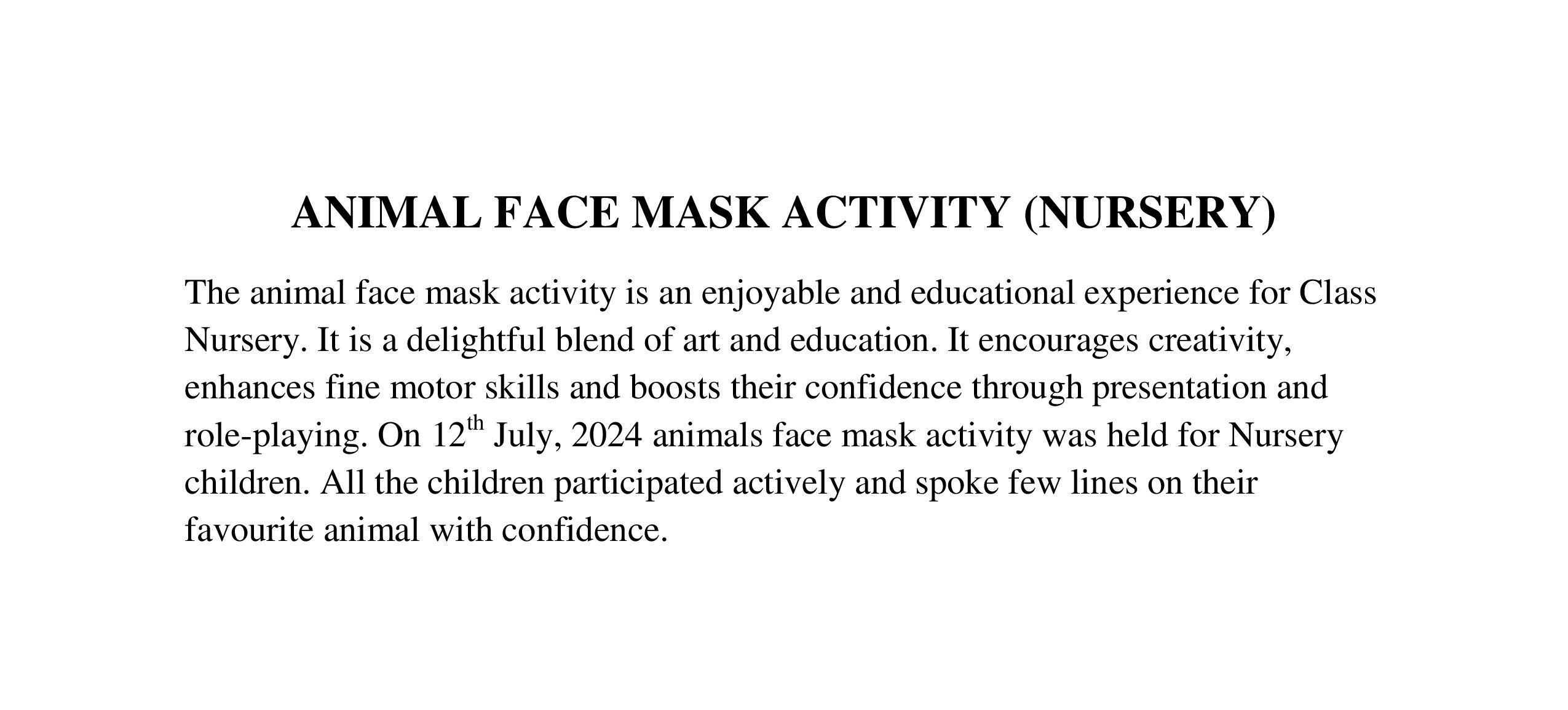 Description: On 12th July, 2024 an activity was conducted for class Nursery on the topic Animal Face Mask.