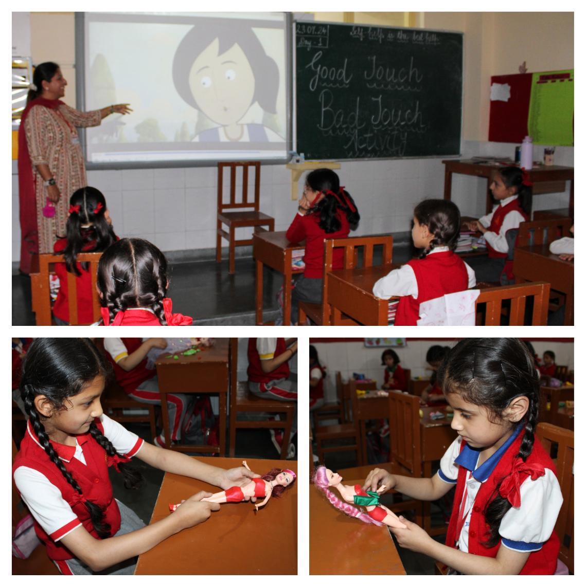 Description: Various activities were conducted on 26th July, 2024 for classes I- IV on the topic Good Touch and Bad touch.