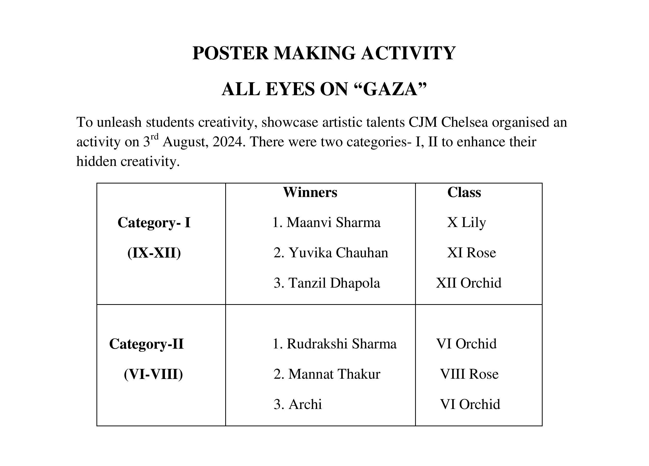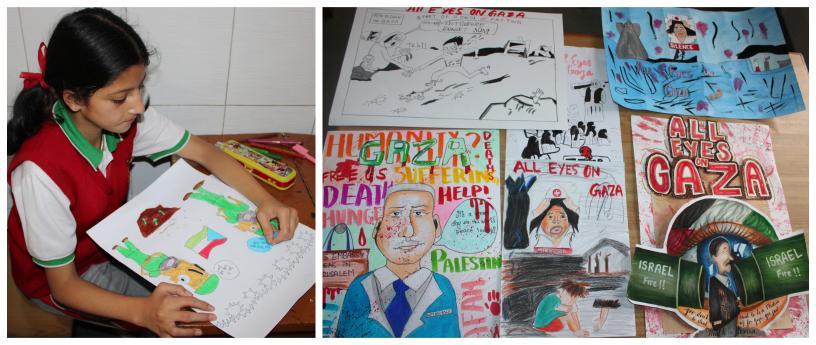 Description: On 3rd August, 2024 a poster making activity was conducted for classes VI to XII on the topic All Eyes On Gaza.