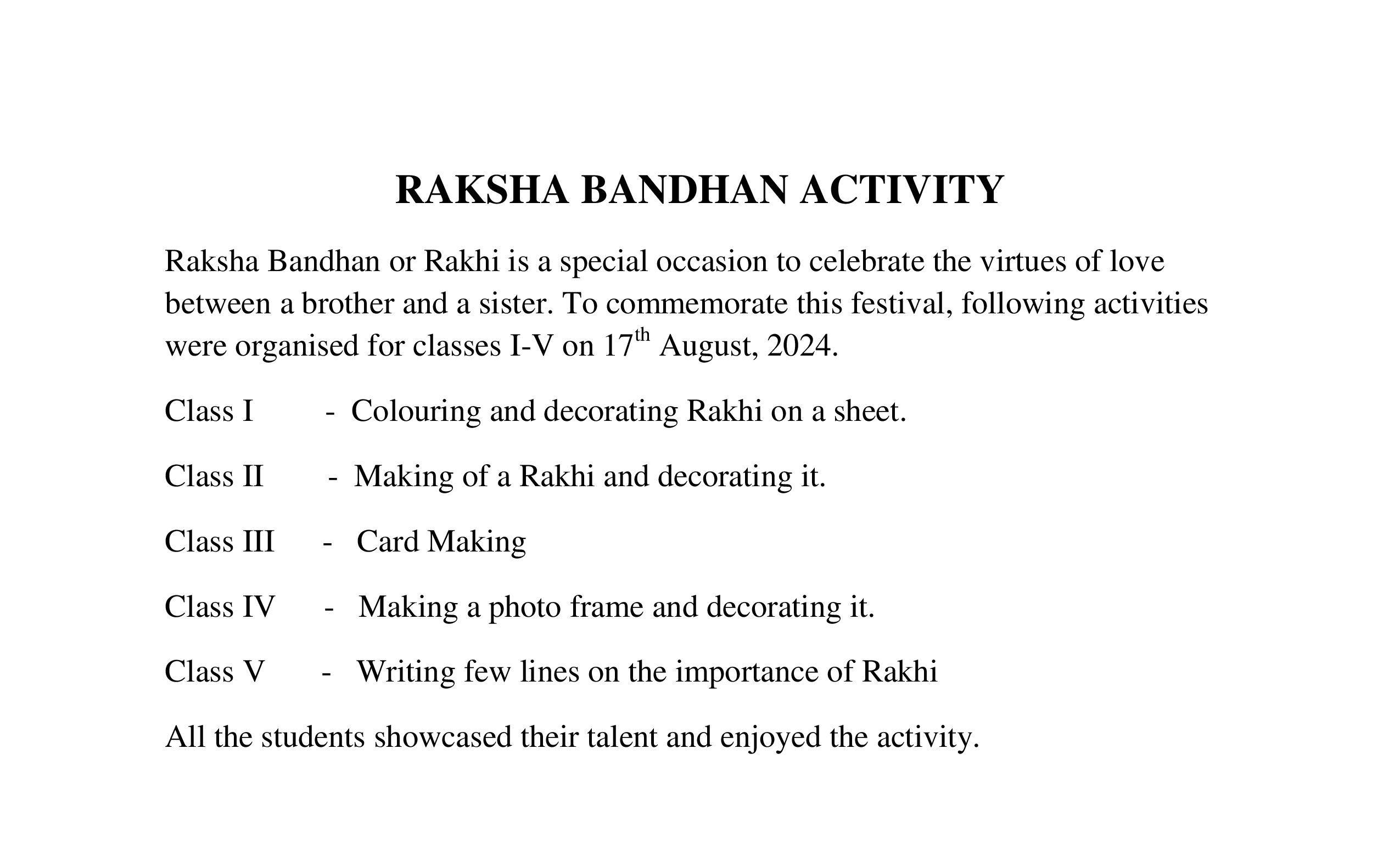 Description: On 17th August,2024 an activity on Raksha Bandhan was conducted for classes I-V in school.