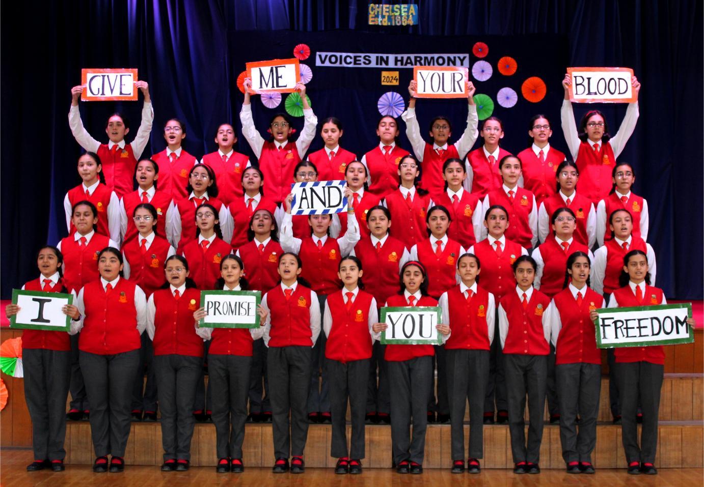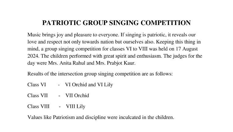 Description: On 17th August 2024, a Patriotic Group Singing Competition was conducted for classes VI to VIII.