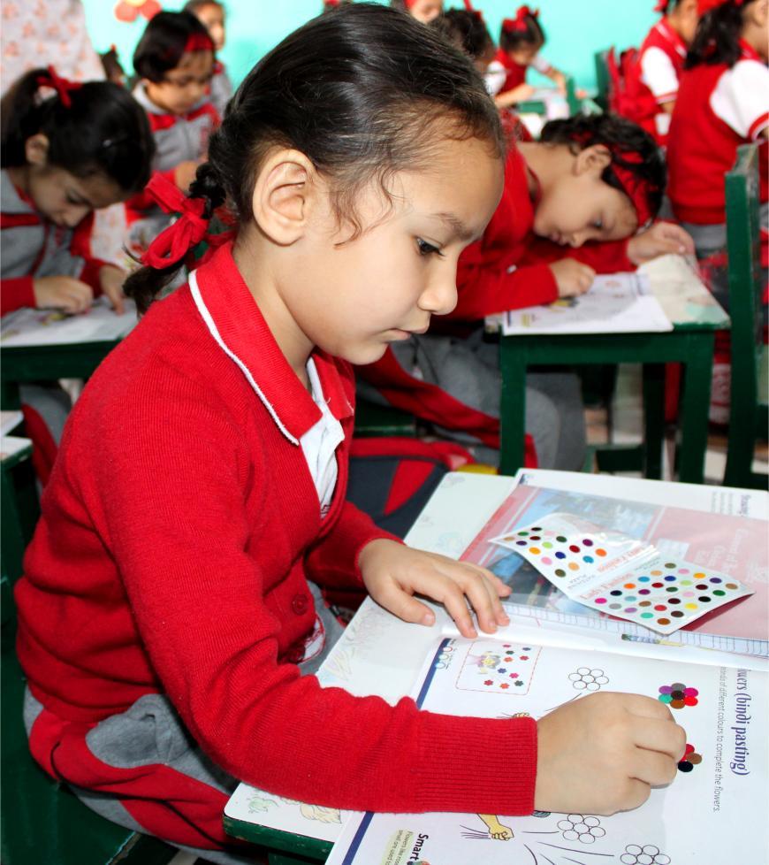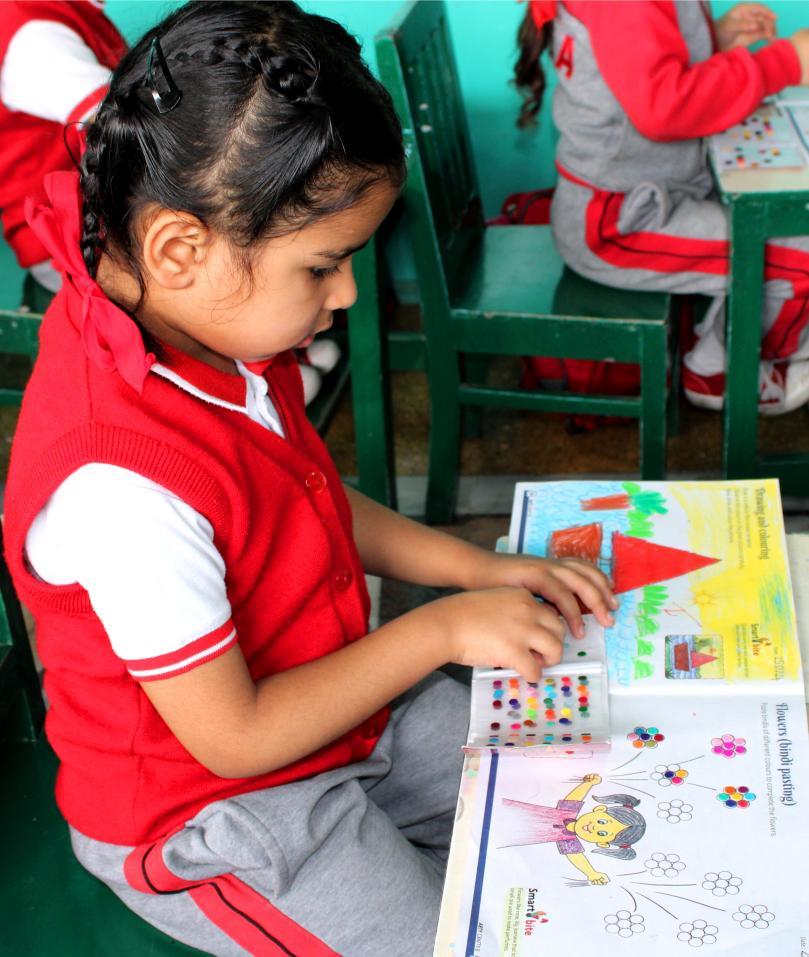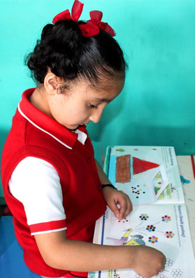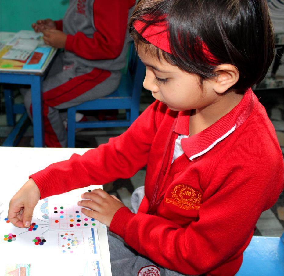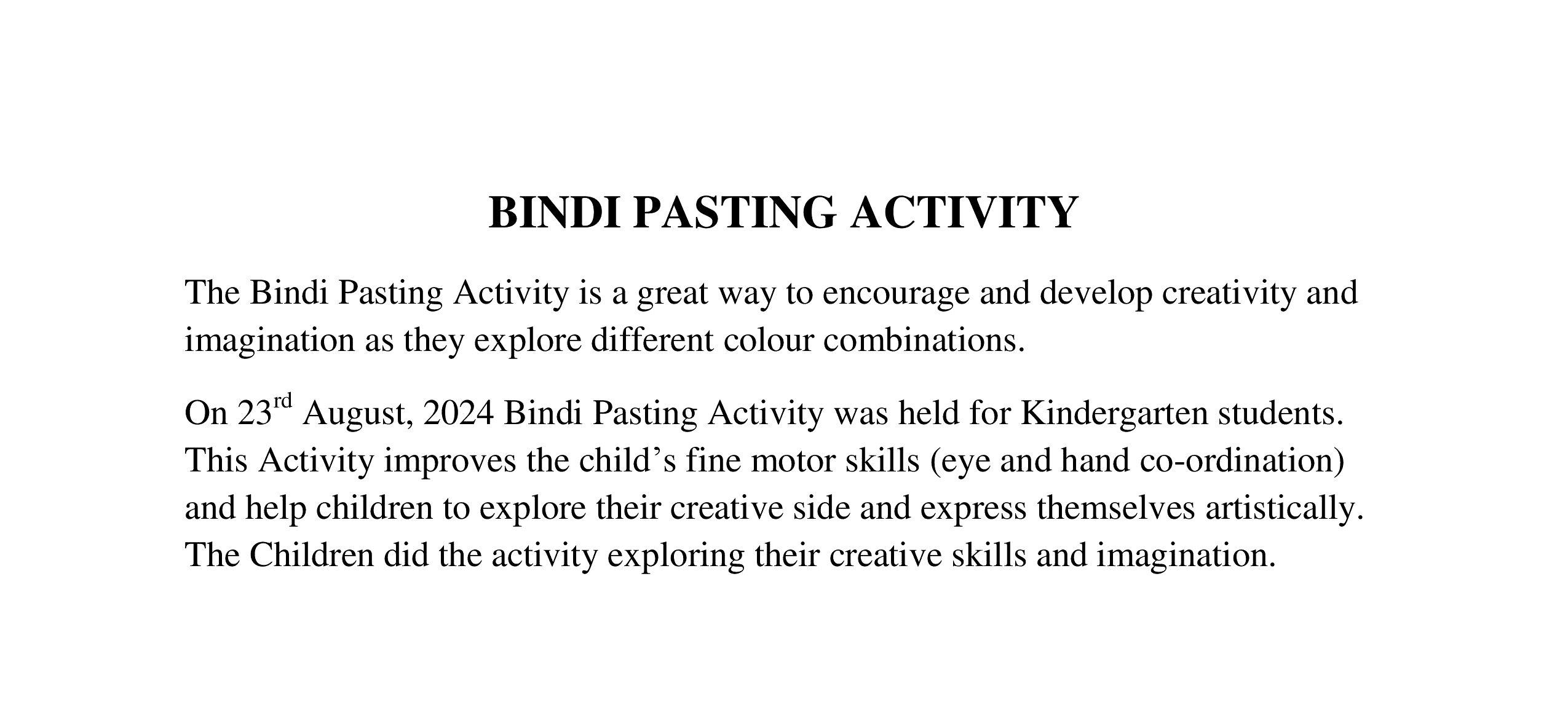 Description: On 23rd August 2024, a Bindi Pasting Activity was done by class KG.
