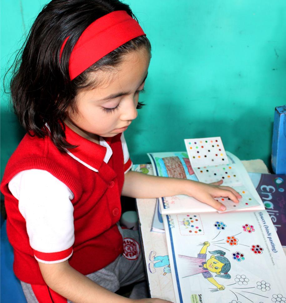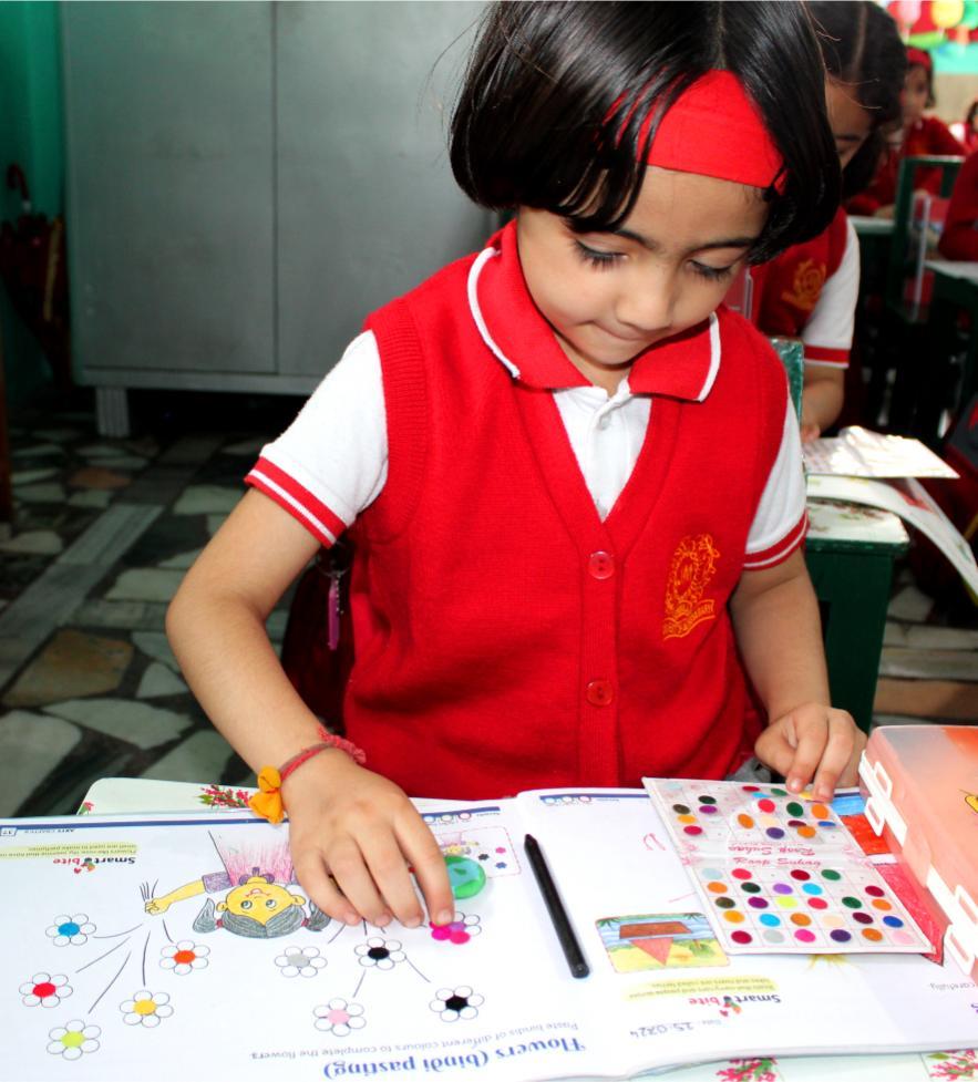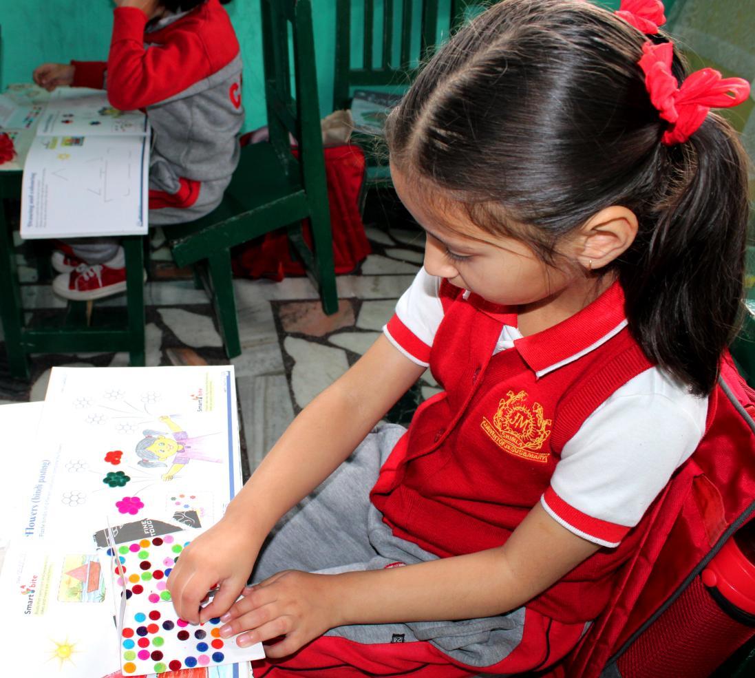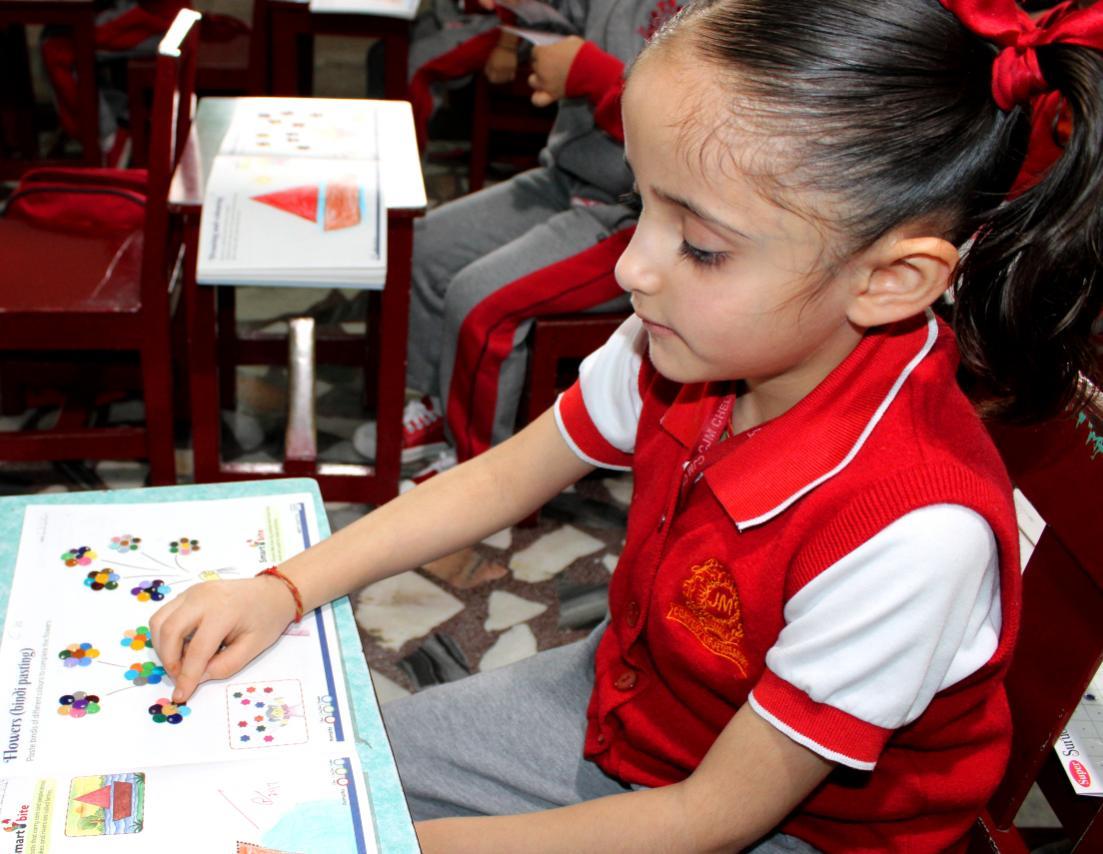 Description: On 23rd August 2024, a Bindi Pasting Activity was done by class KG.