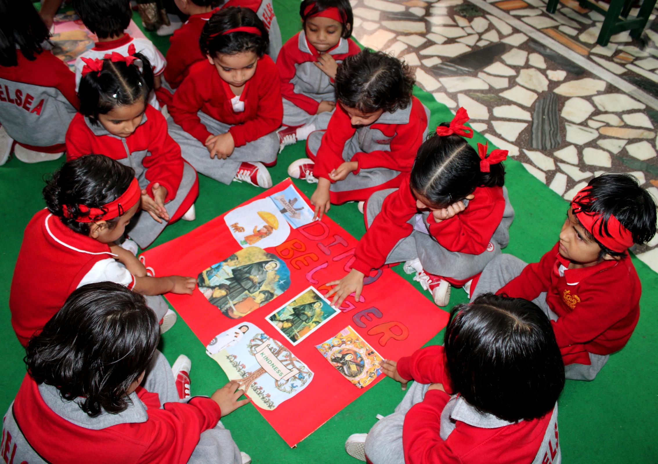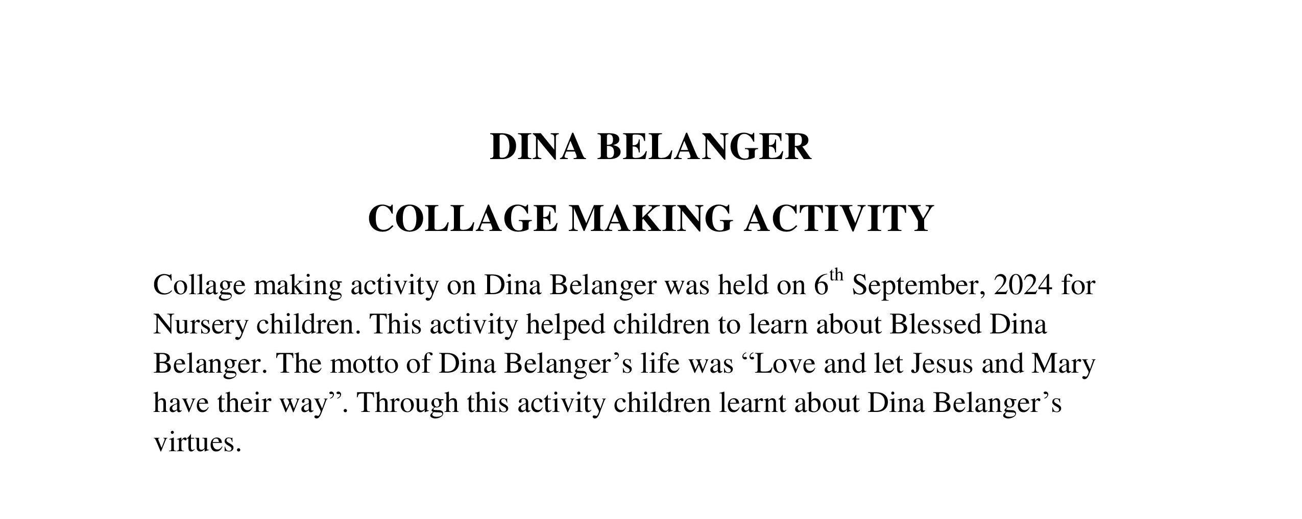 Description: On 6th September, 2024 a collage making activity was conducted for class Nursery on Dina Belanger.