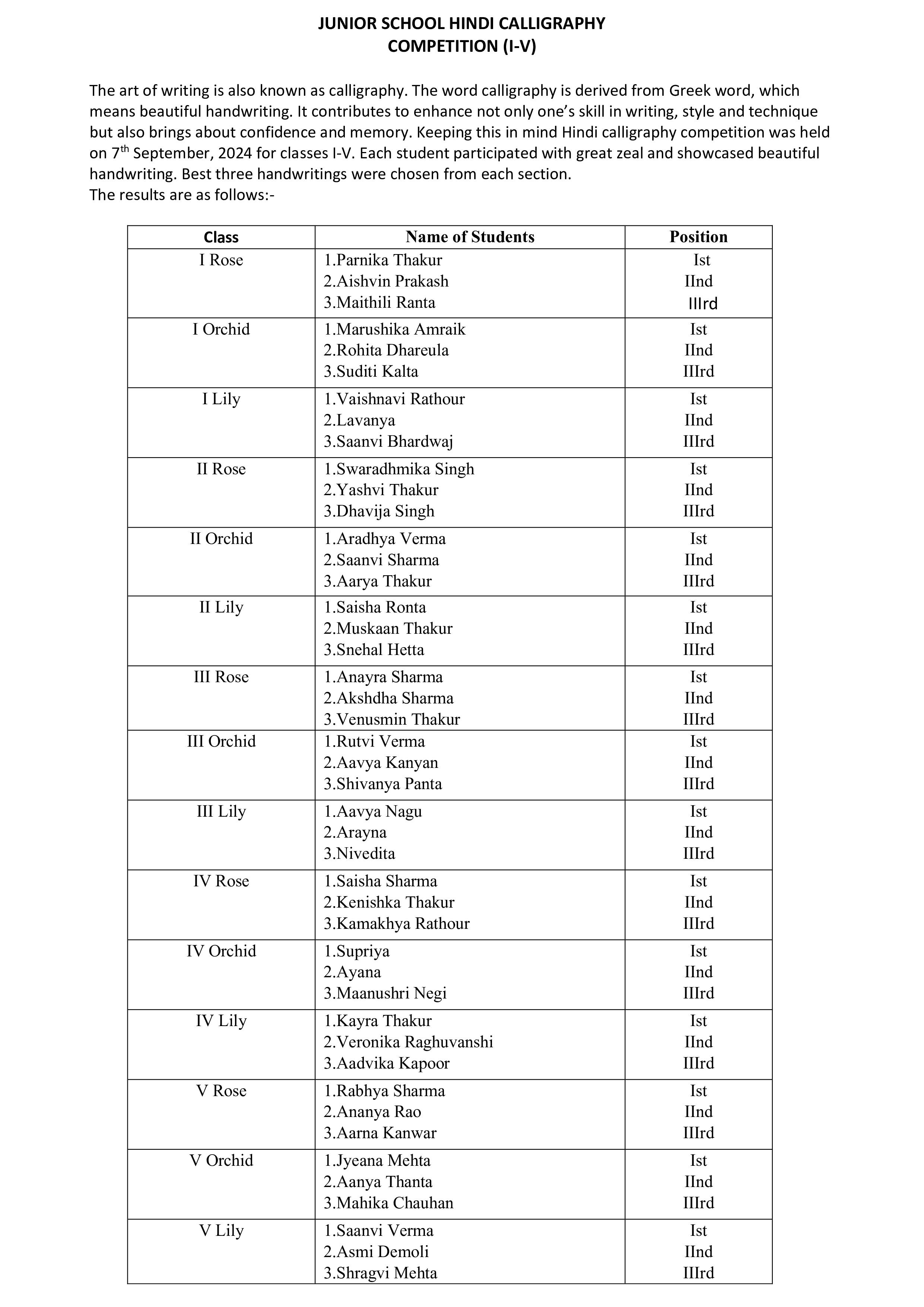 Description: On 7th September, 2024 Hindi Calligraphy Activity was conducted for classes I to V.