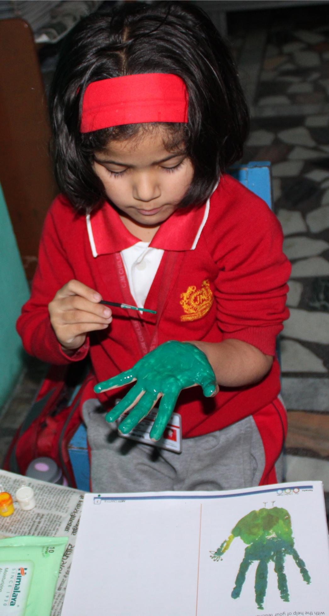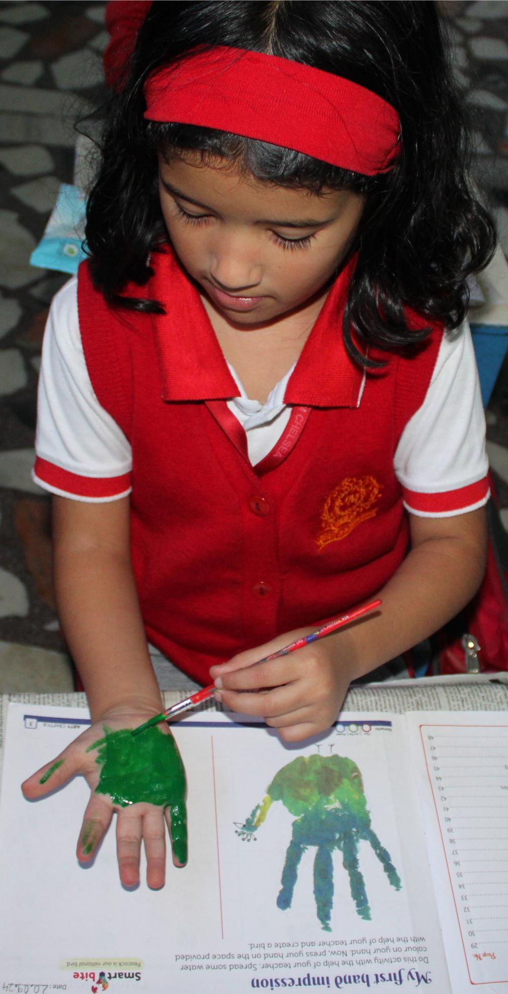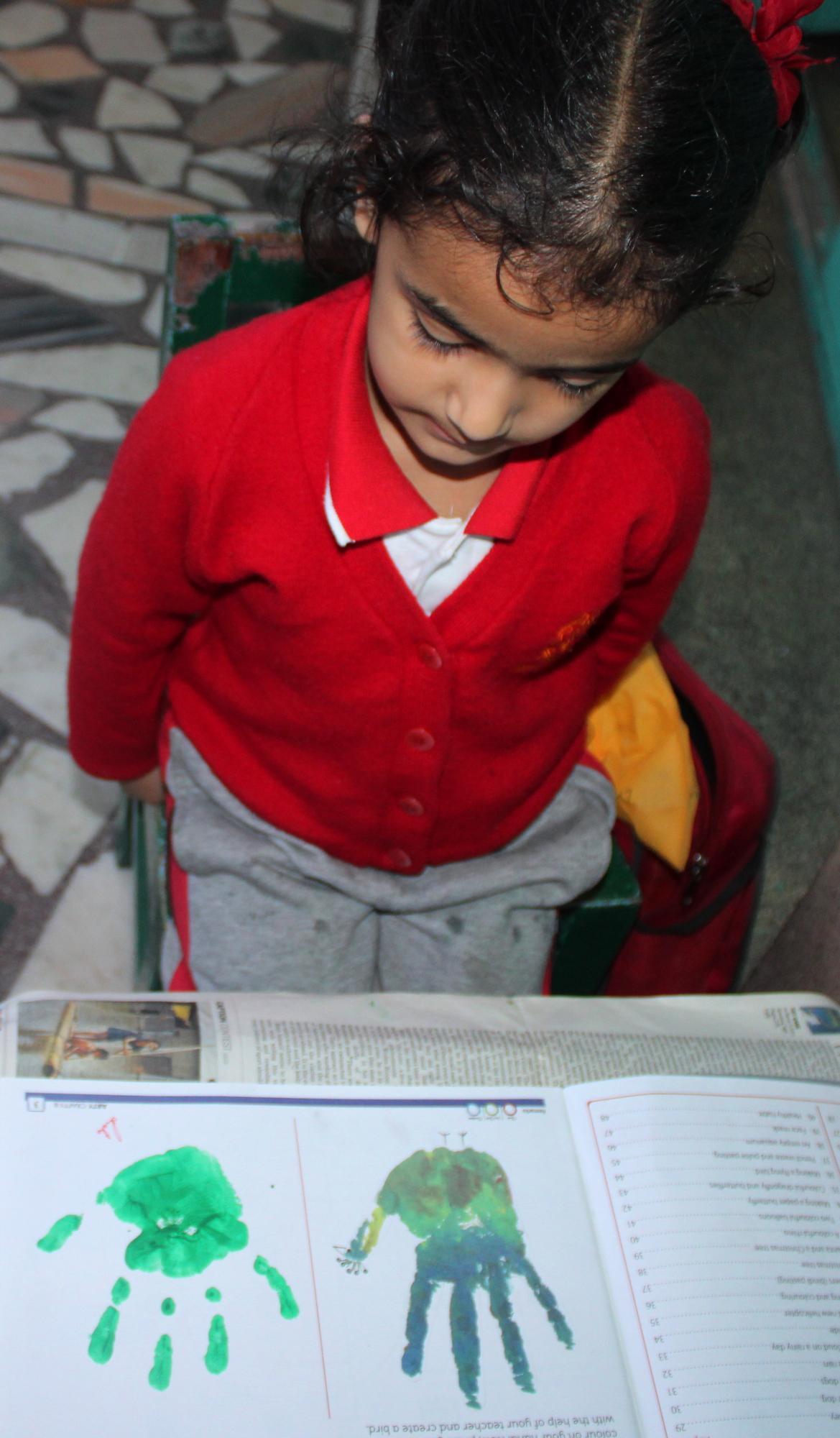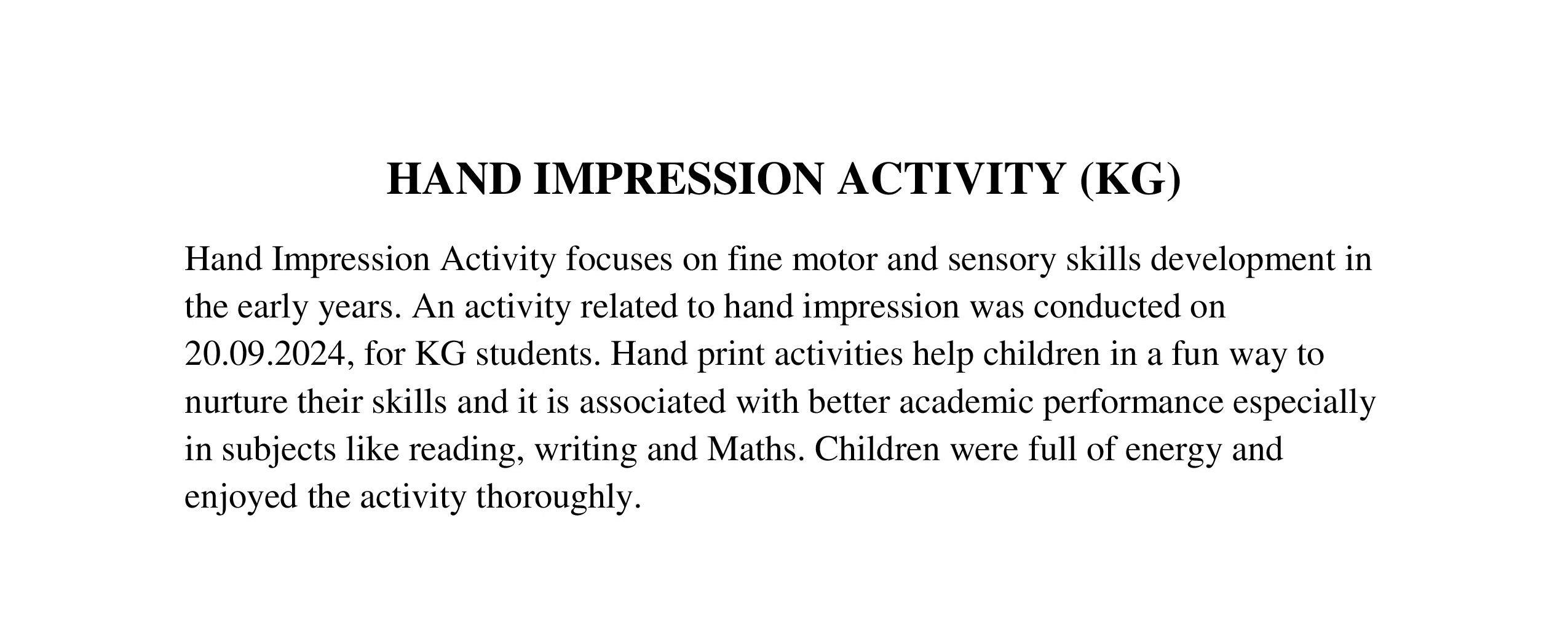 Description: On 20th September,2024 Hand impression activity was done by KG class.
