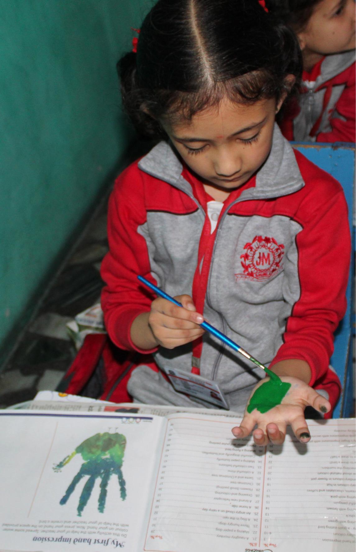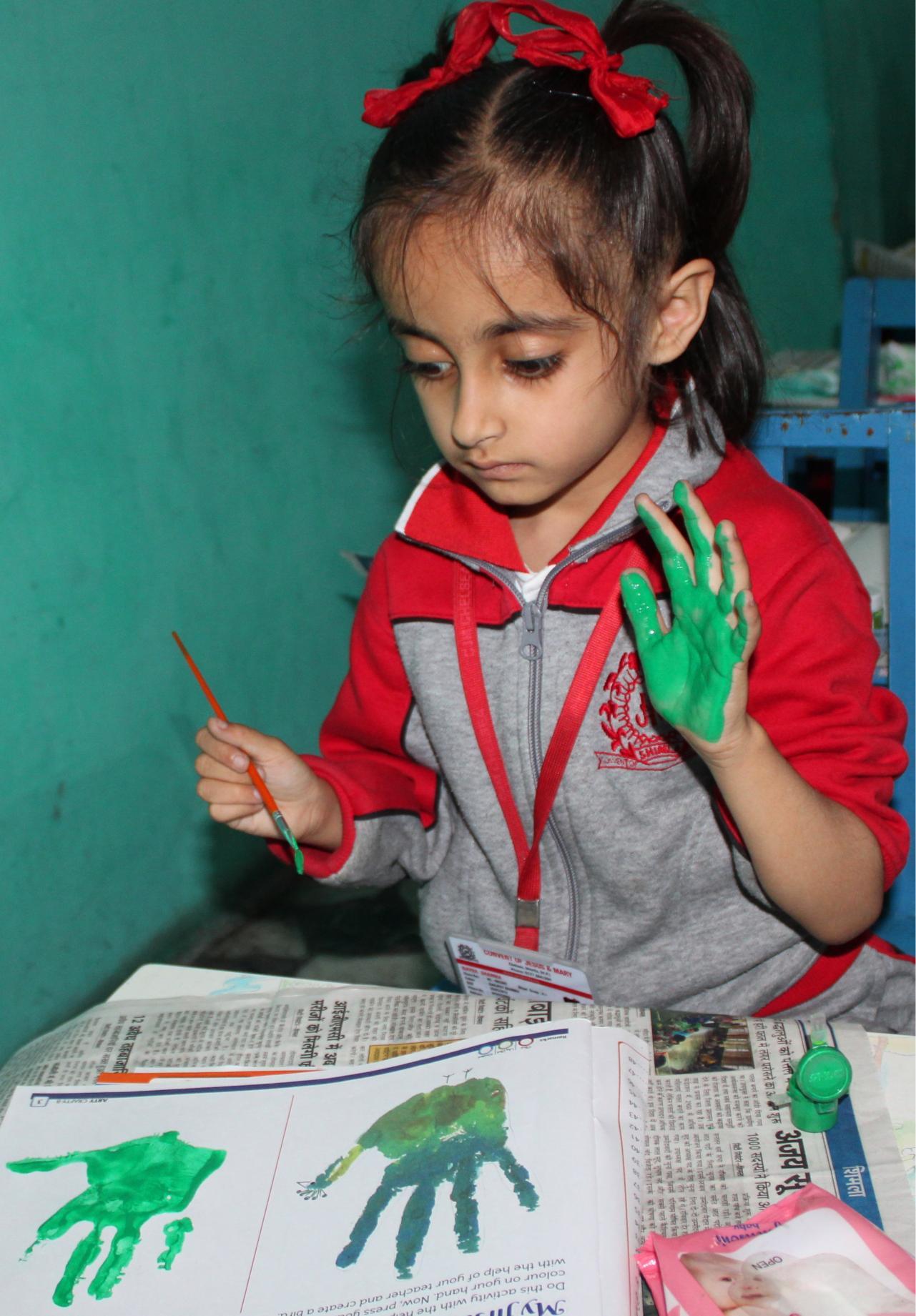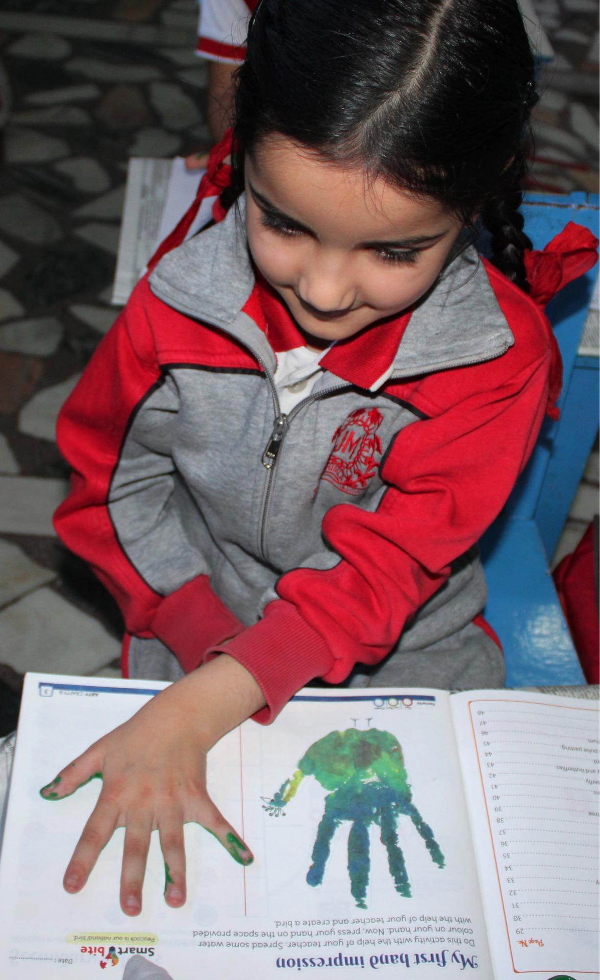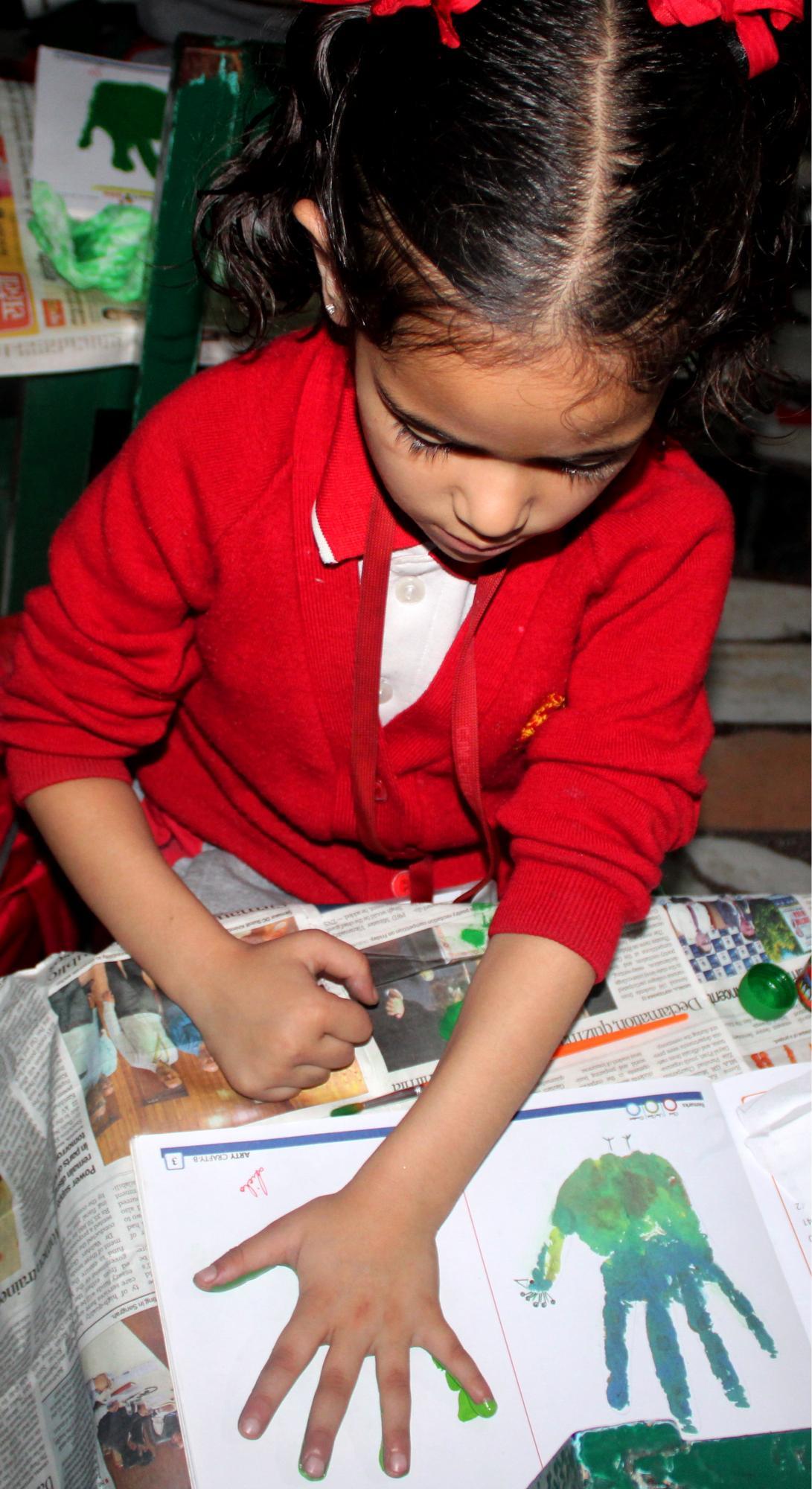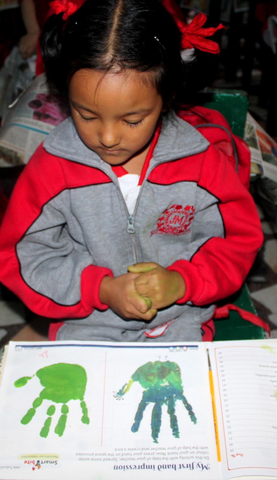 Description: On 20th September,2024 Hand impression activity was done by KG class.
