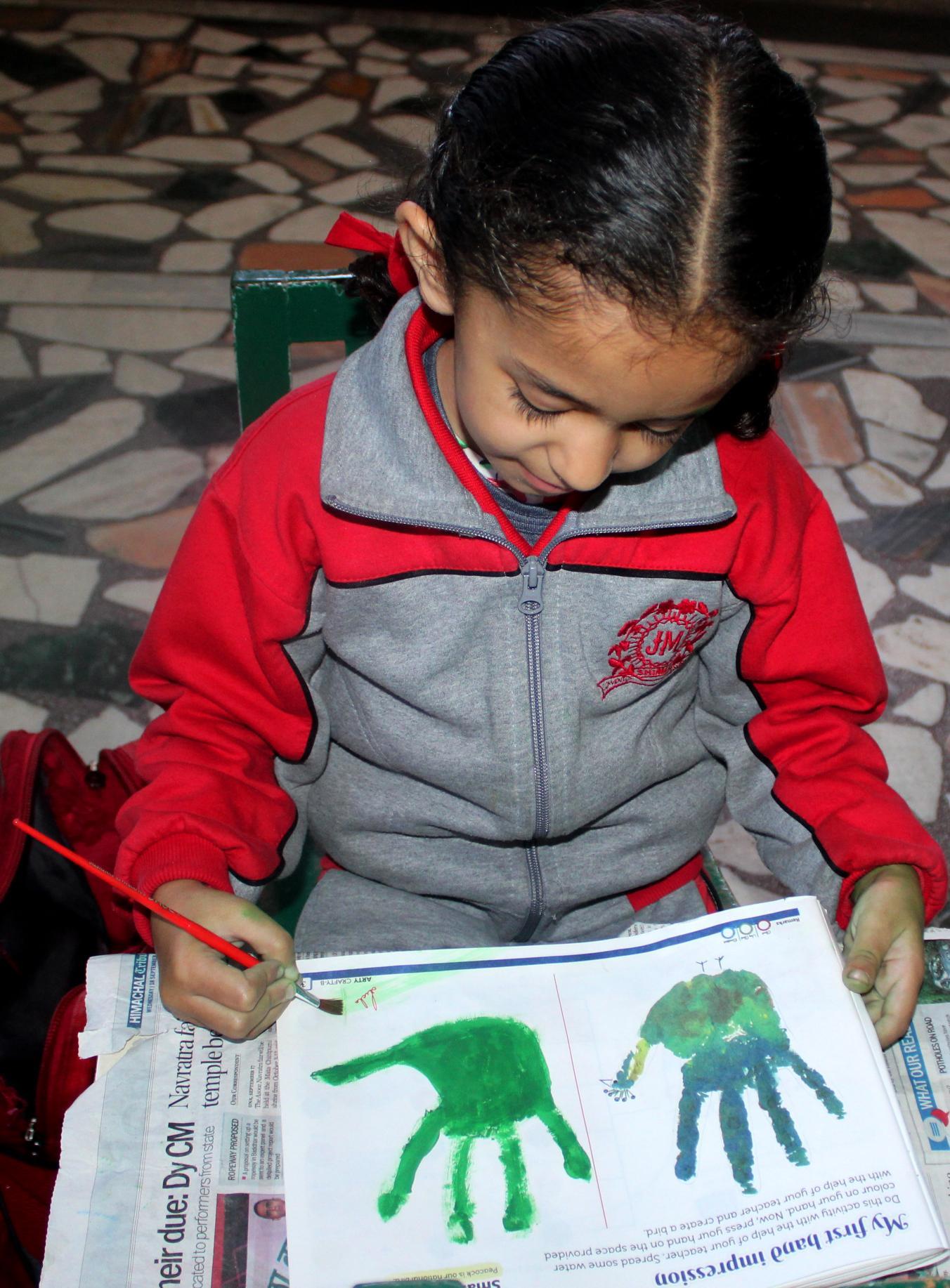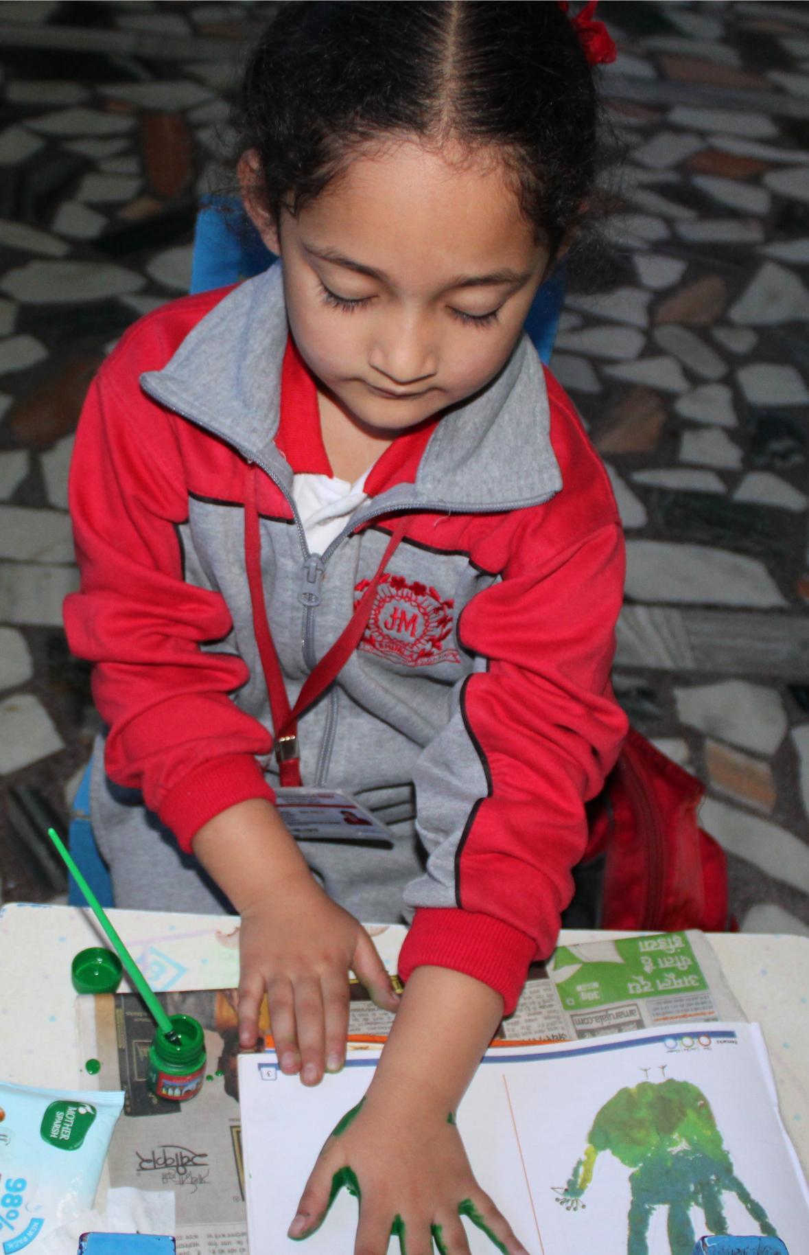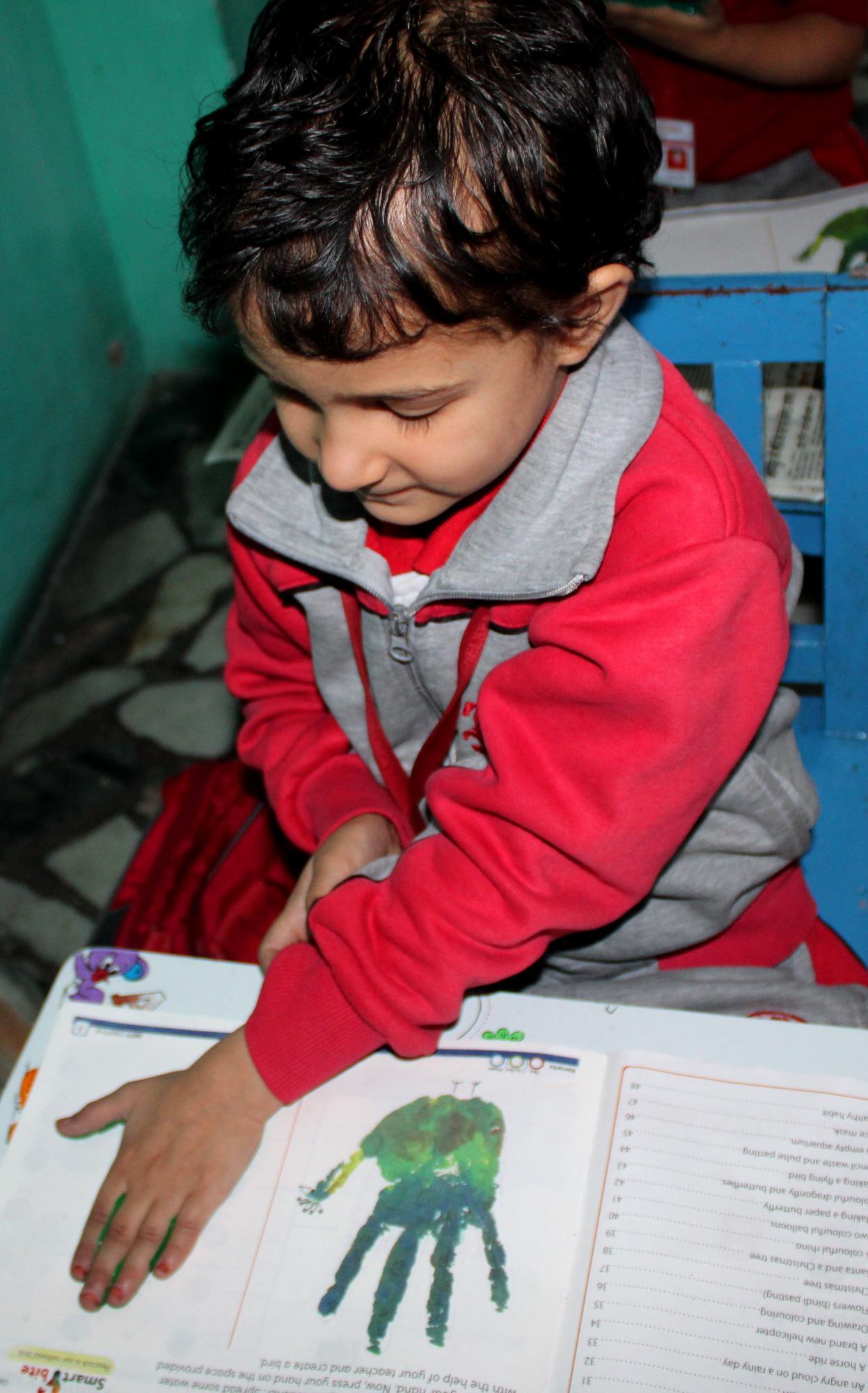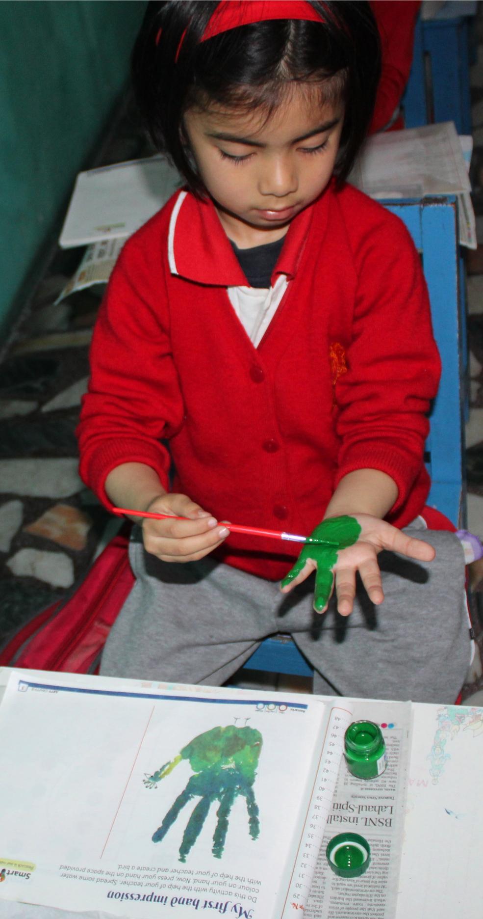 Description: On 20th September,2024 Hand impression activity was done by KG class.