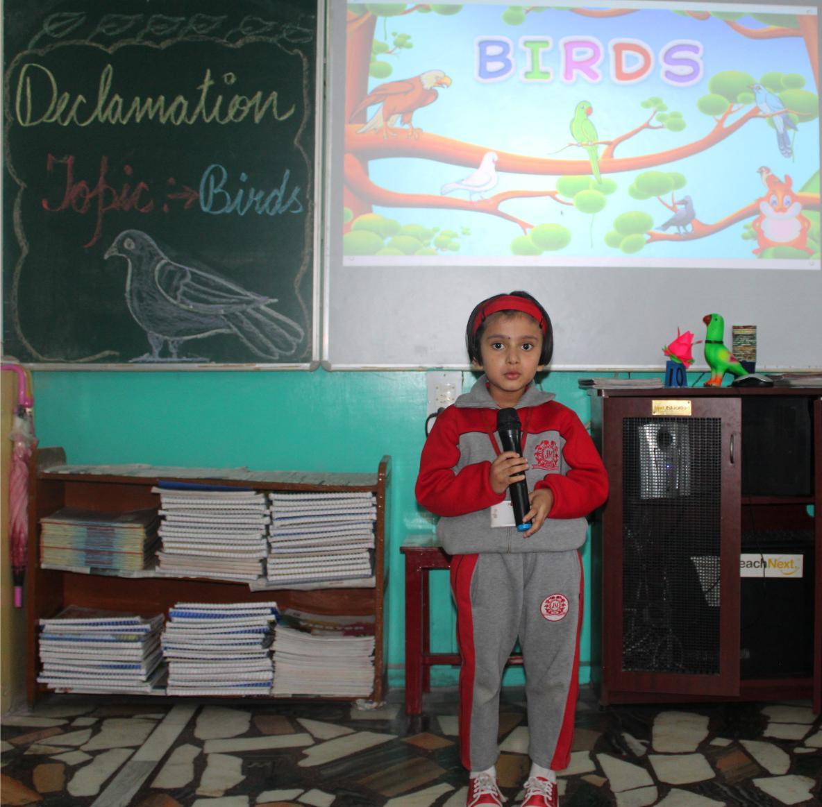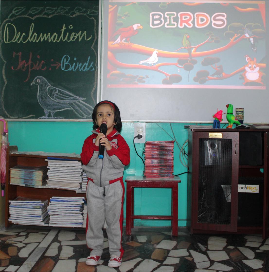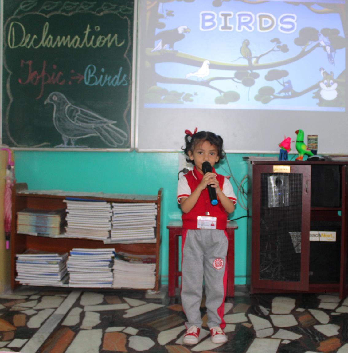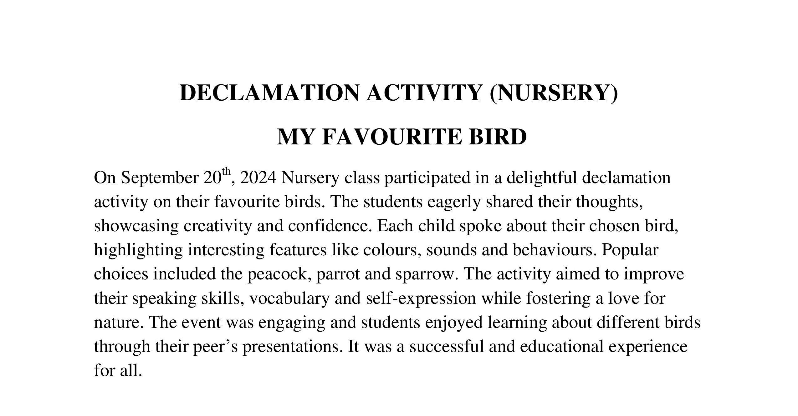 Description: On 20th September,2024 a Declamation activity on the topic My favourite Bird was done by Nursery class.