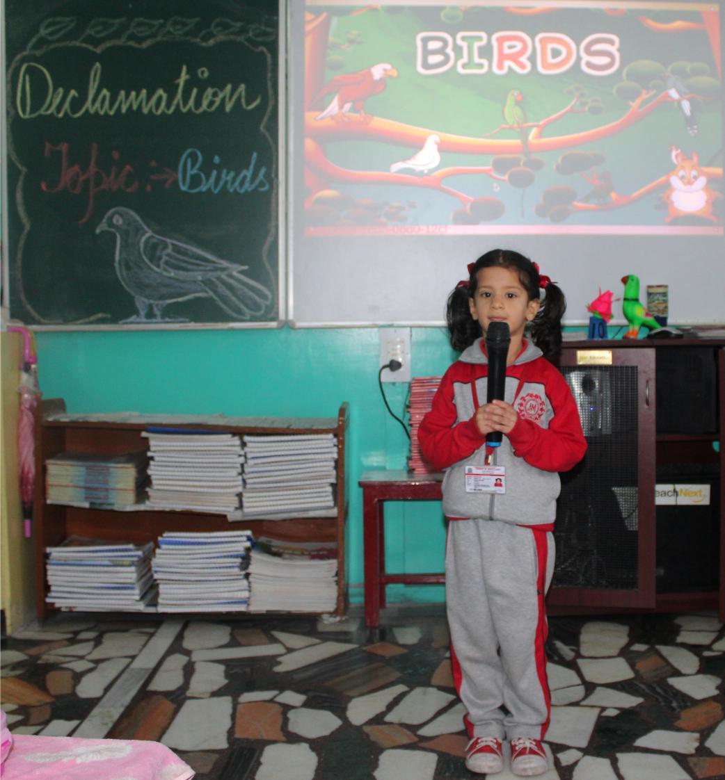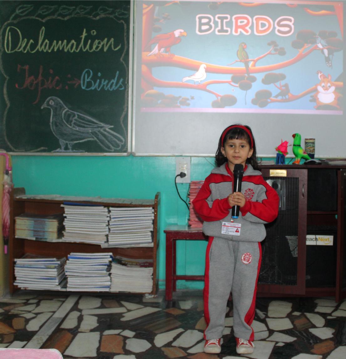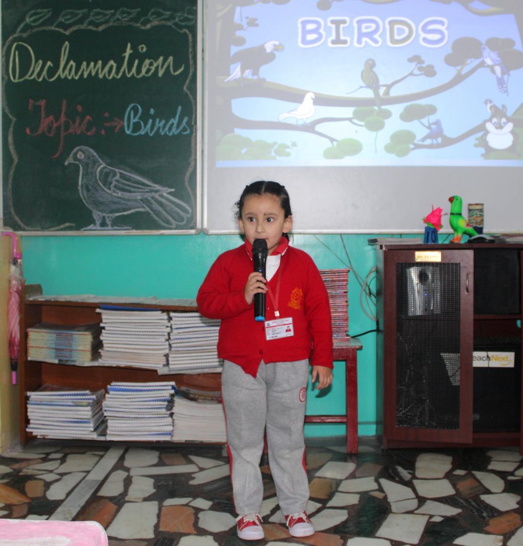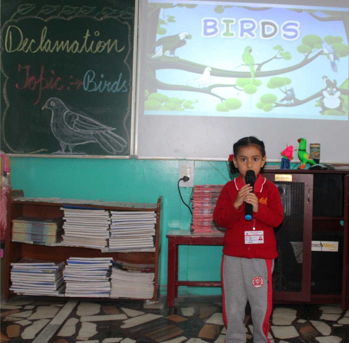 Description: On 20th September,2024 a Declamation activity on the topic My favourite Bird was done by Nursery class.