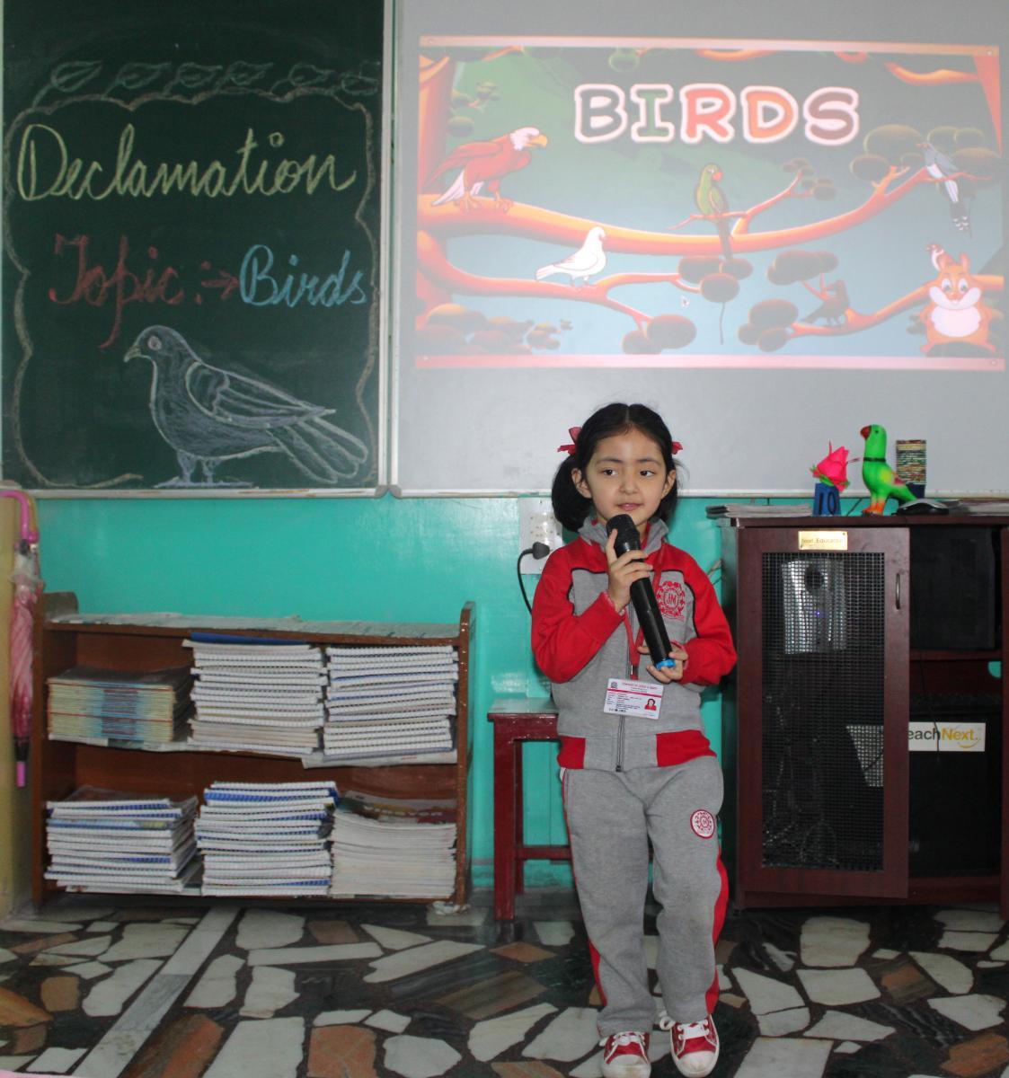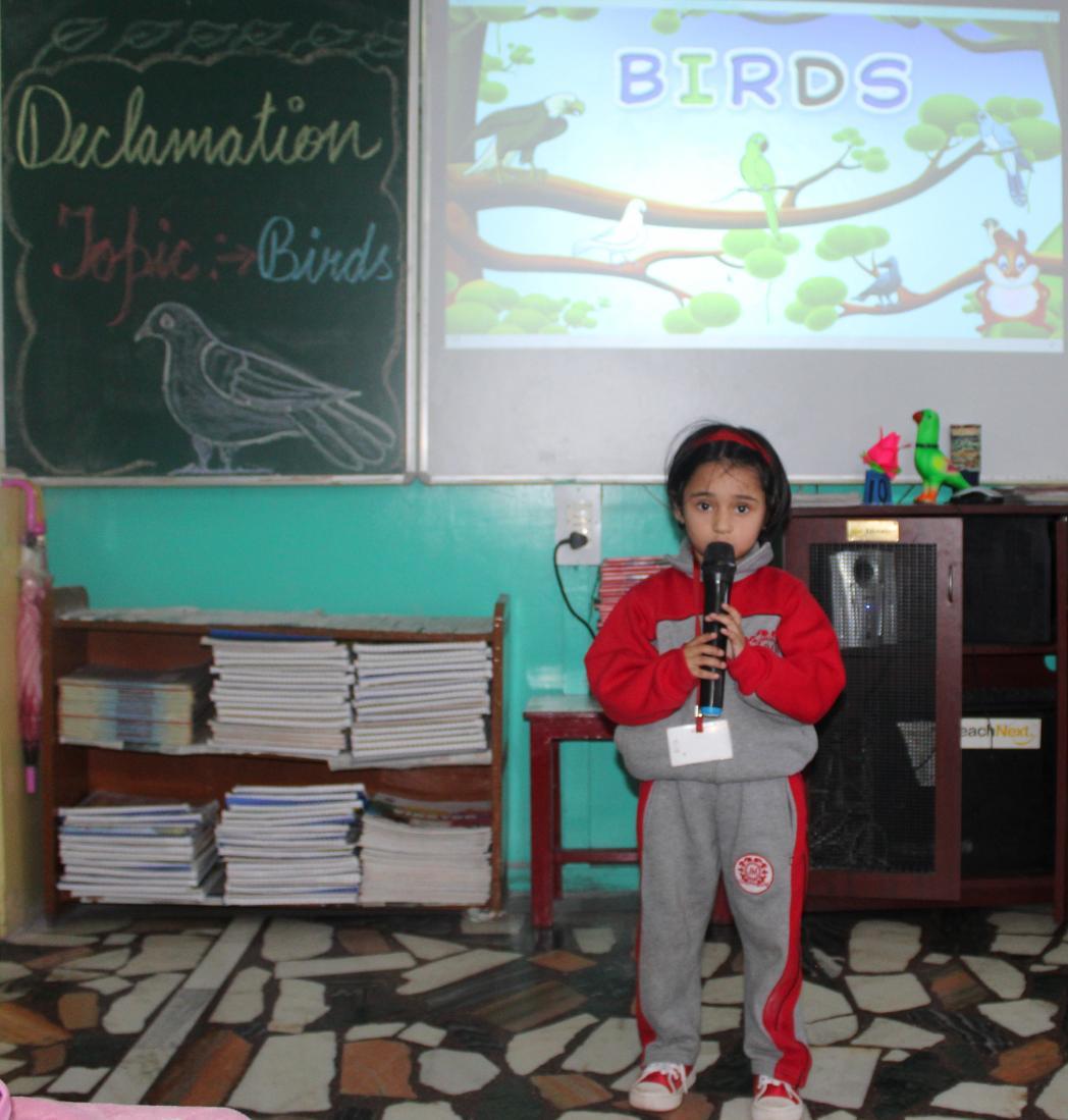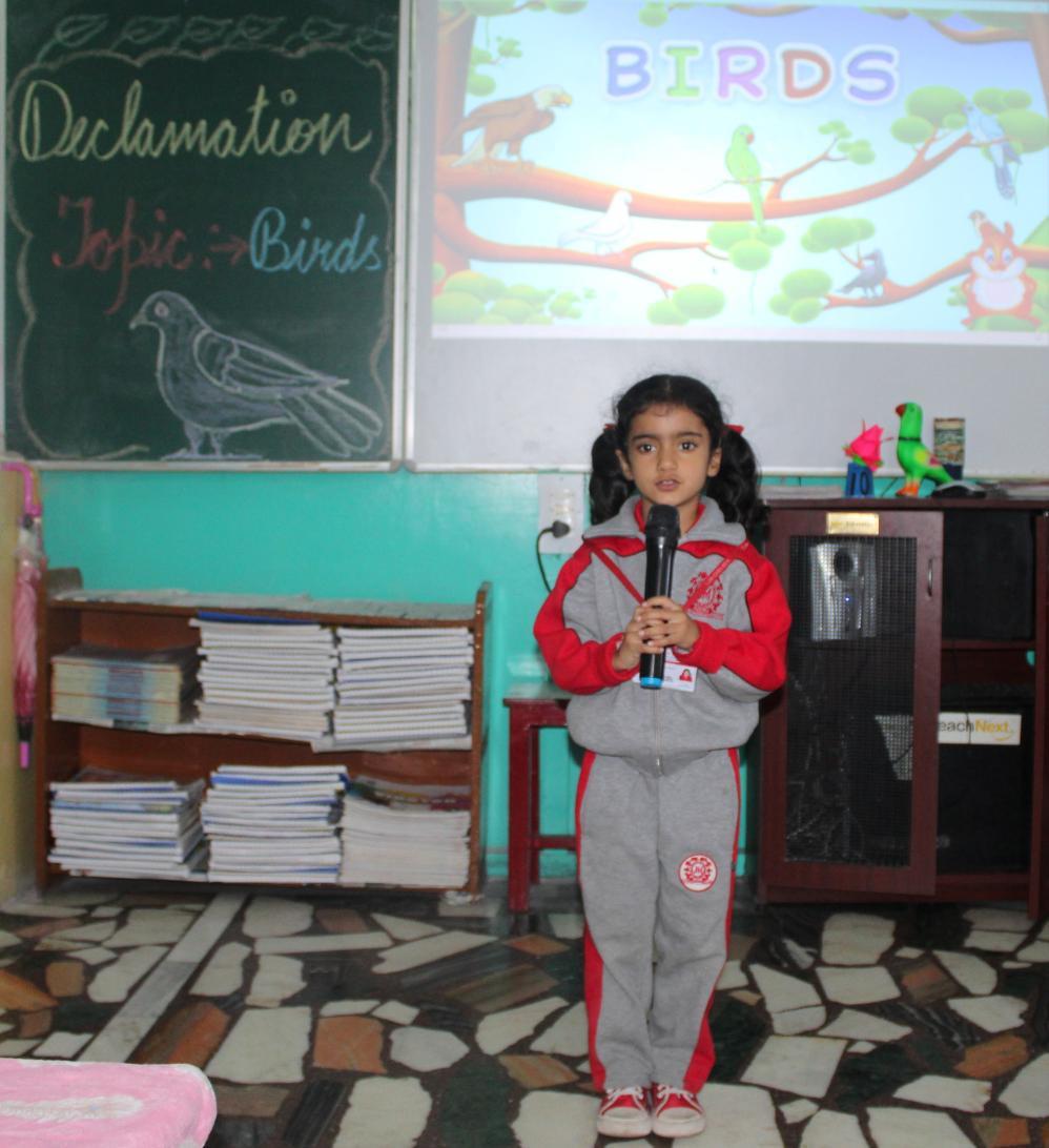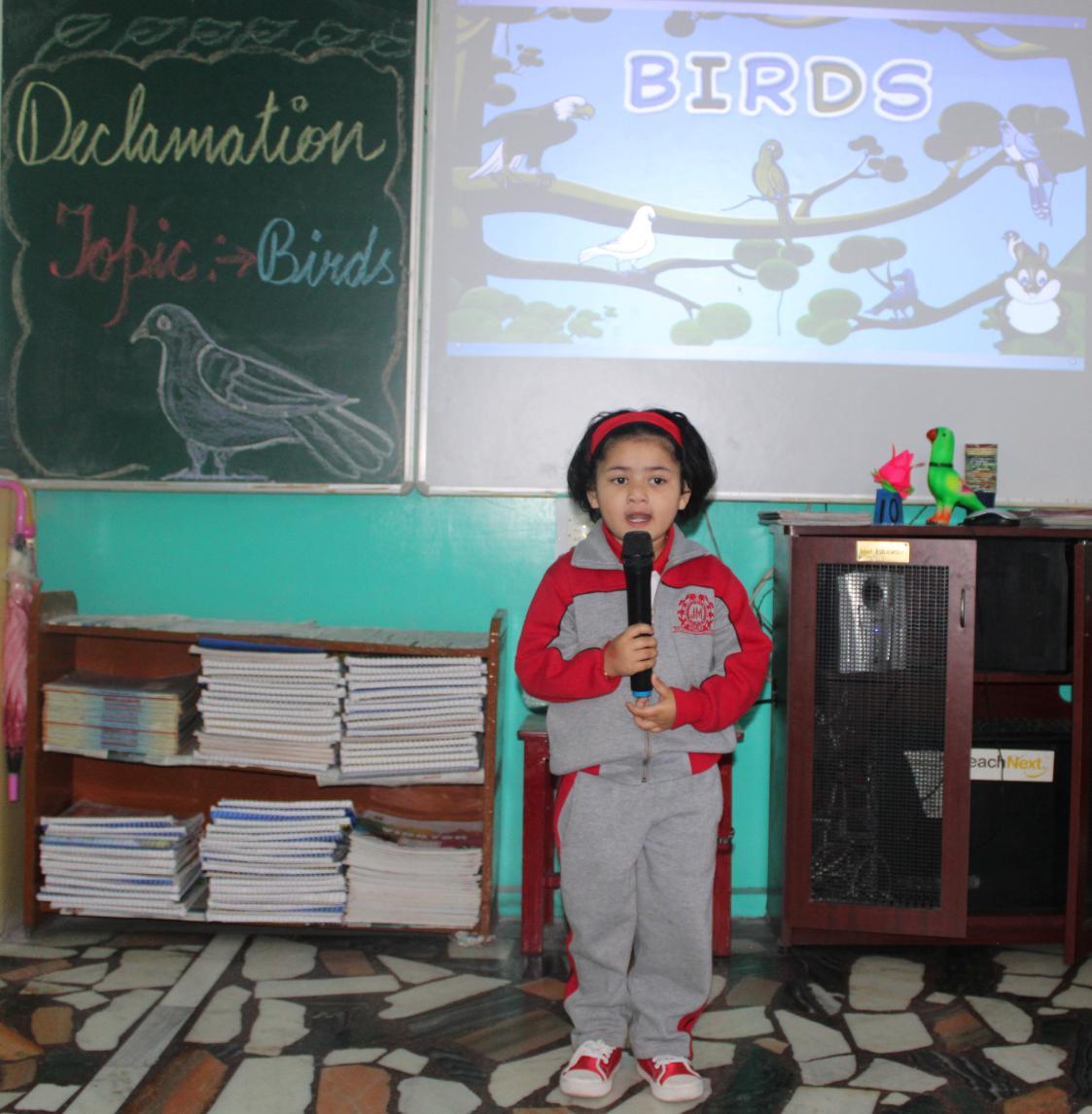 Description: On 20th September,2024 a Declamation activity on the topic My favourite Bird was done by Nursery class.