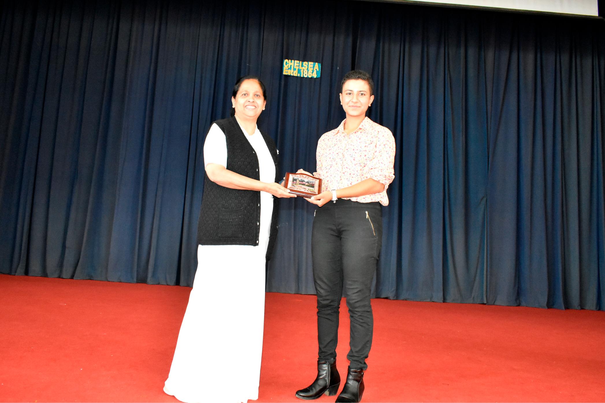 Description: Convent of Jesus and Mary, Chelsea, was honoured to welcome Ms. Devika Kainthla, an alumna who made the state proud by securing the first rank among women and AIR 29 in the NDA examination. In her address Devika fondly recalled her days at CJM, Chelsea and spoke about the values the school instilled in her. She mentioned students to dream big, work hard and stay resilient in the face of challenges, speaking passionately on Women Empowerment, leadership and service of the nation, she urged Chelseaites to believe in themselves and pursue excellence with dedication. The interactive session saw students asking insightful questions, which she answered with warmth and clarity. Our respected Principal Sister Greta presented Devika with a gift as a small token of love from entire Chelsea family. Her visit was a proud moment for the school and an unforgettable source of inspiration for the students.
