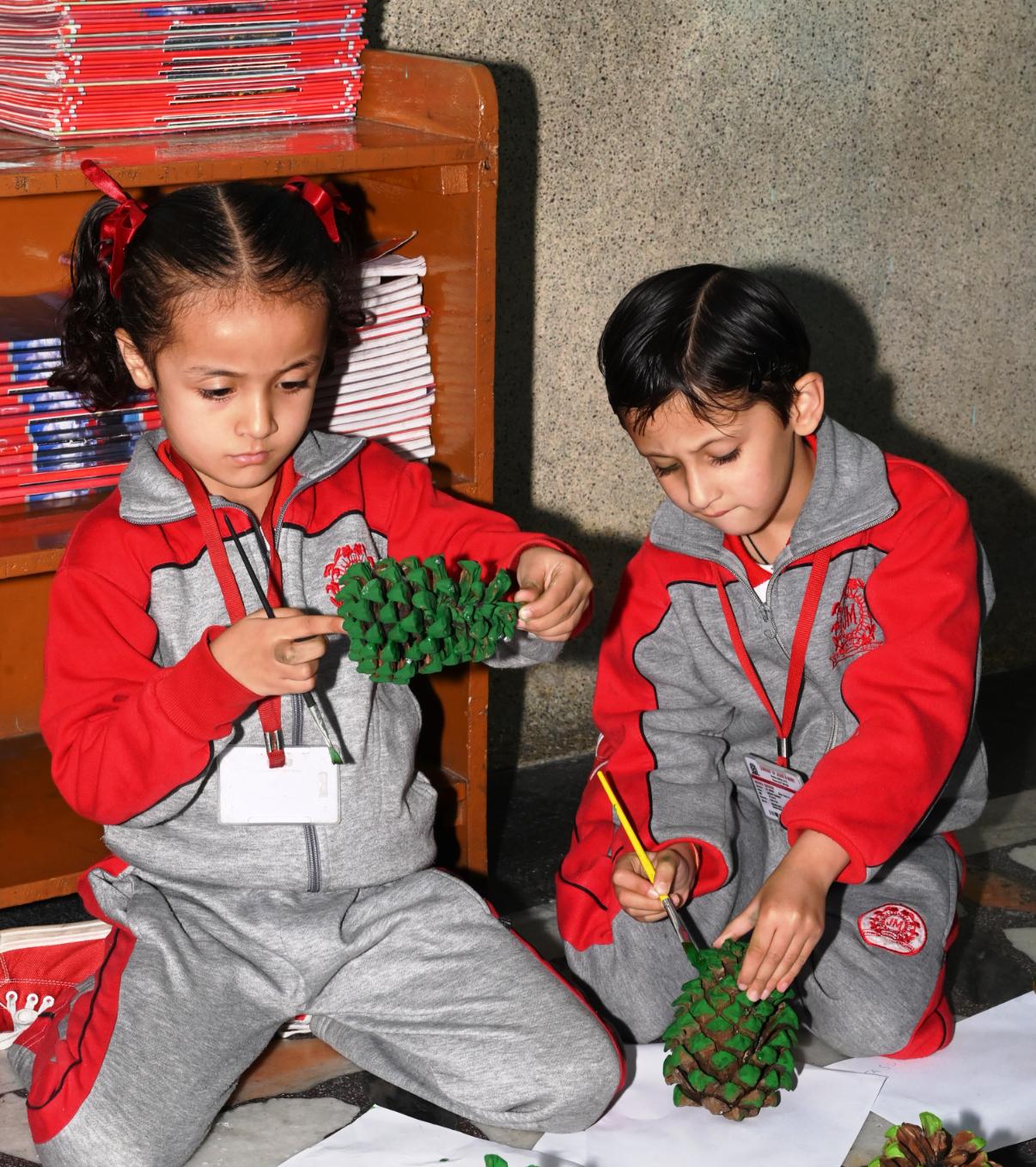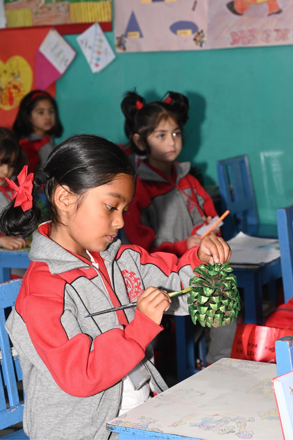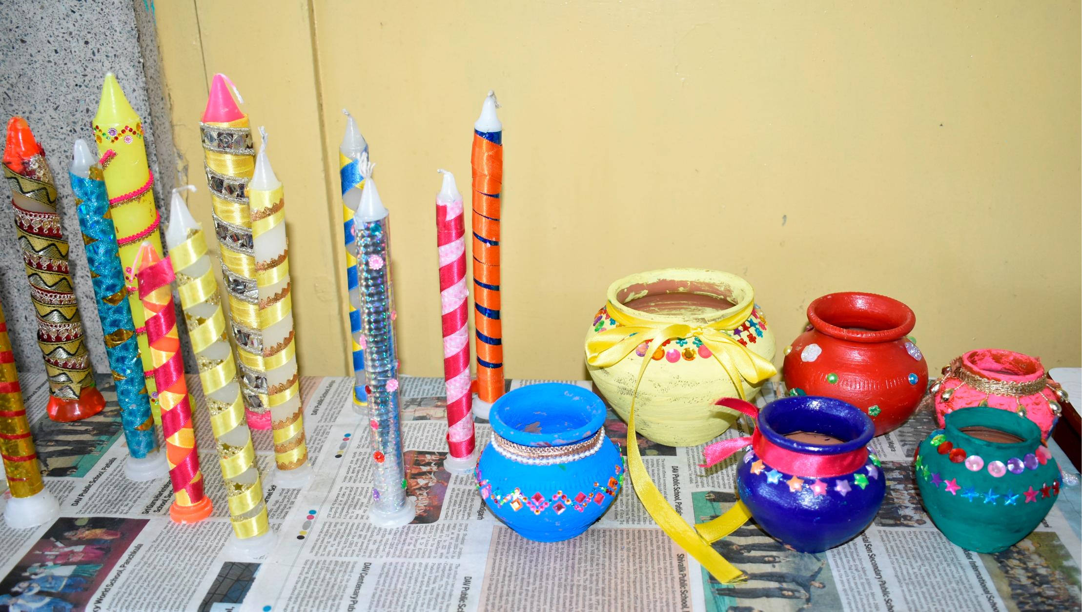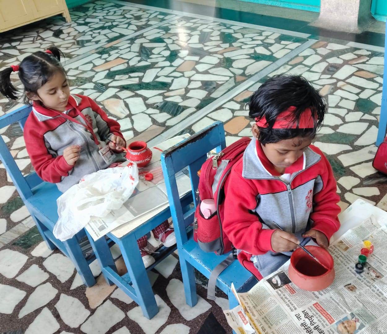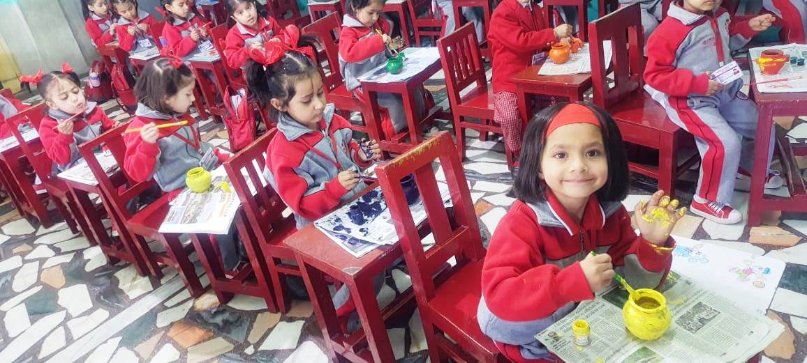 Description: “Creativity is intelligence having fun.” Painting opens a new play opportunity for the toddler keeping this in mind a class activity on Clay Pot Painting, Cone Painting, and Candle Decoration was conducted on 17 October, 2025 for the Kindergarten students. The activity aimed to enhance the children’s creativity, imagination, and fine motor skills through hands-on artistic expression. The little ones participated with great enthusiasm and excitement as they beautifully decorated their clay pots, cones, and candles using vibrant colours, glitter, and decorative materials. It was delightful to see their faces light up with joy and pride as they created their own masterpieces. Such creative activities not only nurture artistic talents but also help children develop patience, focus, and confidence. The day was truly filled with colours, fun, and festive cheer leaving behind wonderful memories of learning through art and creativity.
