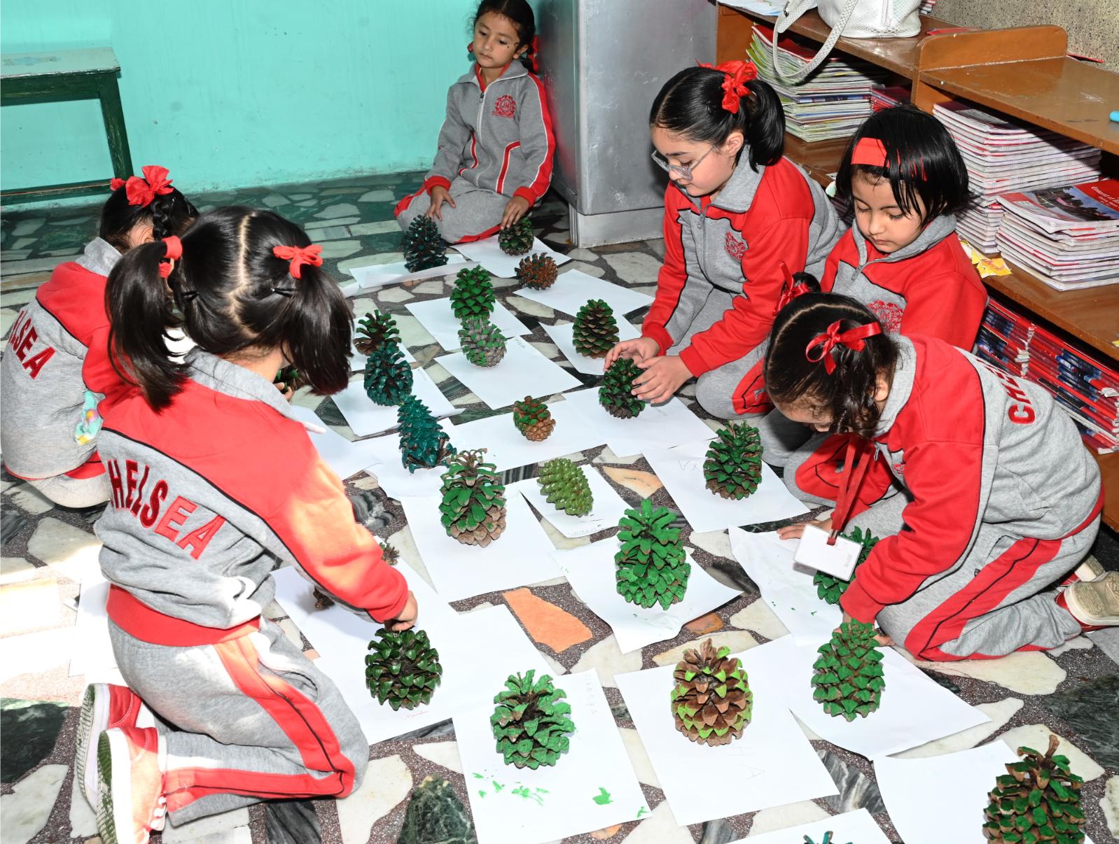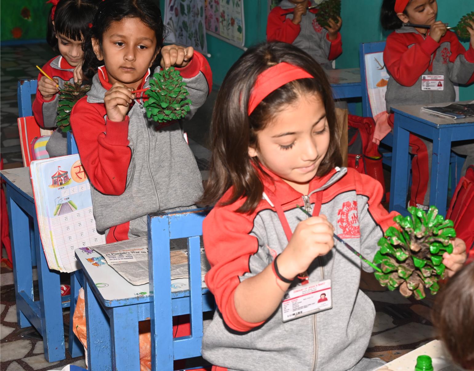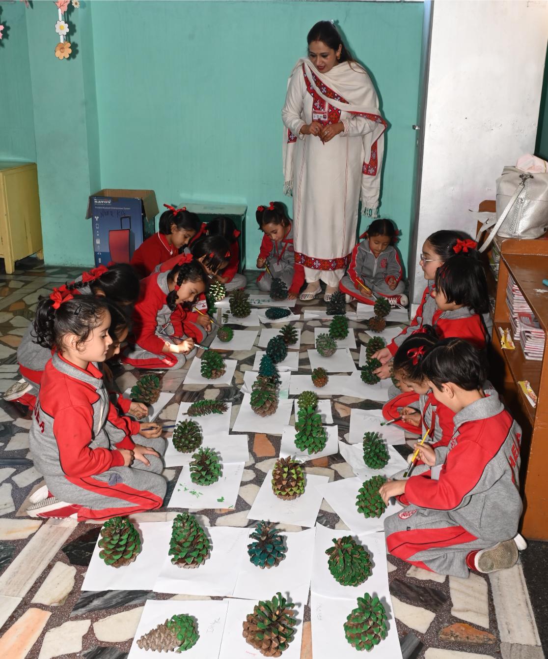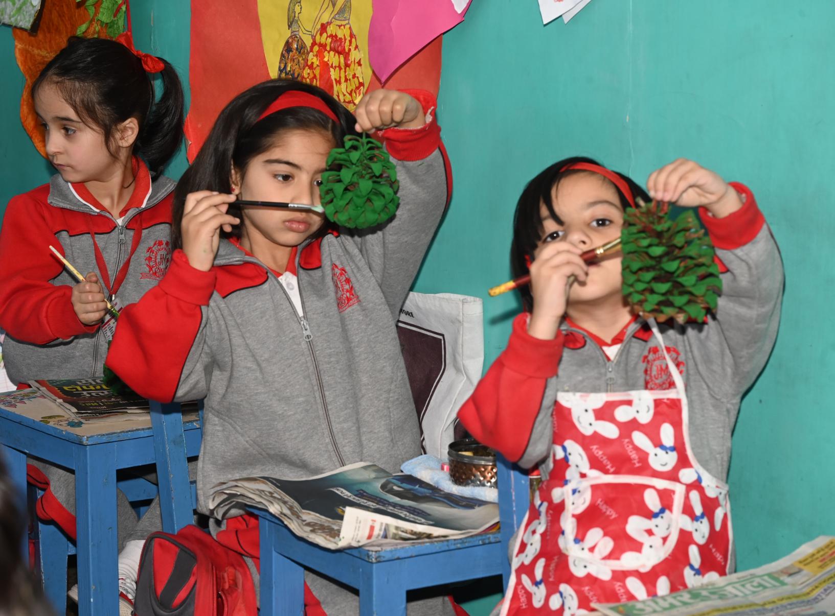 Description: “Creativity is intelligence having fun.” Painting opens a new play opportunity for the toddler keeping this in mind a class activity on Clay Pot Painting, Cone Painting, and Candle Decoration was conducted on 17 October, 2025 for the Kindergarten students. The activity aimed to enhance the children’s creativity, imagination, and fine motor skills through hands-on artistic expression. The little ones participated with great enthusiasm and excitement as they beautifully decorated their clay pots, cones, and candles using vibrant colours, glitter, and decorative materials. It was delightful to see their faces light up with joy and pride as they created their own masterpieces. Such creative activities not only nurture artistic talents but also help children develop patience, focus, and confidence. The day was truly filled with colours, fun, and festive cheer leaving behind wonderful memories of learning through art and creativity.