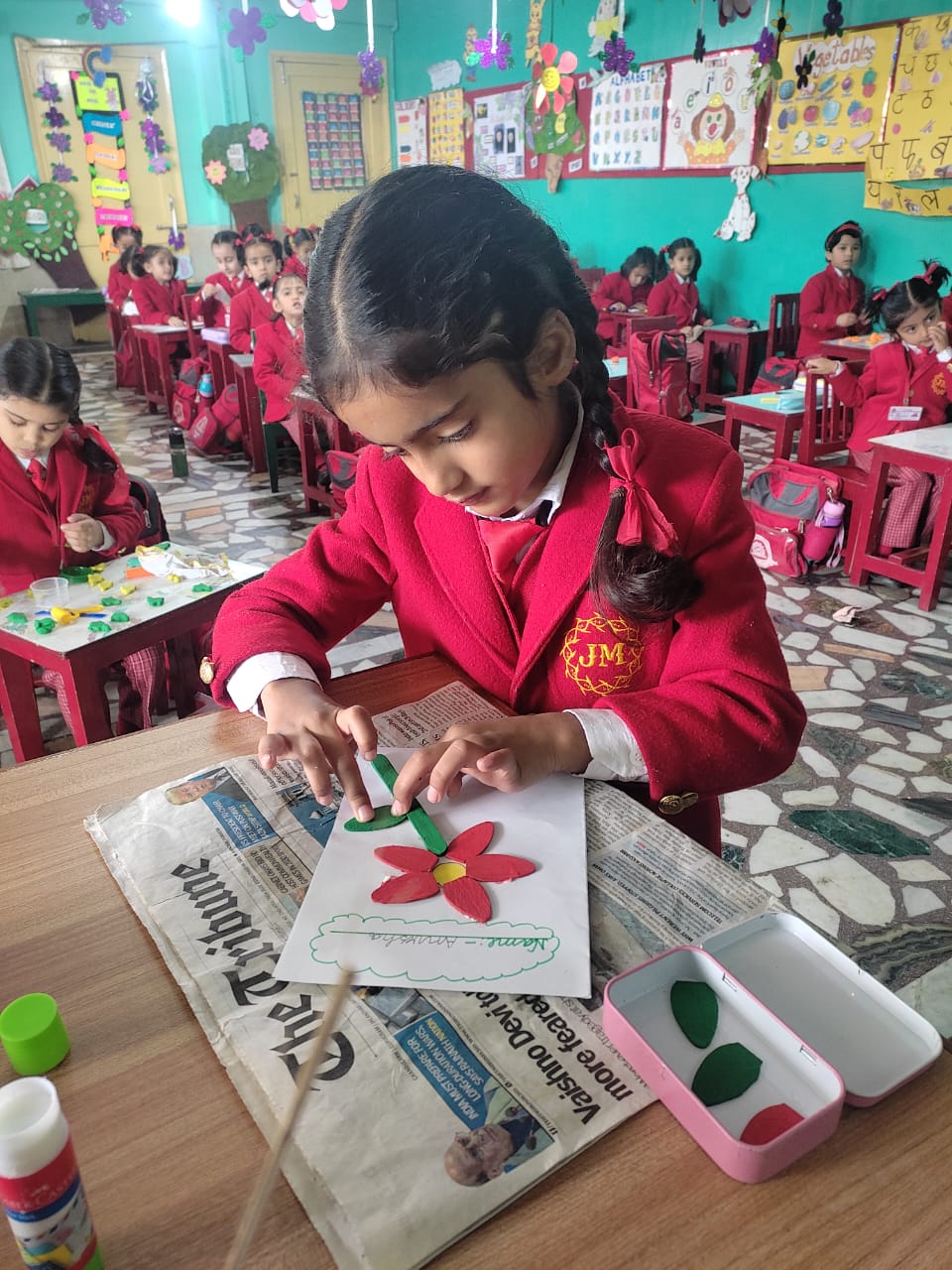 Description: “Art is a place for children to learn to trust their ideas themselves and to explore what is possible. “ Art encourages children to think, develop skills and confidence. To promote these skills in Kindergarten students, an Art and Craft Activity was conducted in their respective sections on 30 October, 2025. The little artists of K. G. Rose created beautiful wooden flowers, showing great creativity and patience. The children of K. G. Orchid prepared a lovely flower bouquet, using colourful paper and ribbons. Meanwhile, the blooming learners of Lily made an attractive TLM (Teaching Learning Material) display using simple craft material. This activity not only helped in developing their fine motor skills but also encouraged imagination, teamwork, and appreciation for art. The classrooms were filled with smiles, colours, and a joyful learning spirit.