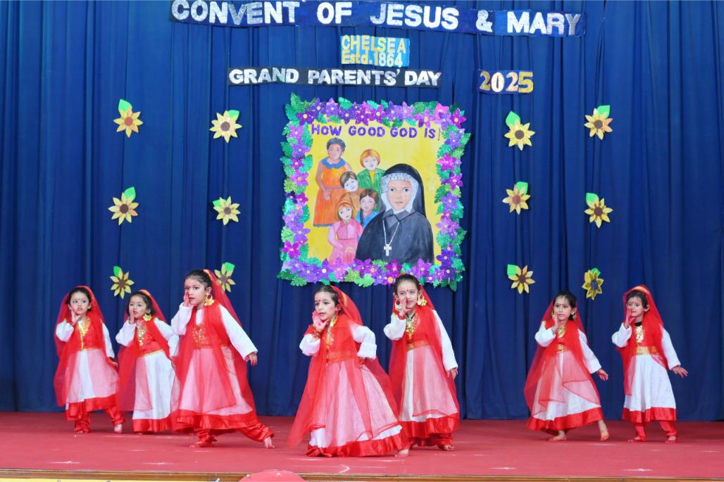 Description: Shimla, September 13: Convent of Jesus and Mary, Chelsea, Shimla, celebrated its Annual Day on the occasion of Grandparents’ Day with joy, reverence, and cultural vibrancy. The Chief Guest for the occasion was Mr. Suraj Prakash Ranta, Retired Assistant Commander, who was awarded the President’s Award for Meritorious Service by the Honorable President of India on Republic Day, 26th January 2013. The programme began with the introduction of the Chief Guest and the ceremonial lighting of the lamp, symbolizing the dispelling of darkness and the ushering in of knowledge. This was followed by a soulful prayer dance and a lively welcome song presented by the Kindergarten. The Principal, Sr. Greta addressed the gathering with her motivational words and PPT was presented showcasing the institution’s progress and commitment to holistic education. A special highlight of the day was a play on the life of Mother foundress, that was beautifully enacted by the Kindergarten children. Through their simple yet powerful performance, the little ones brought alive the values of faith, compassion, and service that guided the life of the Foundress. The cultural programme further sparkled with a series of colourful dances — a Retro Dance, a Modern Dance, and the traditional Himachali Nati by the tiny tots which enthralled the audience. In his address, Mr. Ranta commended the school for nurturing young talent with a fine blend of values and creativity. He emphasized the importance of cultural heritage, discipline, and family values, especially highlighting the irreplaceable role of grandparents in a child’s life. The Chief Guest was felicitated by the school as a mark of gratitude. The celebration concluded with a vote of thanks and the rendition of the School Anthem, leaving behind an atmosphere of pride, unity, and heartfelt appreciation for the guiding lights of every family — the grandparents.