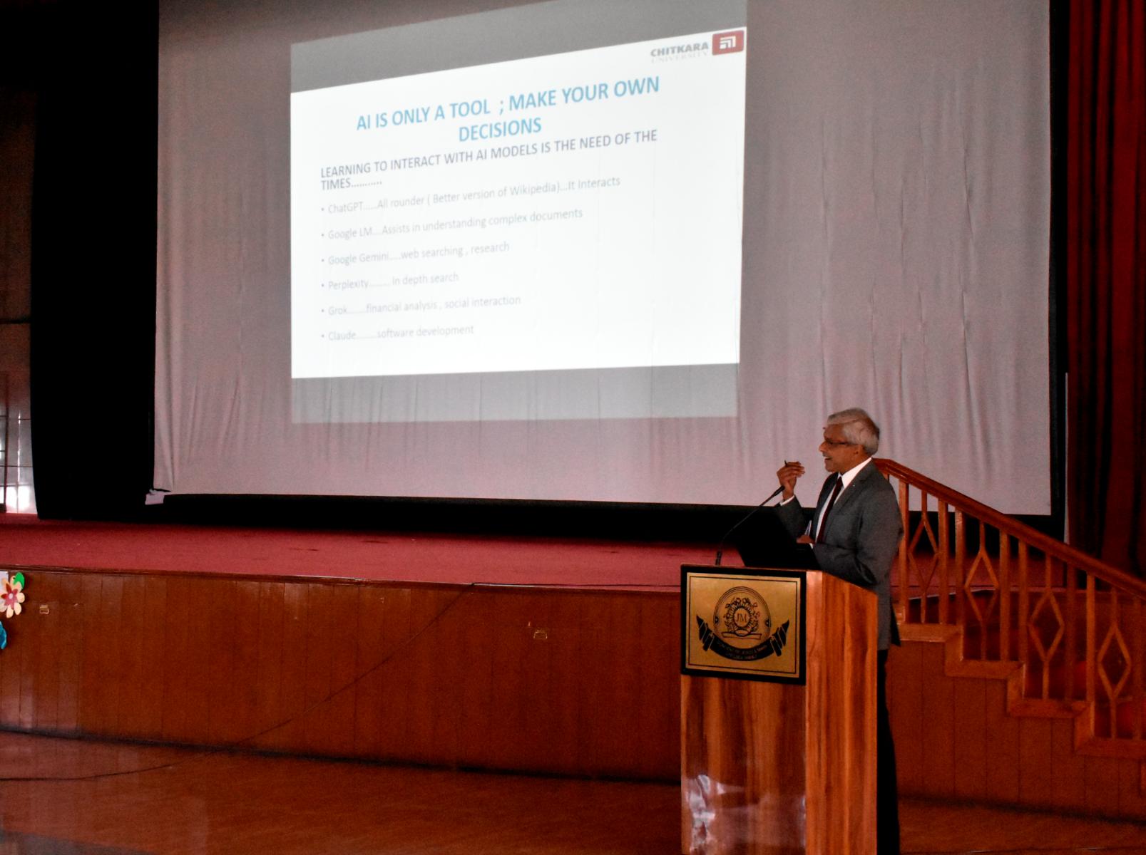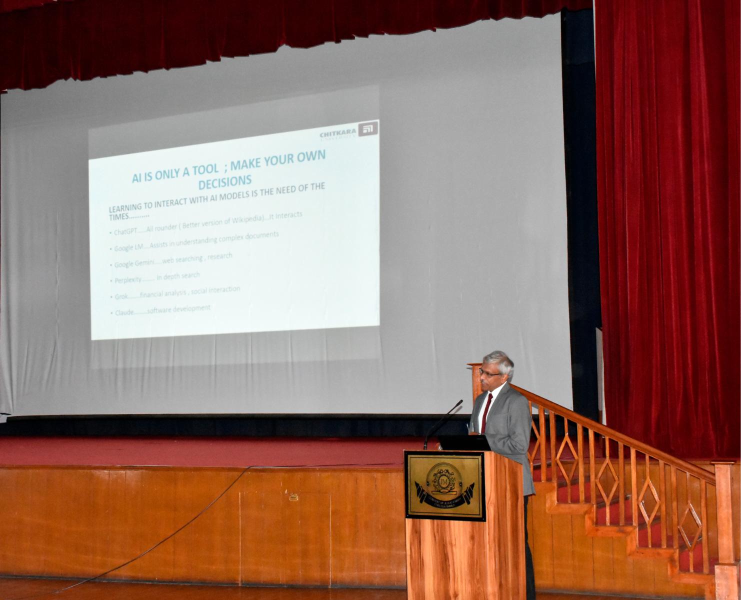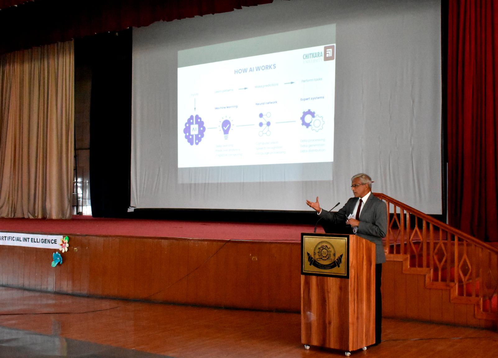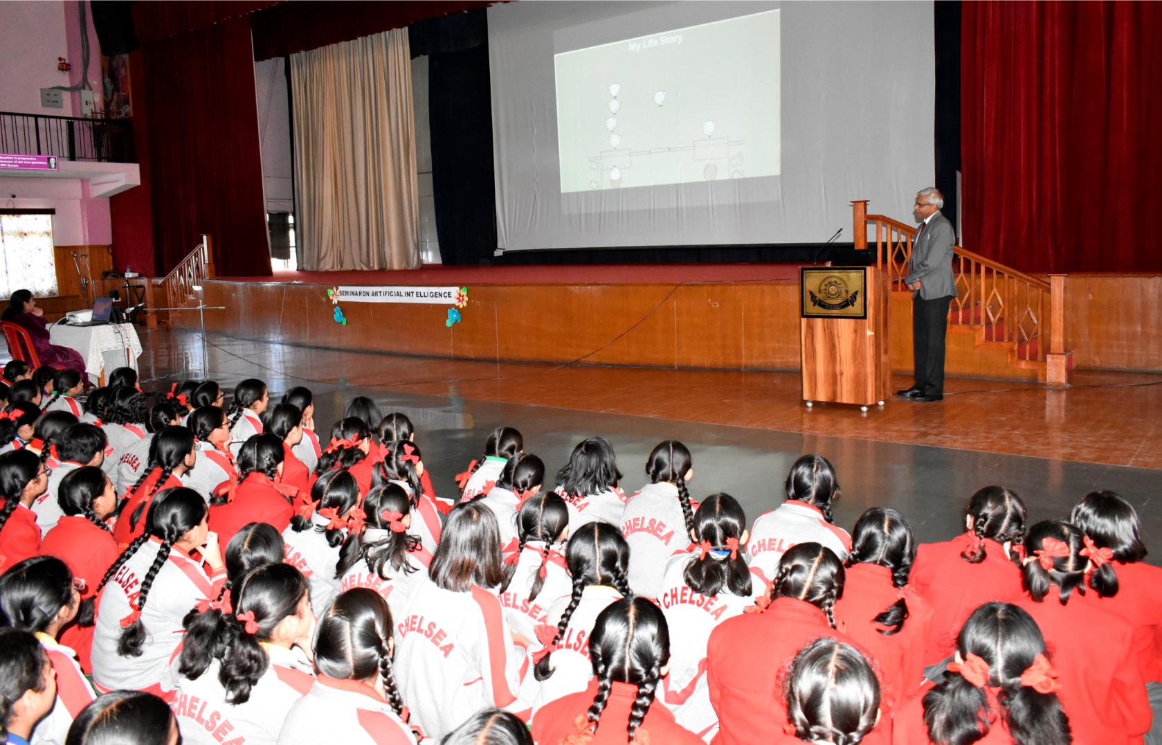Description: A seminar on Artificial Intelligence was successfully conducted on 6th November, 2025, at the school auditorium in Convent of Jesus and Mary, Chelsea, aiming to enhance students’ understanding of AI and its growing influence in today’ s world. The keynote speaker for the session was Mr. Sanjiv Dosajh, Director of Strategic Initiatives at Chitkara University, accompanied by Mr. Kamal Rama and Mr. Shubham Sood. Mr. Dosajh explained the fundamentals of Artificial Intelligence, how AI systems learn and function, and how they are transforming industries through automation and innovation. Students were also made aware of the ethical aspects of AI, including responsible usage, data privacy, and human oversight in technology. An interactive question- and-answer session made the seminar engaging and informative. The guests were felicitated with tokens of appreciation, and the session concluded on an inspiring note, reminding students that while AI can enhance human creativity, it can never replace the intelligence and emotions of the human mind.
