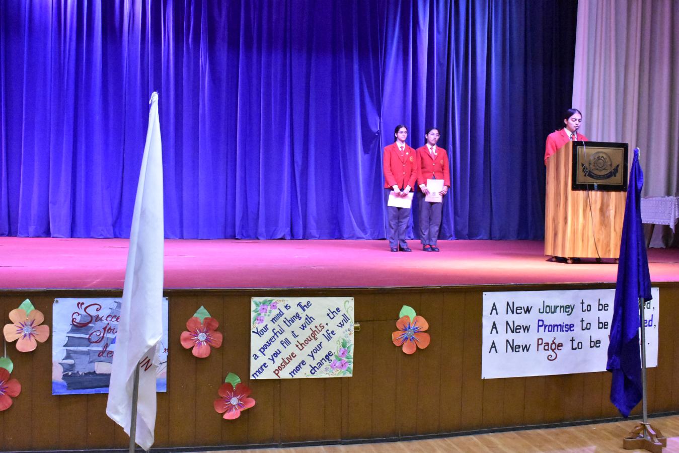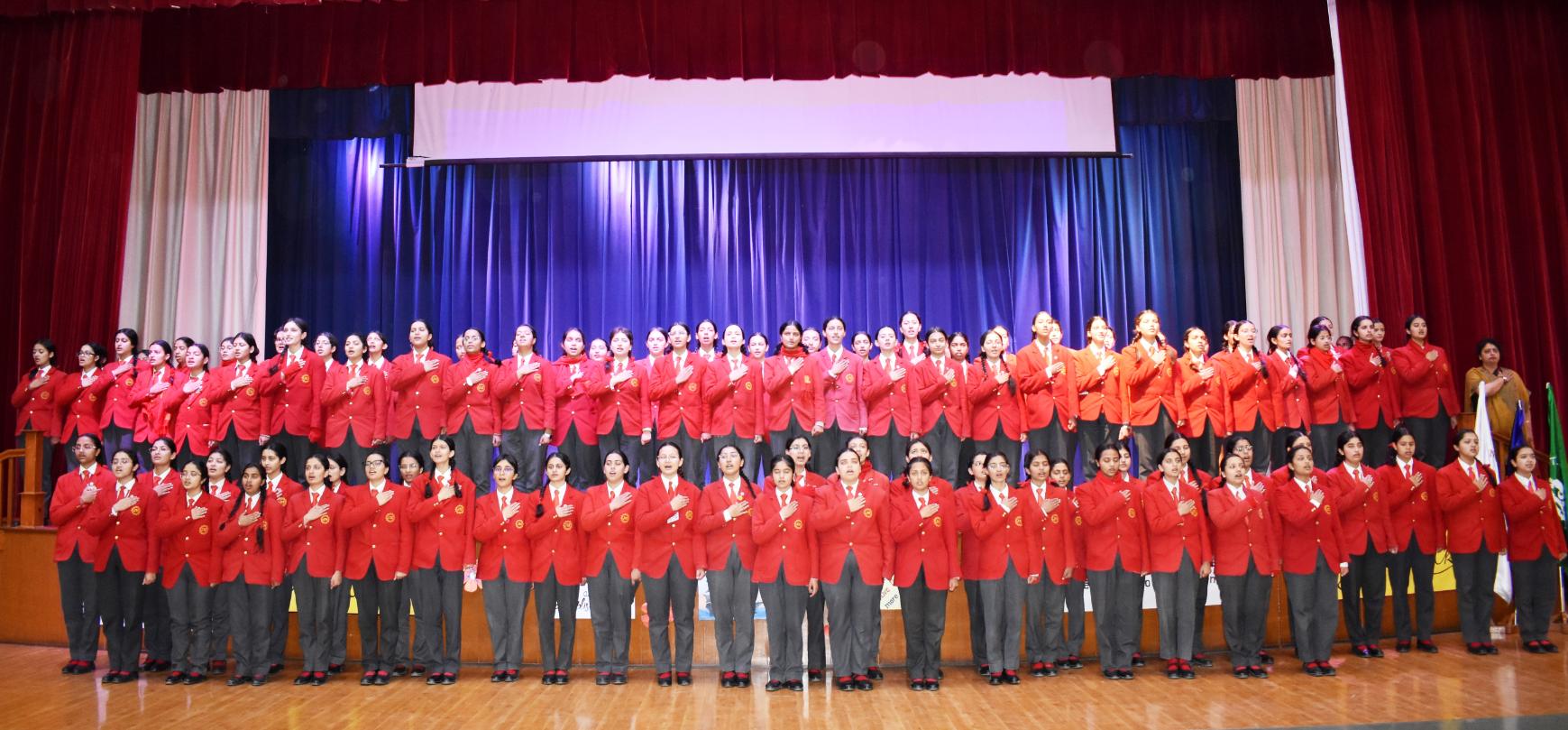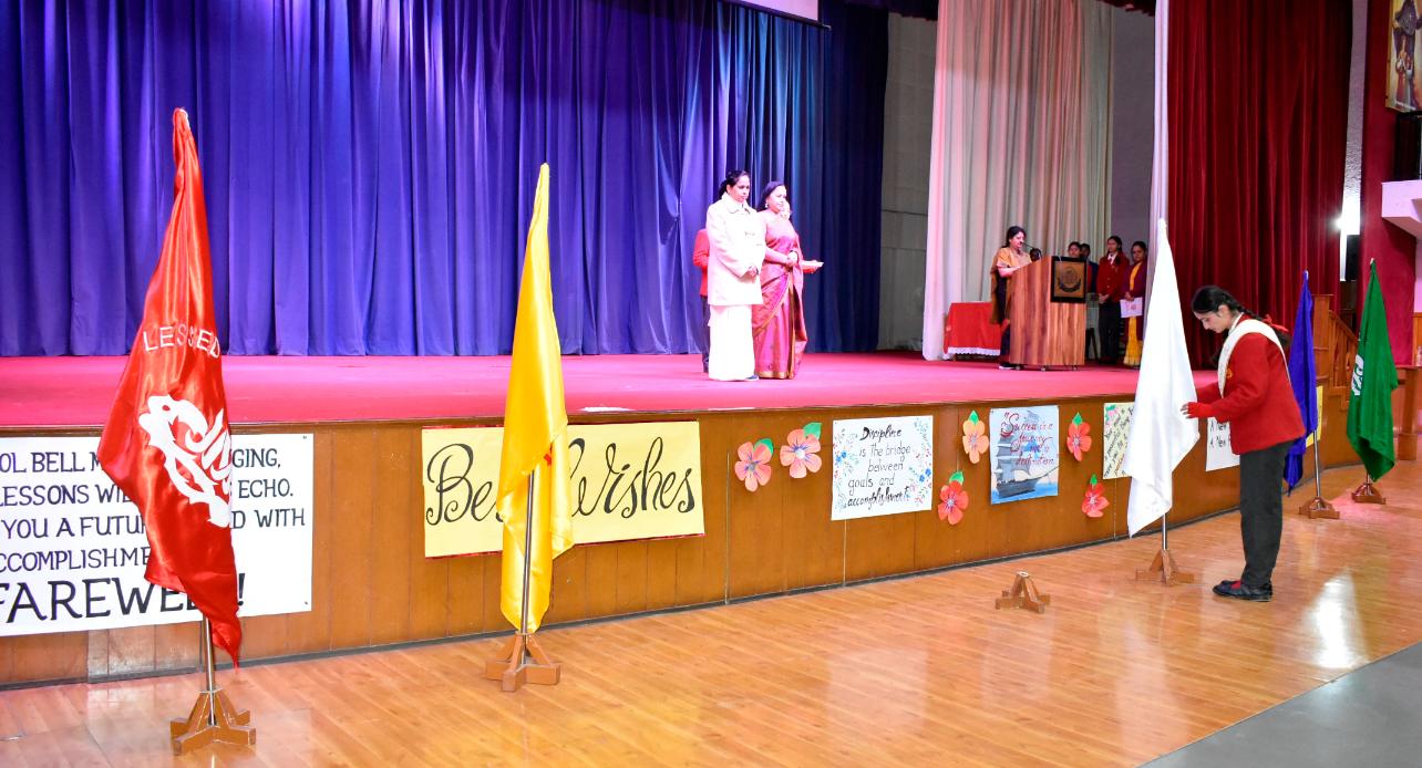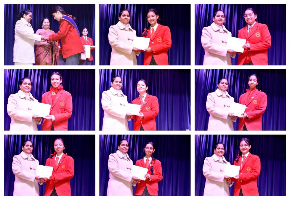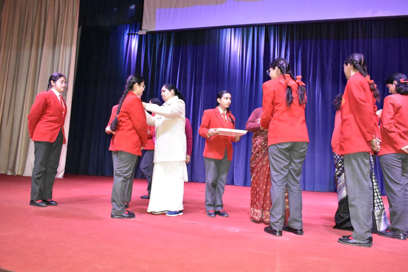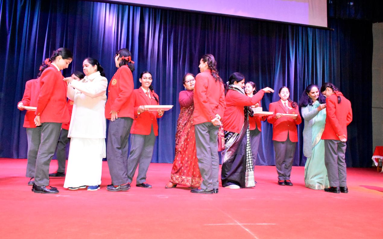 Description: The Laying down Ceremony was held on 21 November. The outgoing Class XII Cabinet handed over their badges and responsibilities to the Principal.