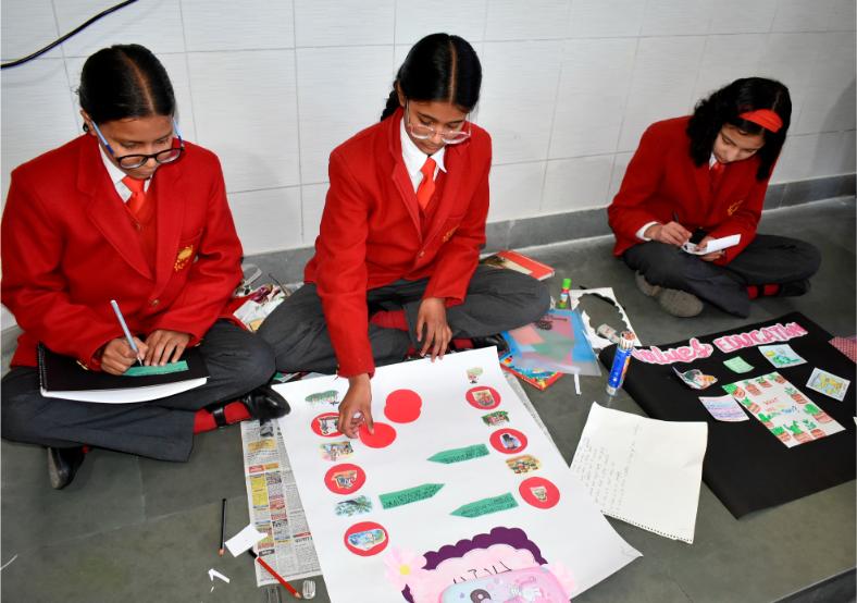 Description: On 3rd March, a chart-making competition was held for students of Classes 6th to 10th and 12th. The students enthusiastically participated and showcased their creativity through colorful and informative charts.